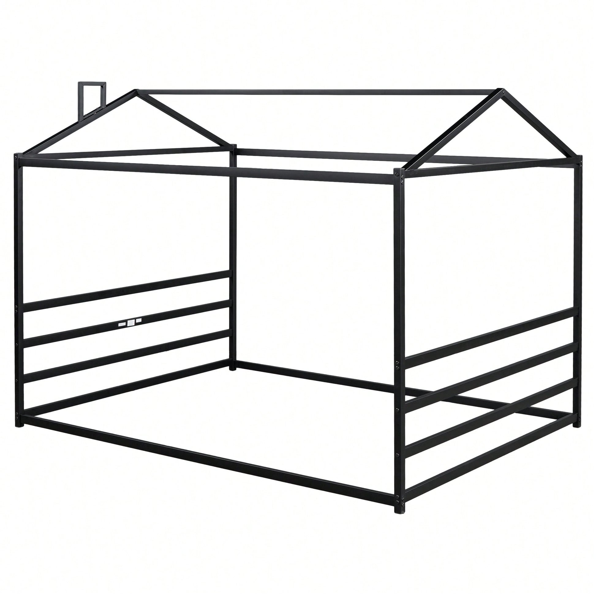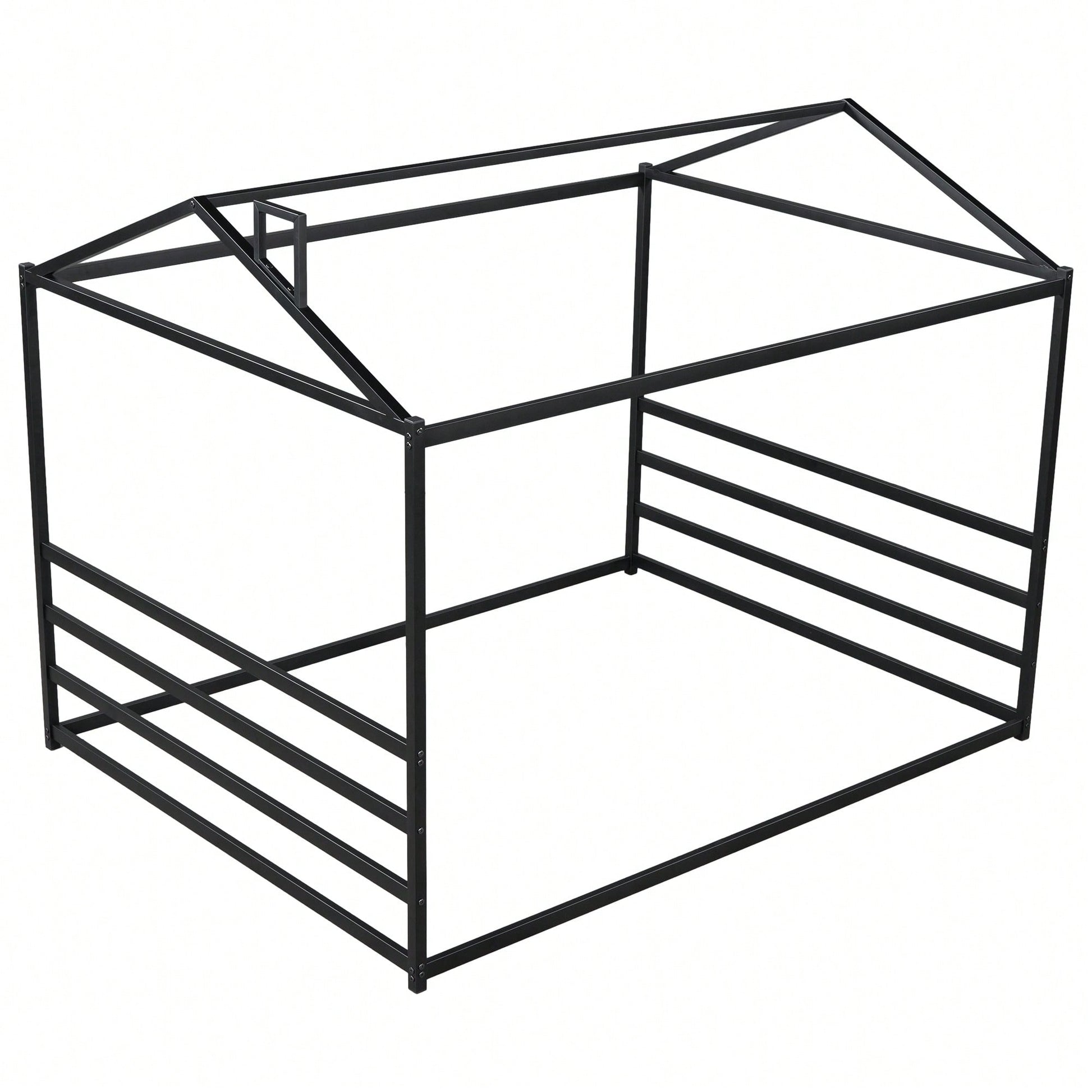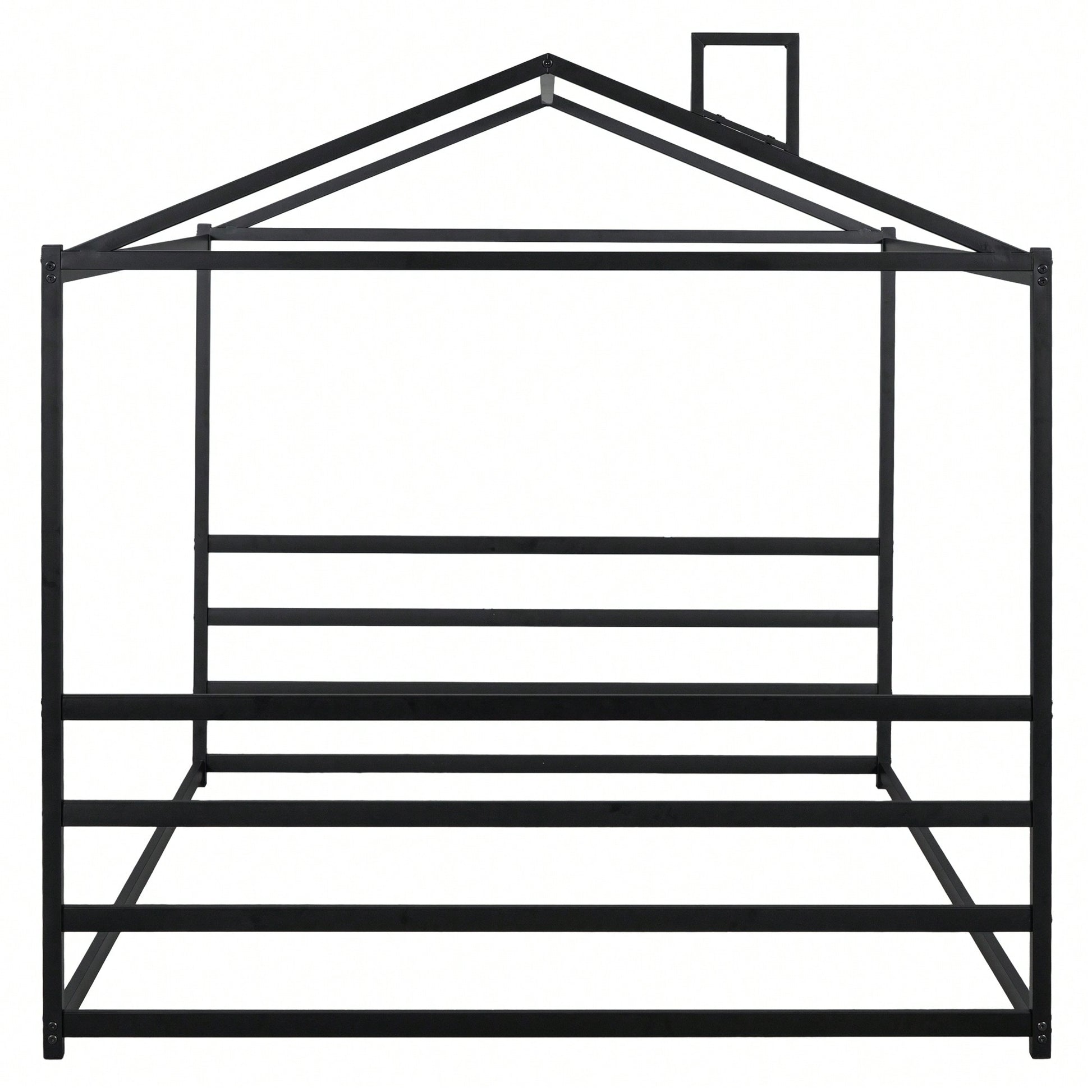 Stylish Black Metal House-Shaped Queen Platform Bed For Unique Bedroom Decor