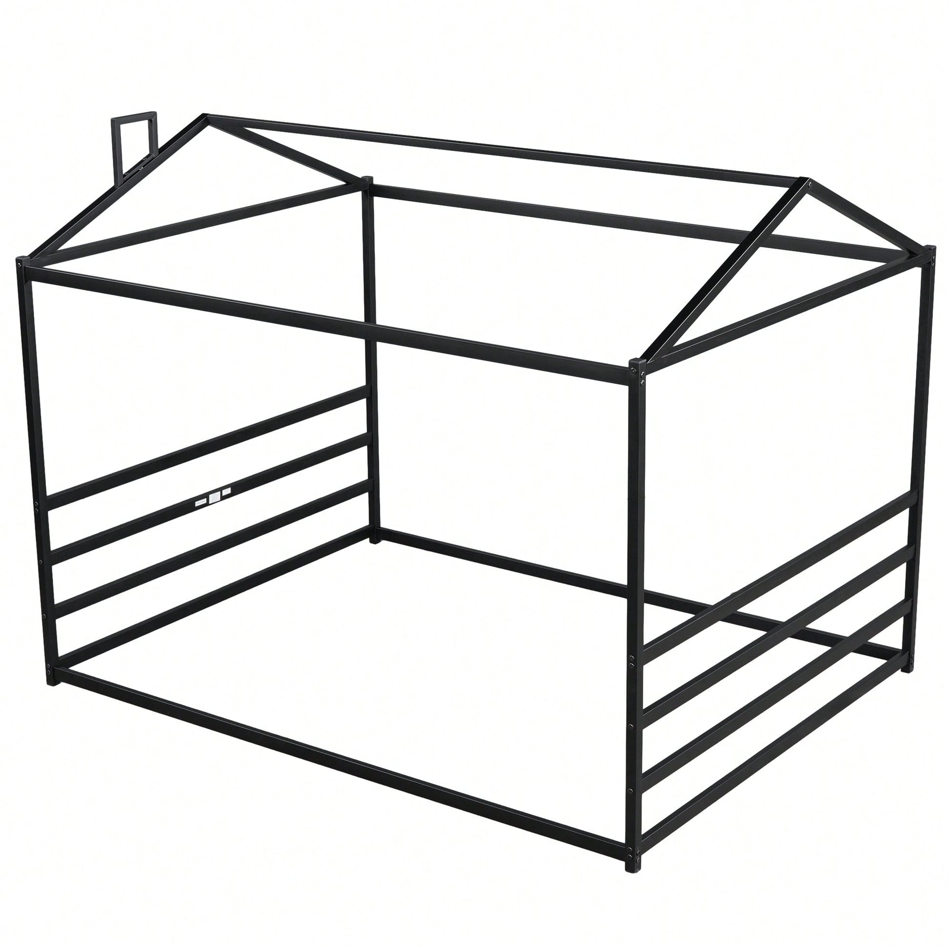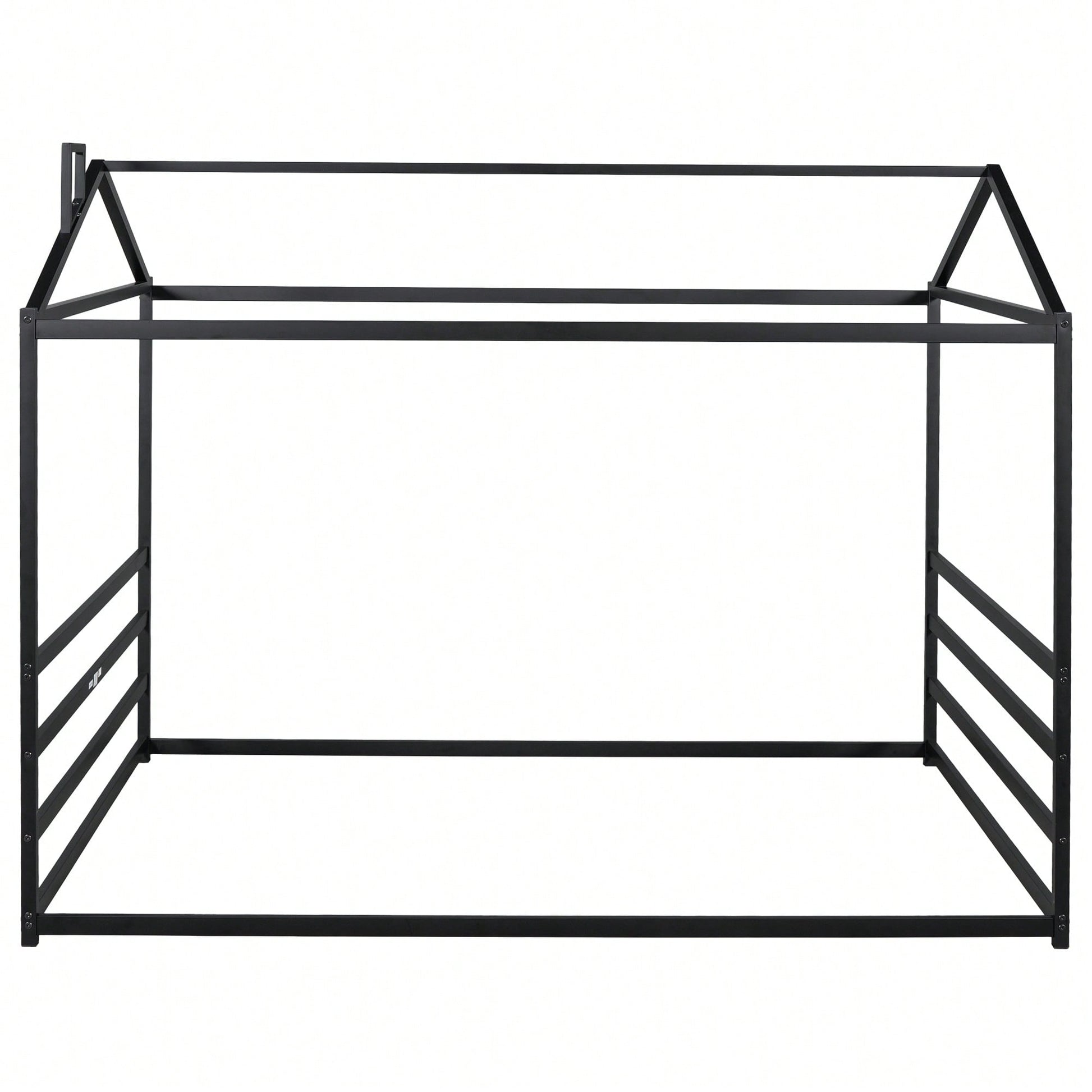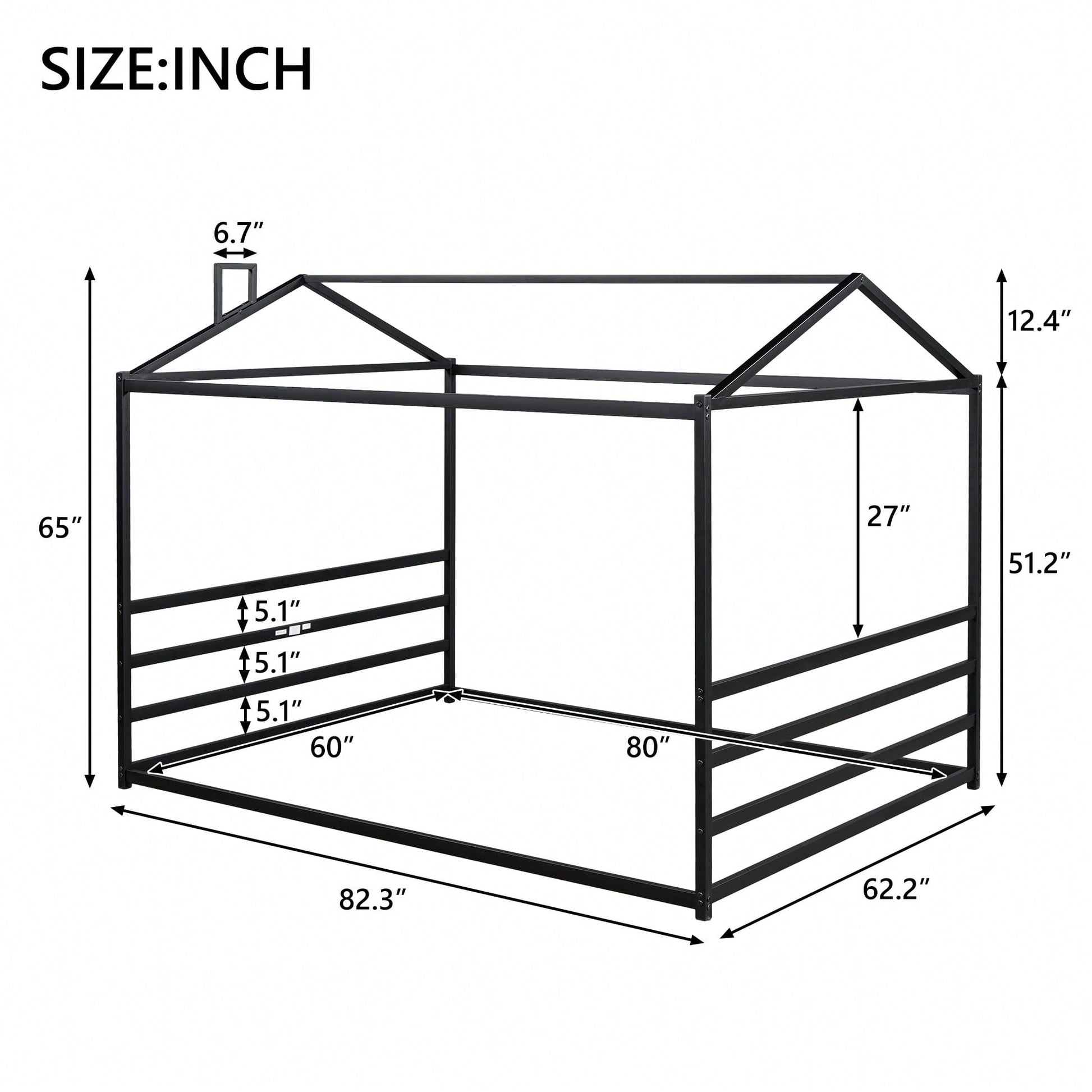 Stylish Black Metal House-Shaped Queen Platform Bed For Unique Bedroom Decor