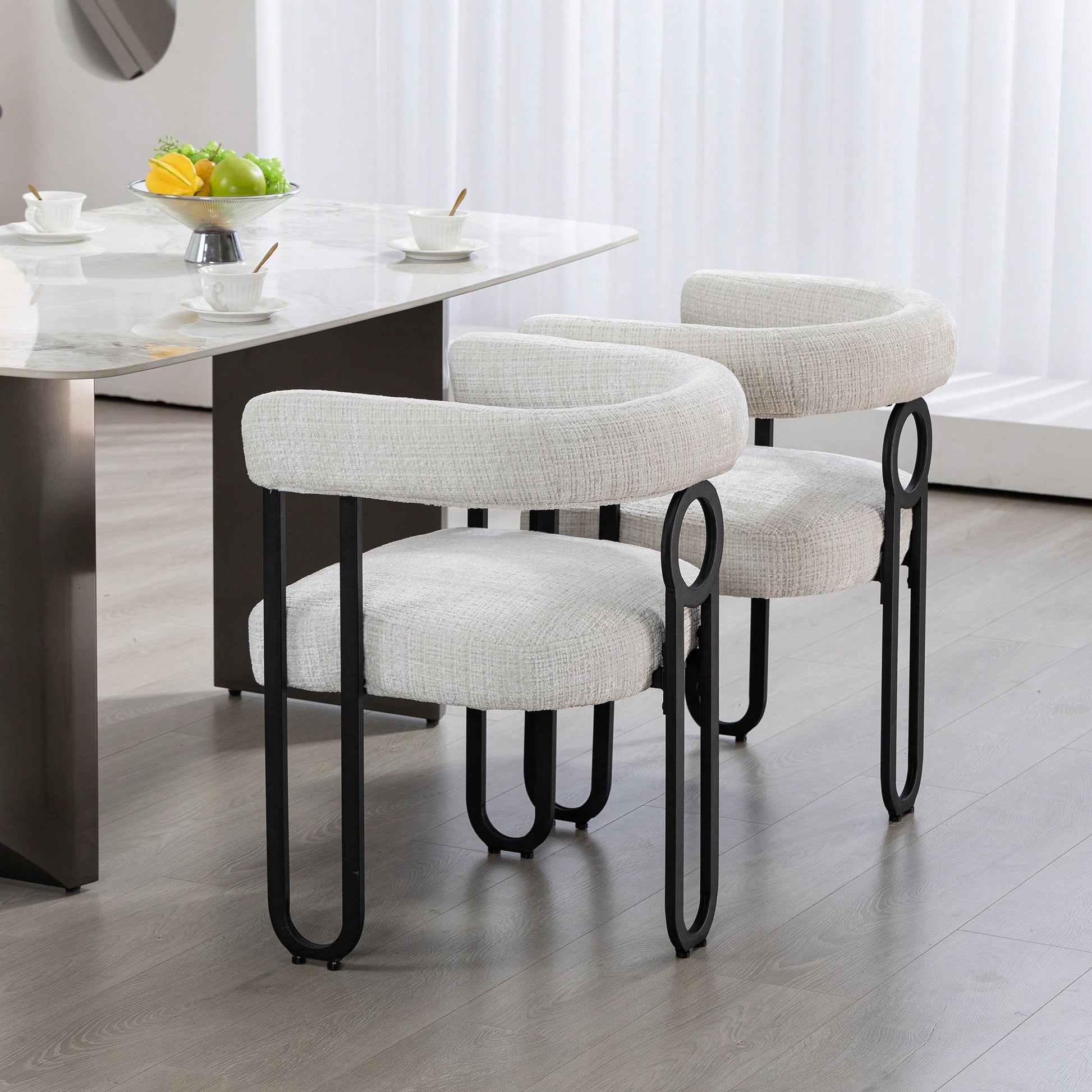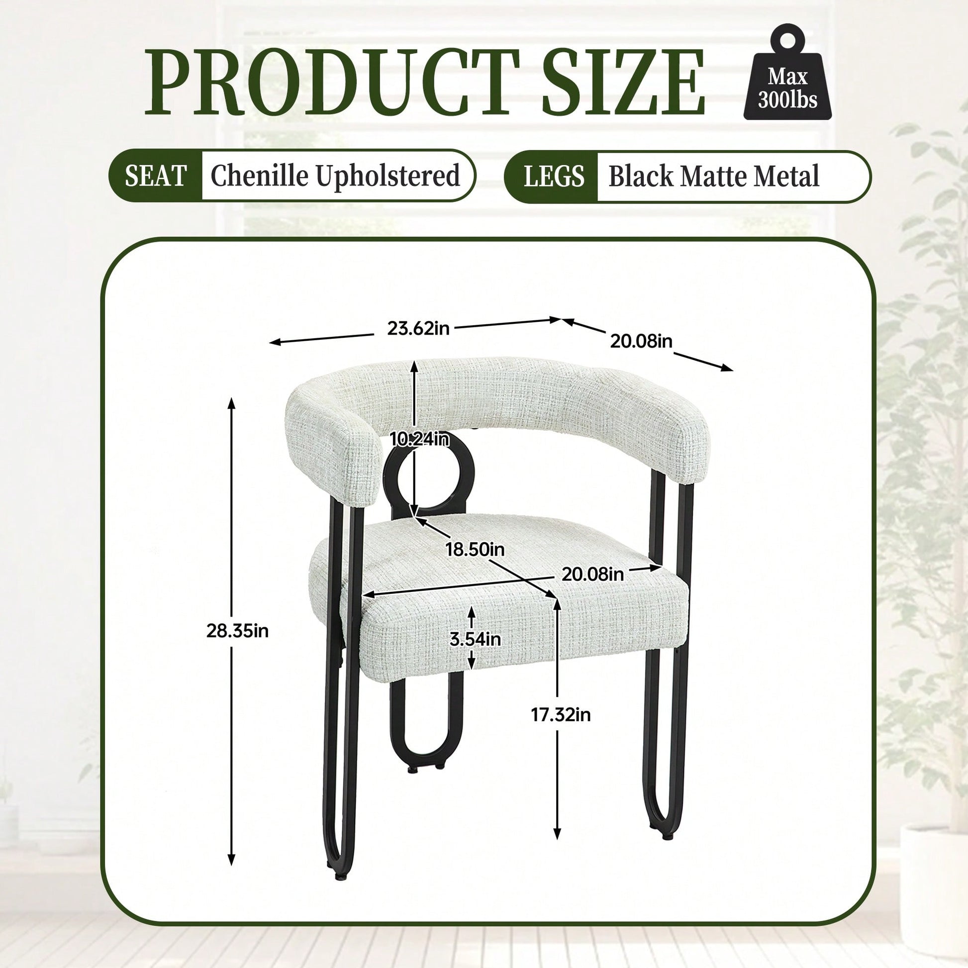 Stylish Chenille Fabric Upholstered Barrel Accent Chairs For Living Room – Set Of 2 Beige Kitchen Armchairs