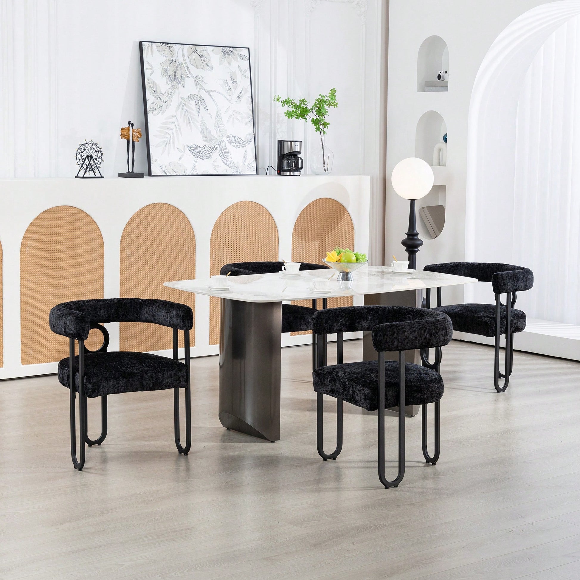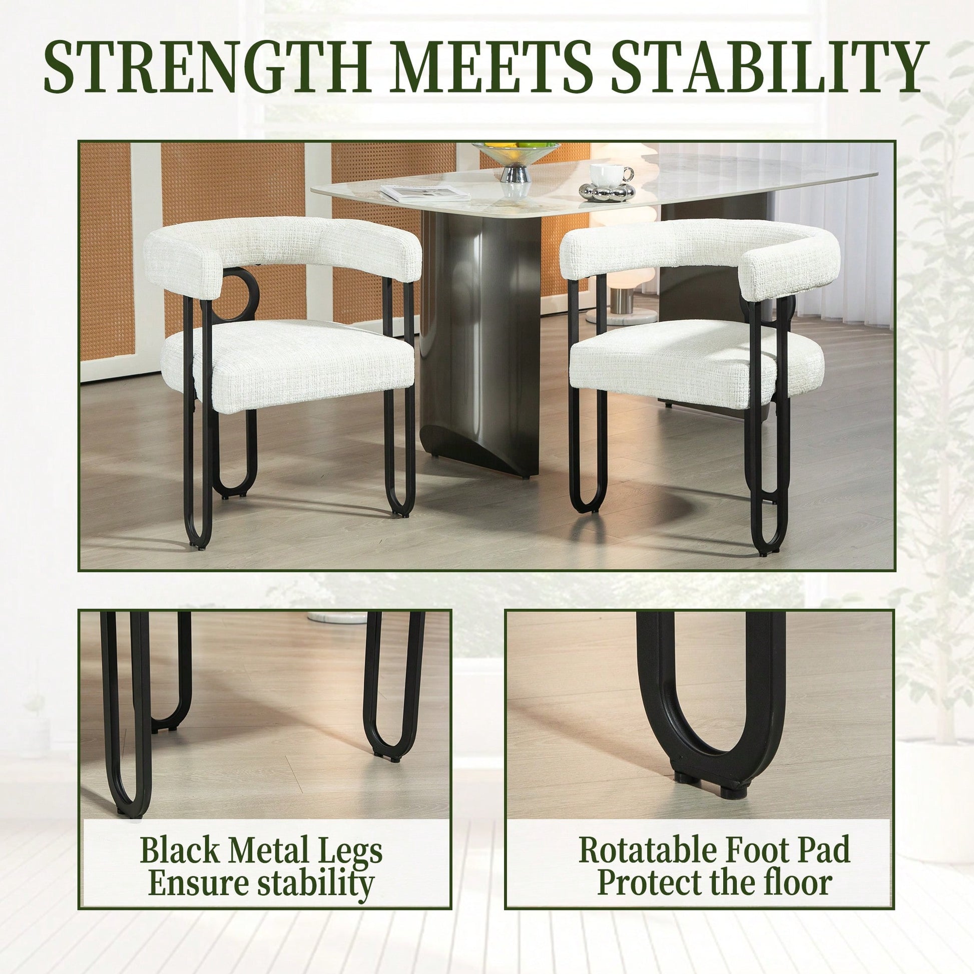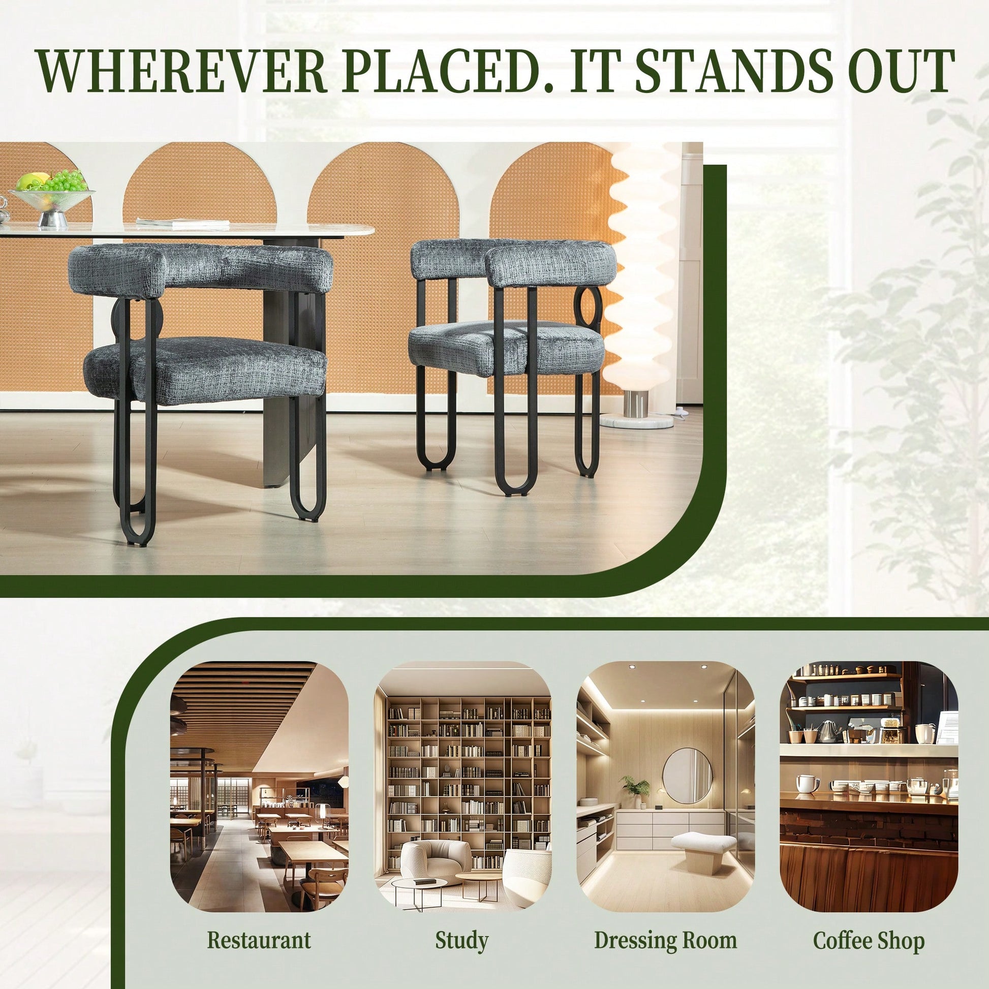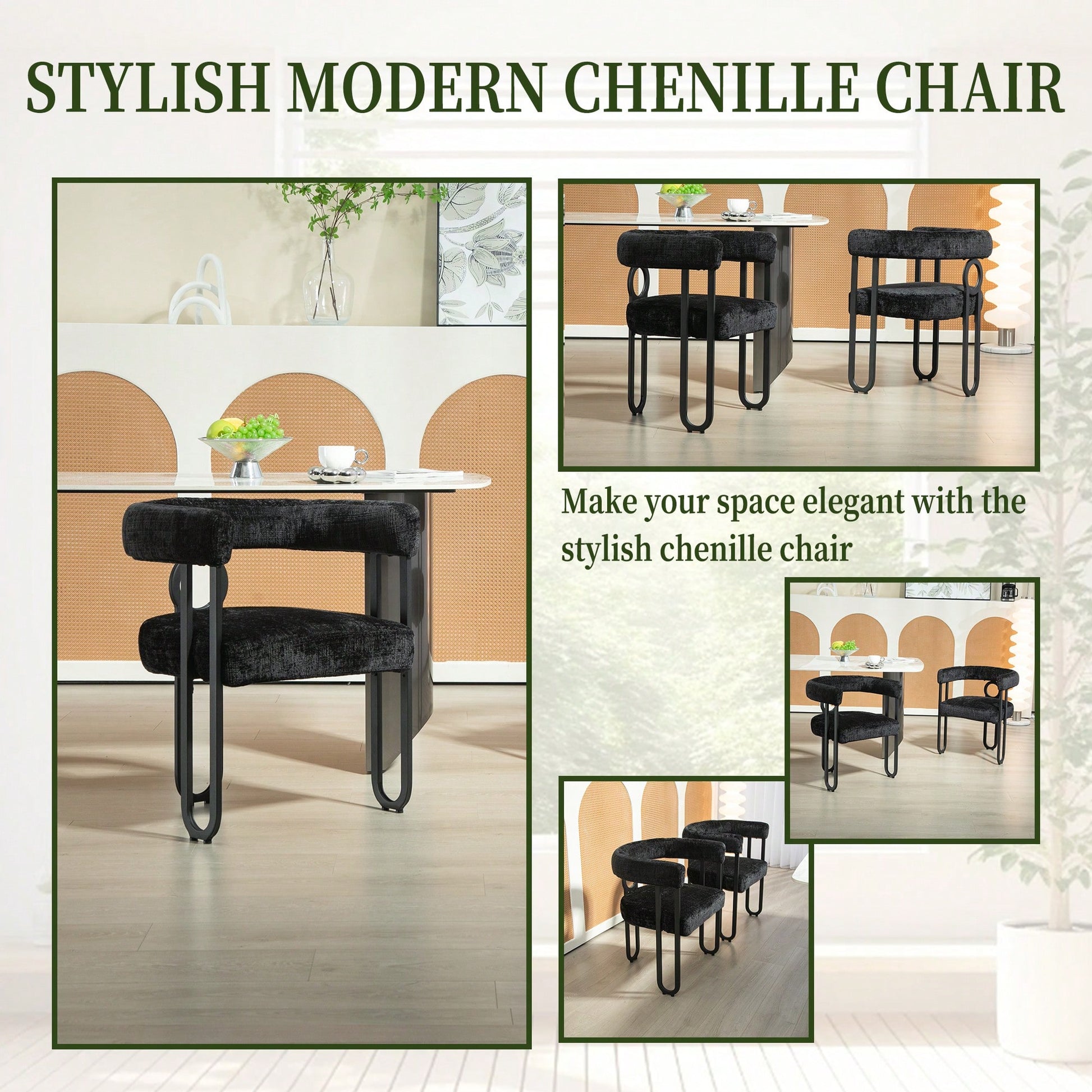 This accent chair showcases a modern design, featuring a unique round back that enhances aesthetic appeal while providing excellent support. The chair is built with a sturdy metal frame, ensuring durability and stability. Its thick round cushion, filled with high-density foam, offers superior comfort for extended seating. The beautifully curved backrest is padded, allowing for a soft and supportive lean when enjoying meals or unwinding. The matte black legs not only add a touch of sophistication but also ensure the chair can seamlessly fit into different decor styles.