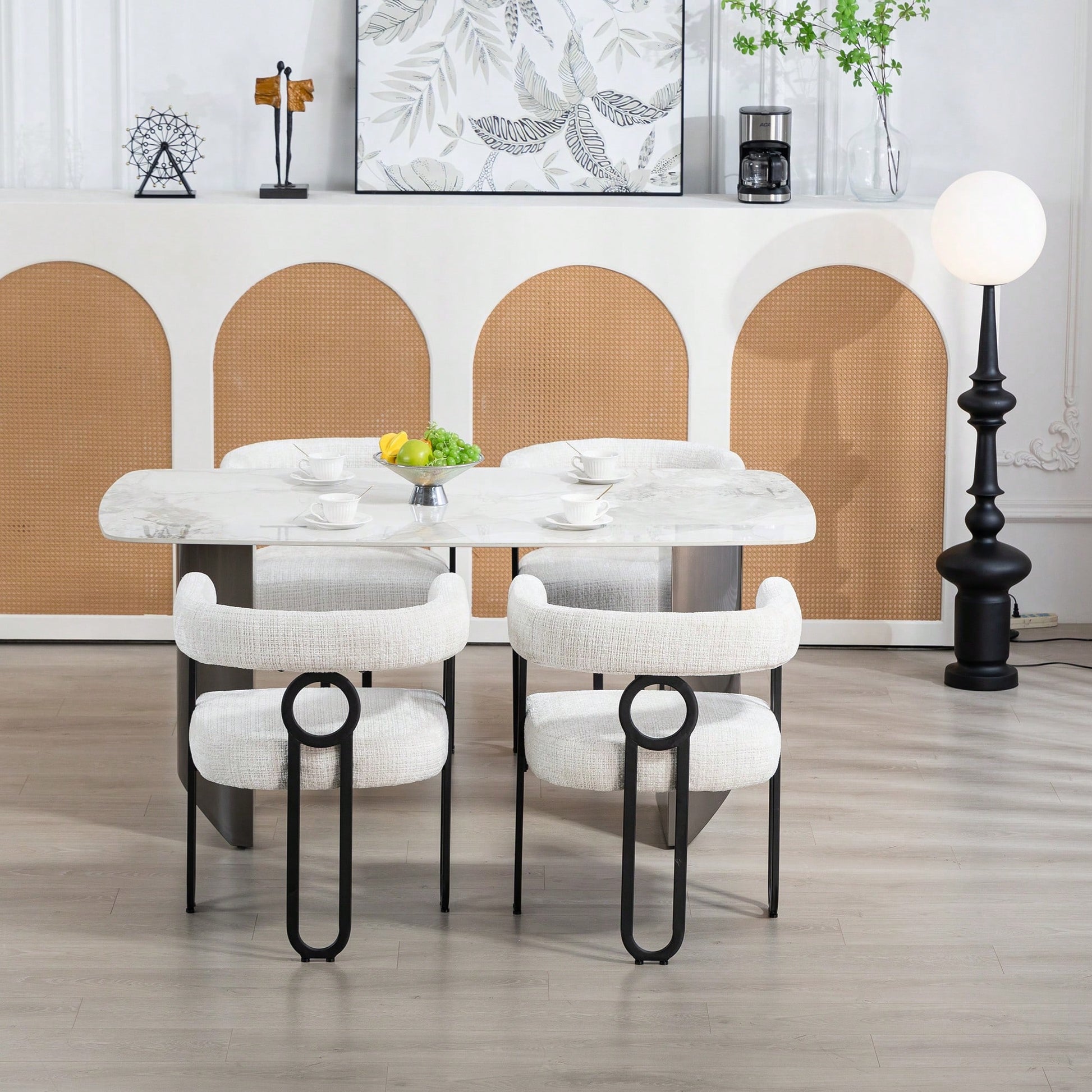 - Matte black metal legs add sophistication and ease of integration into various kitchen or dining room styles.