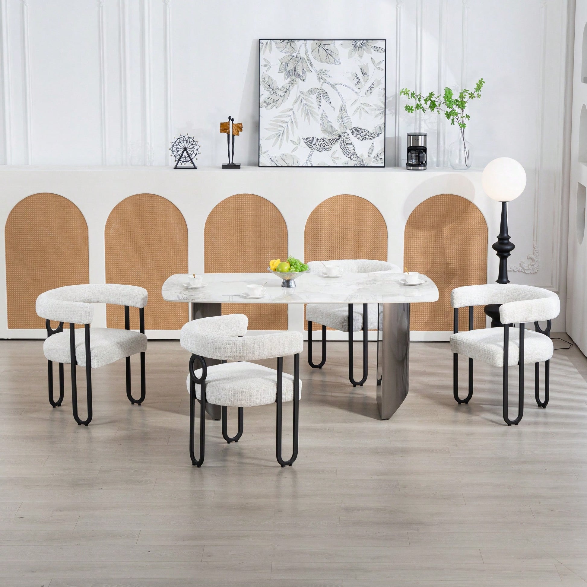 - Modern stylish design with a unique round back and sleek metal frame that complements contemporary interiors.