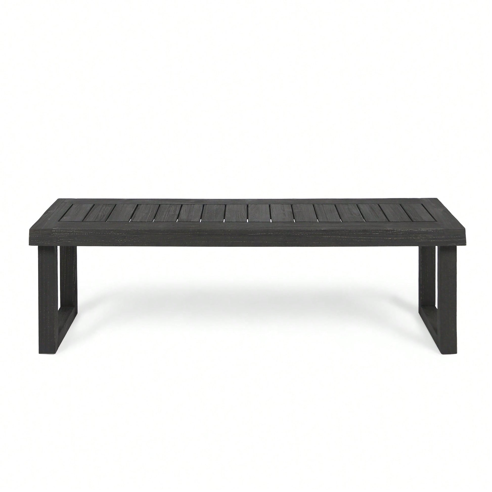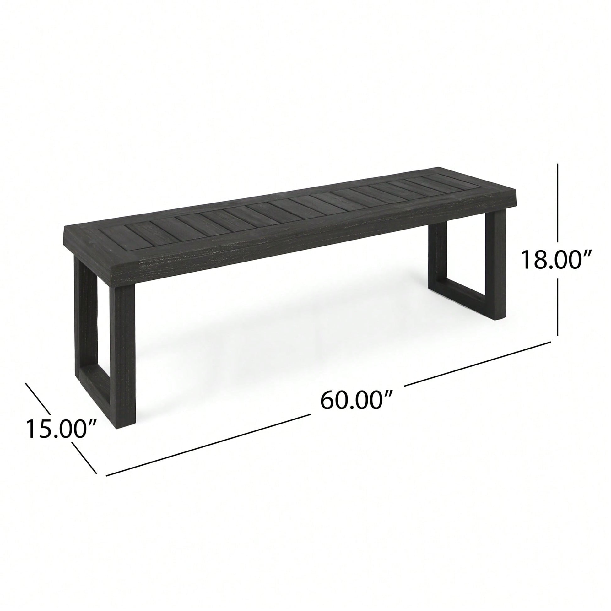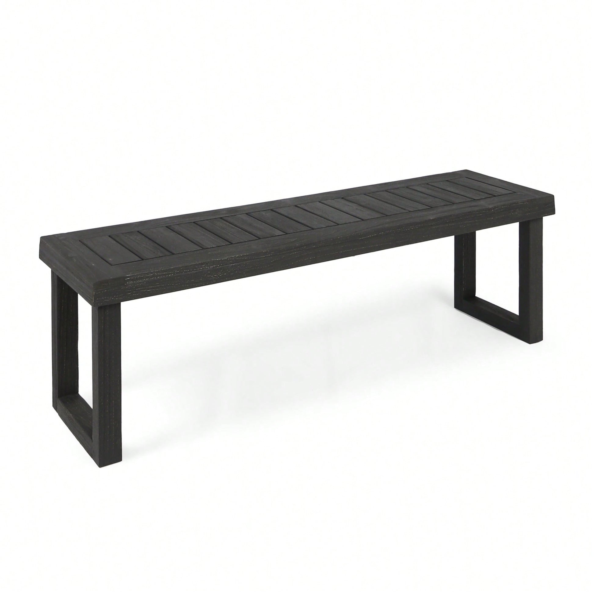 This dark grey bench is perfect for enhancing your outdoor space, whether used alone or as part of a dining set. Crafted from sturdy acacia wood, it offers a robust frame that naturally resists wear and tear. The sophisticated slat panel design adds a timeless touch, making it a stylish addition to any patio or backyard. While it is designed to withstand mild weather, it is advisable to protect the bench from heavy exposure to the elements for optimal longevity.