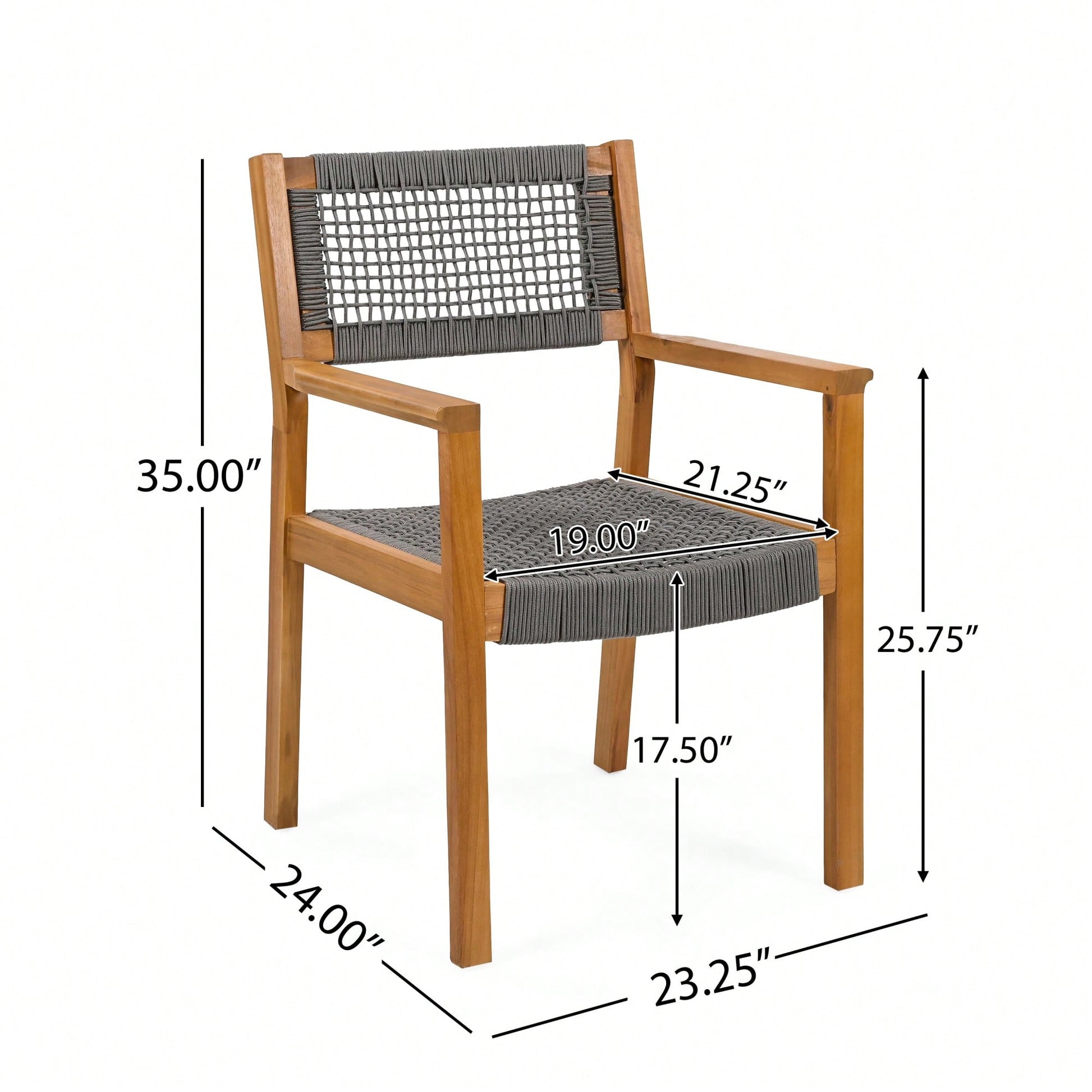 This dining chair set includes two beautifully crafted chairs, made from high-quality acacia wood paired with light brown rope. The ergonomic design ensures comfort during use, making it perfect for dining or entertaining. The simple installation process allows for quick setup, with all necessary tools and instructions provided.
