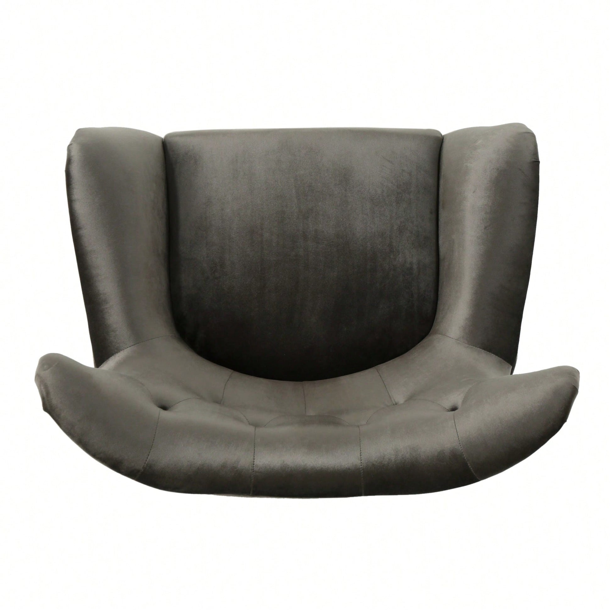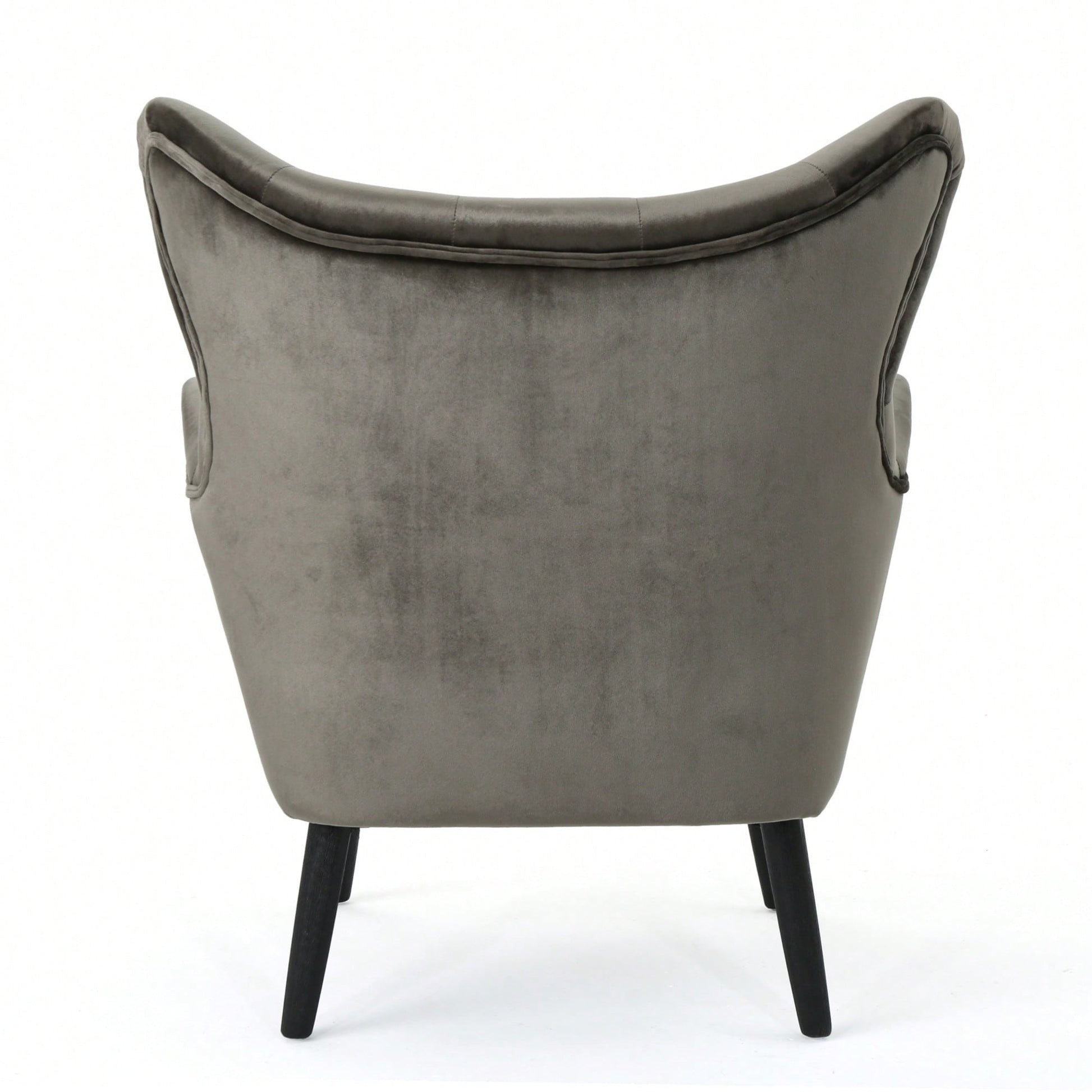 This velvet arm chair combines playful design with luxurious color to create a captivating focal point in any room. The gently curved wingback provides an elegant silhouette, while traditional tufting adds a classic touch reminiscent of mid-century modern styles. Available in a variety of fun and fashionable colors, this chair is not only a comfortable seating option but also a whimsical accent piece for your home decor. The sturdy oak wood frame ensures durability, and the black leg finish enhances the chair's sophisticated appearance. Some assembly is required for this stylish addition to your space.
