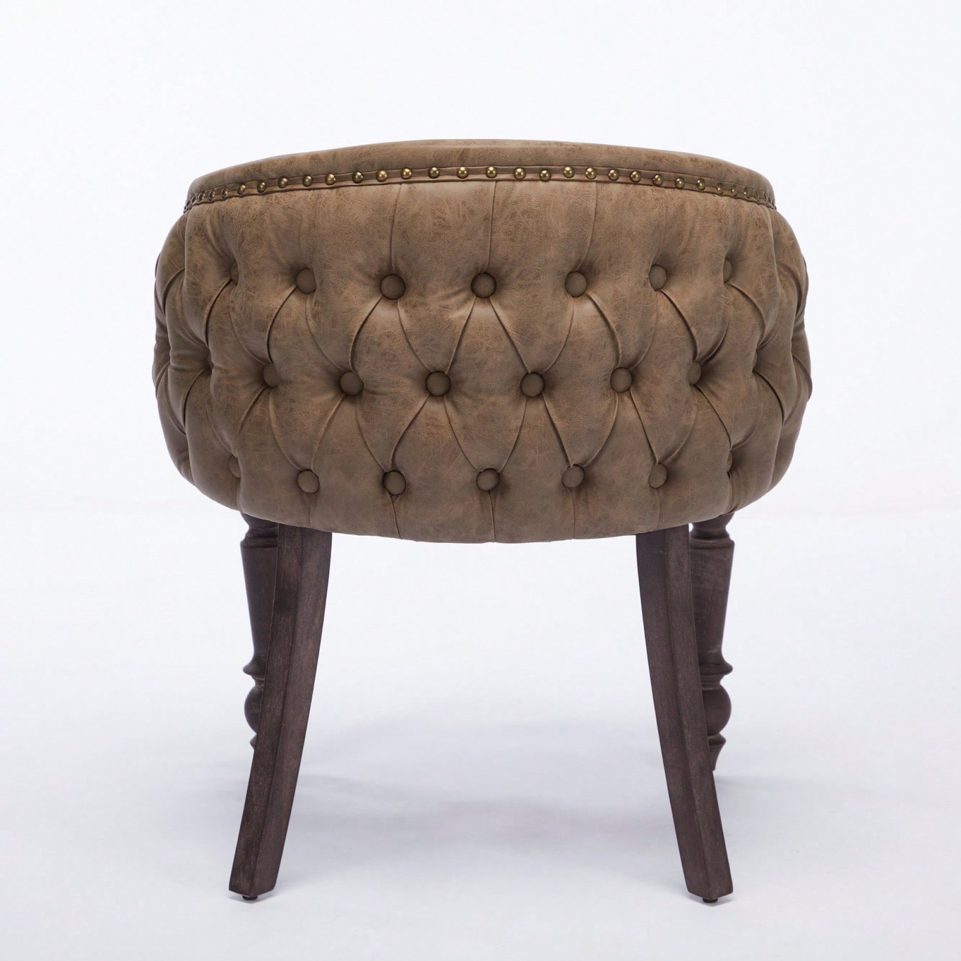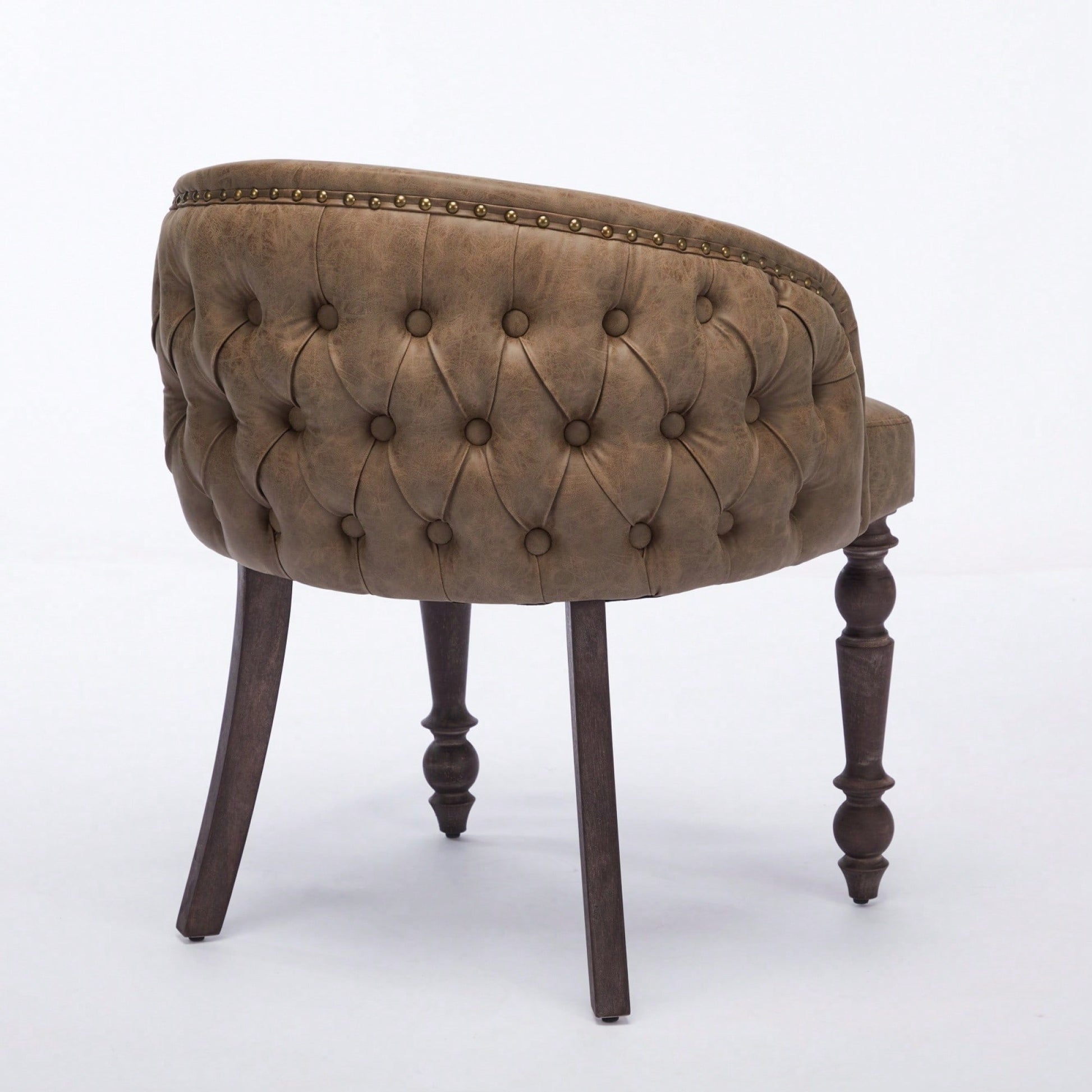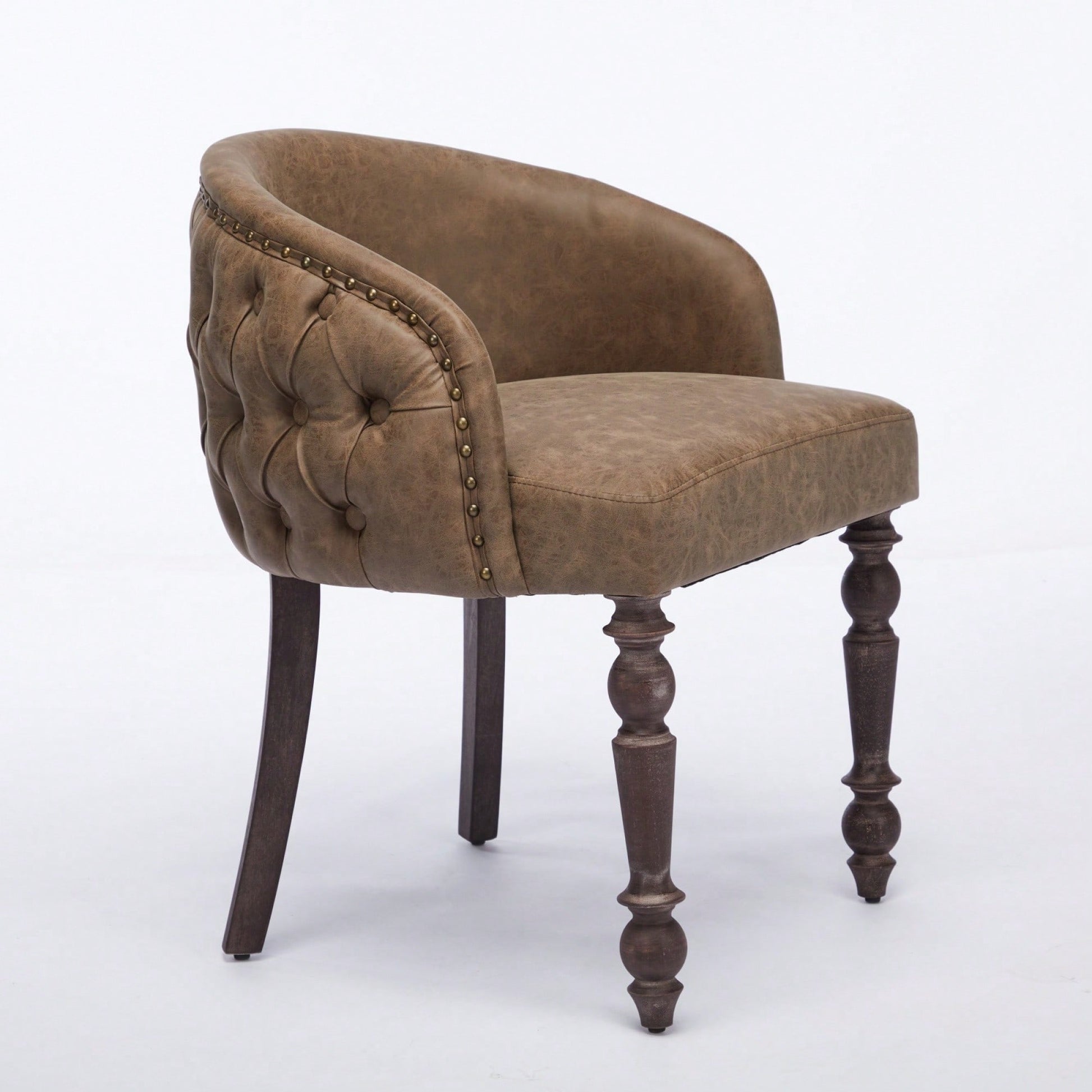 This elegantly designed chair combines art with functionality, featuring handcrafted button loops that adorn the entire backrest, showcasing exceptional craftsmanship. The high-density foam cushion, supported by a steel spring inner structure, guarantees a comfortable and supportive seating experience. With a backrest and armrests designed to provide strong support, this chair is perfect for both dining and lounging, bringing warmth and style to any room in your home.