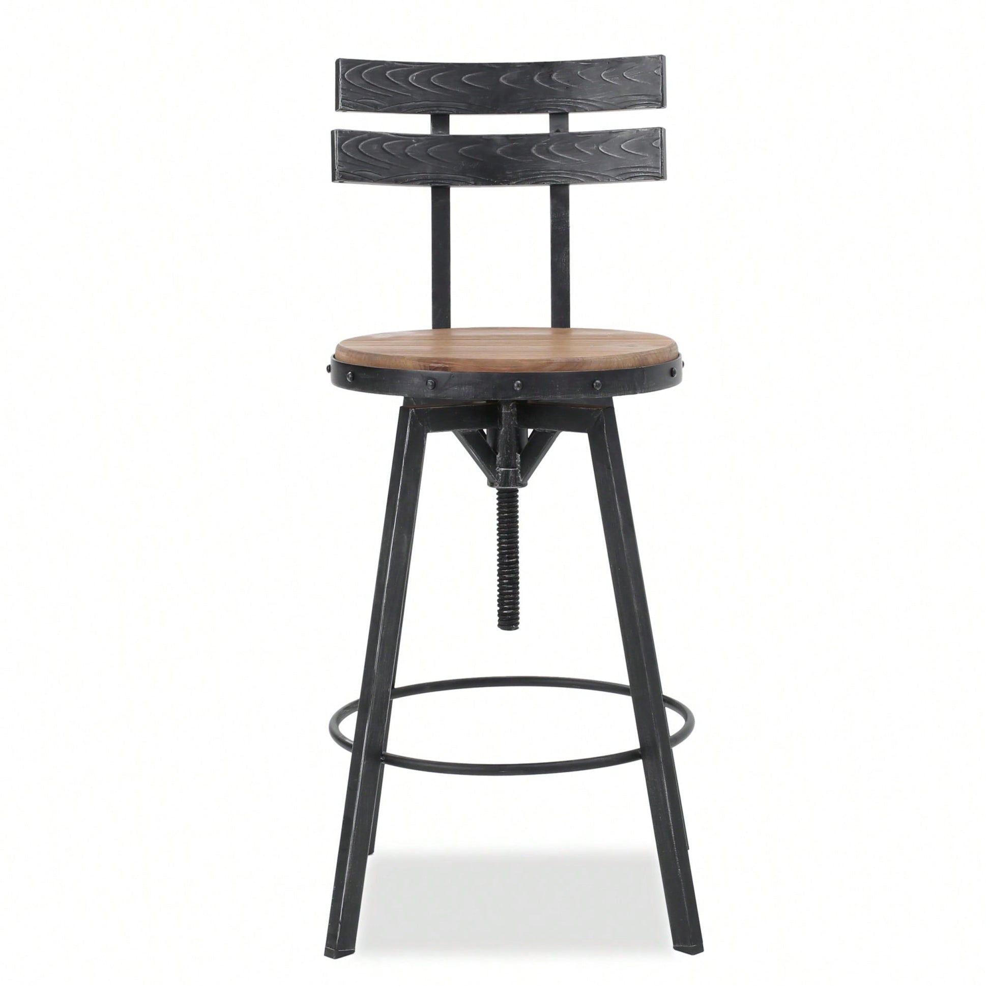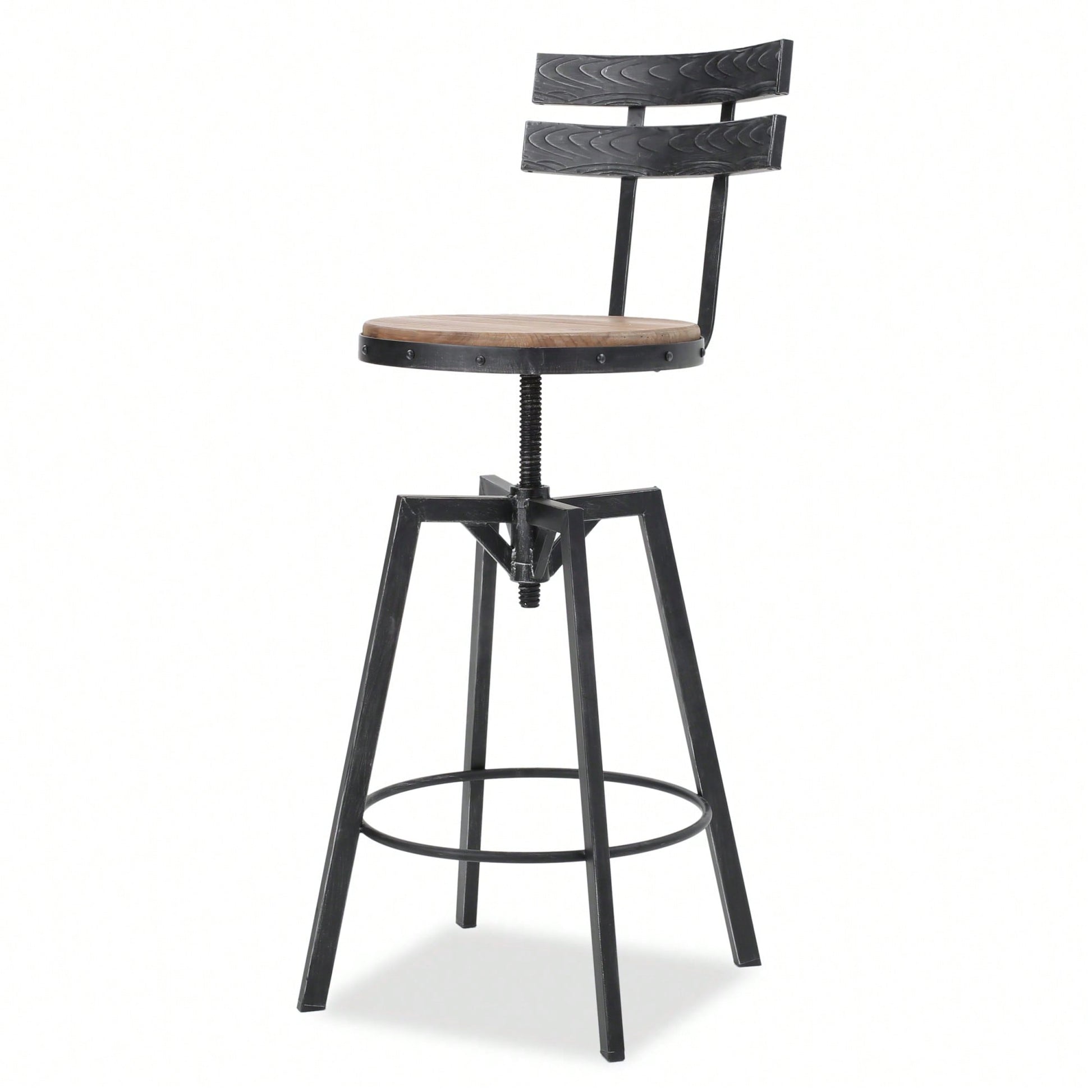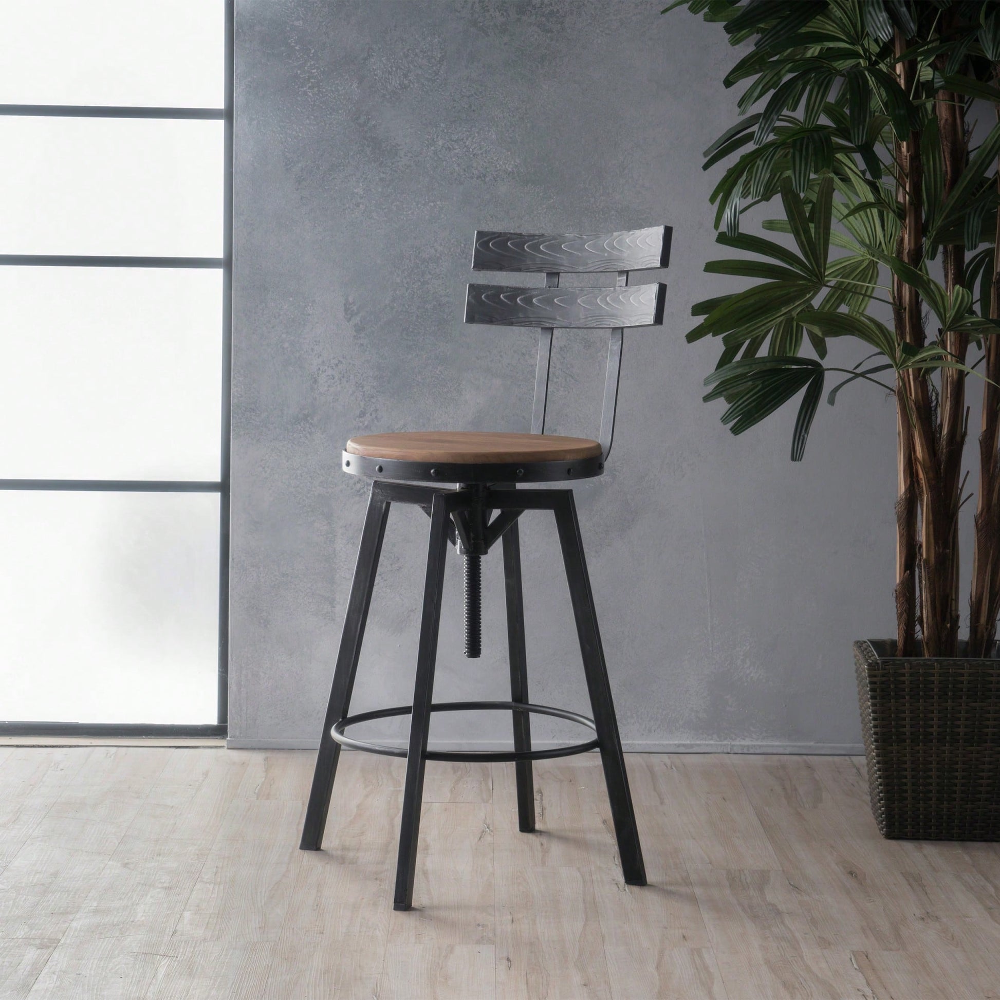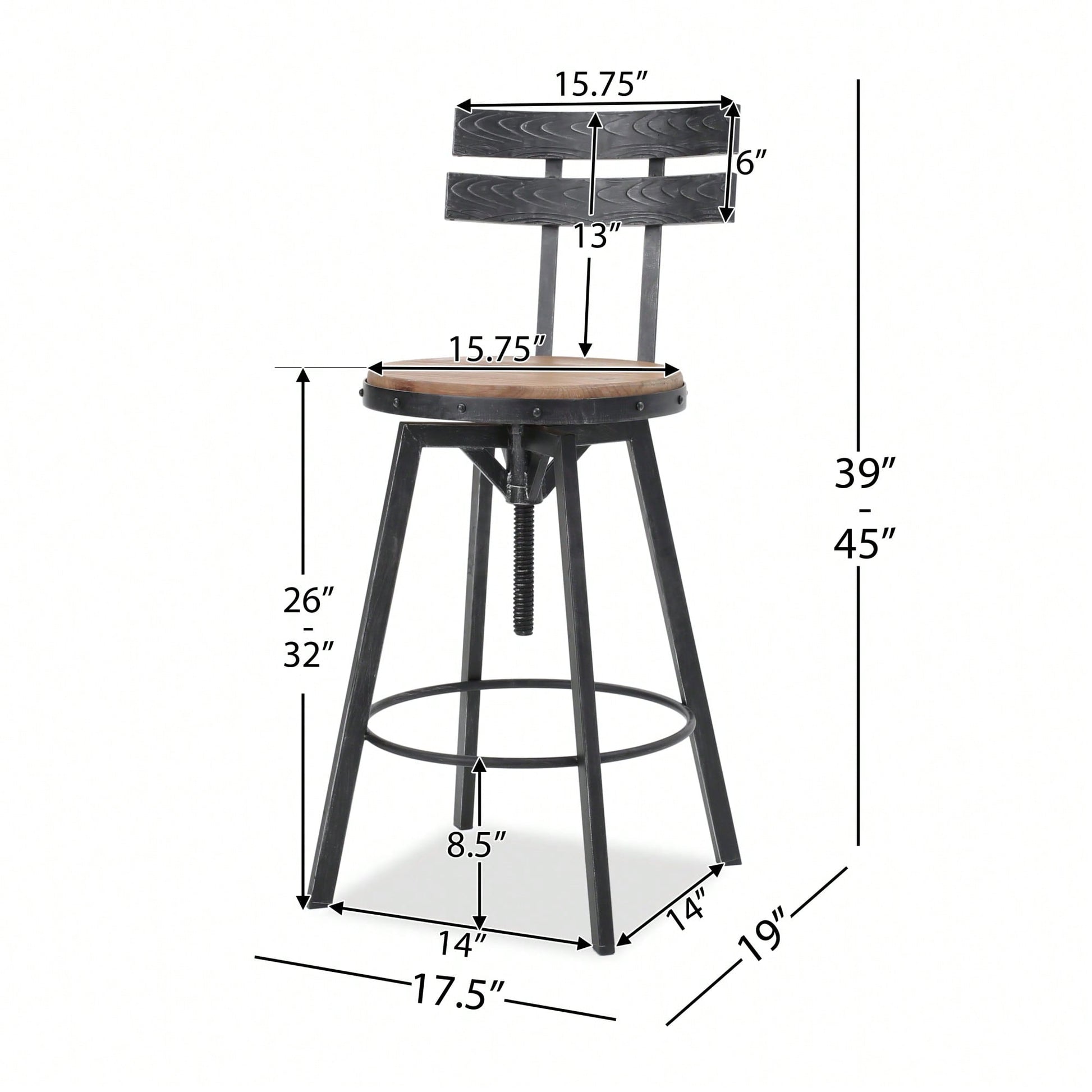 This barstool combines a metal frame with a wood-like finish, making it a perfect addition to any kitchen or dining area. The black brush silver metal framework paired with an antique finish fir wood seat creates a rustic yet chic aesthetic. Its height and design ensure comfort and style, making it an excellent choice for casual dining or entertaining guests.