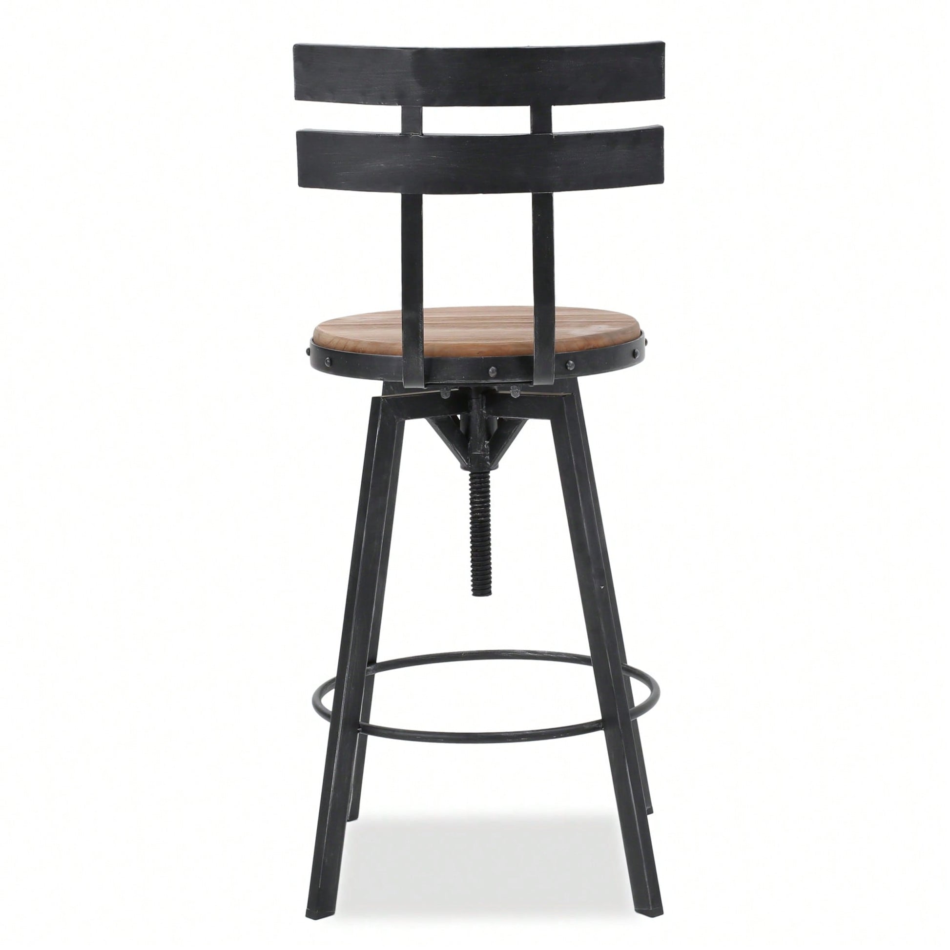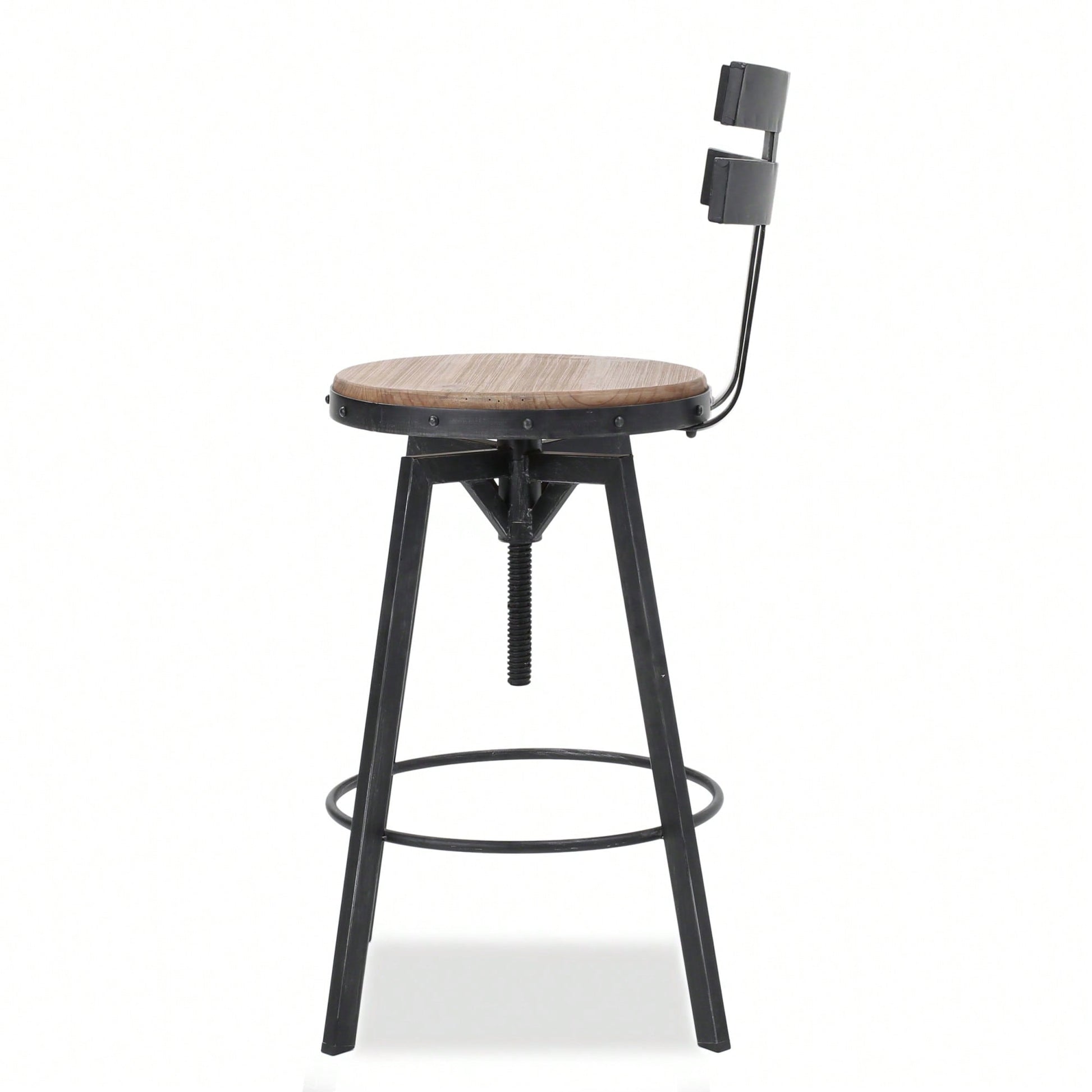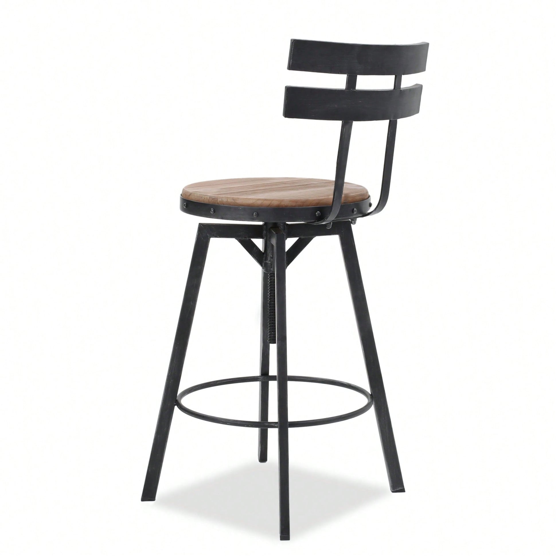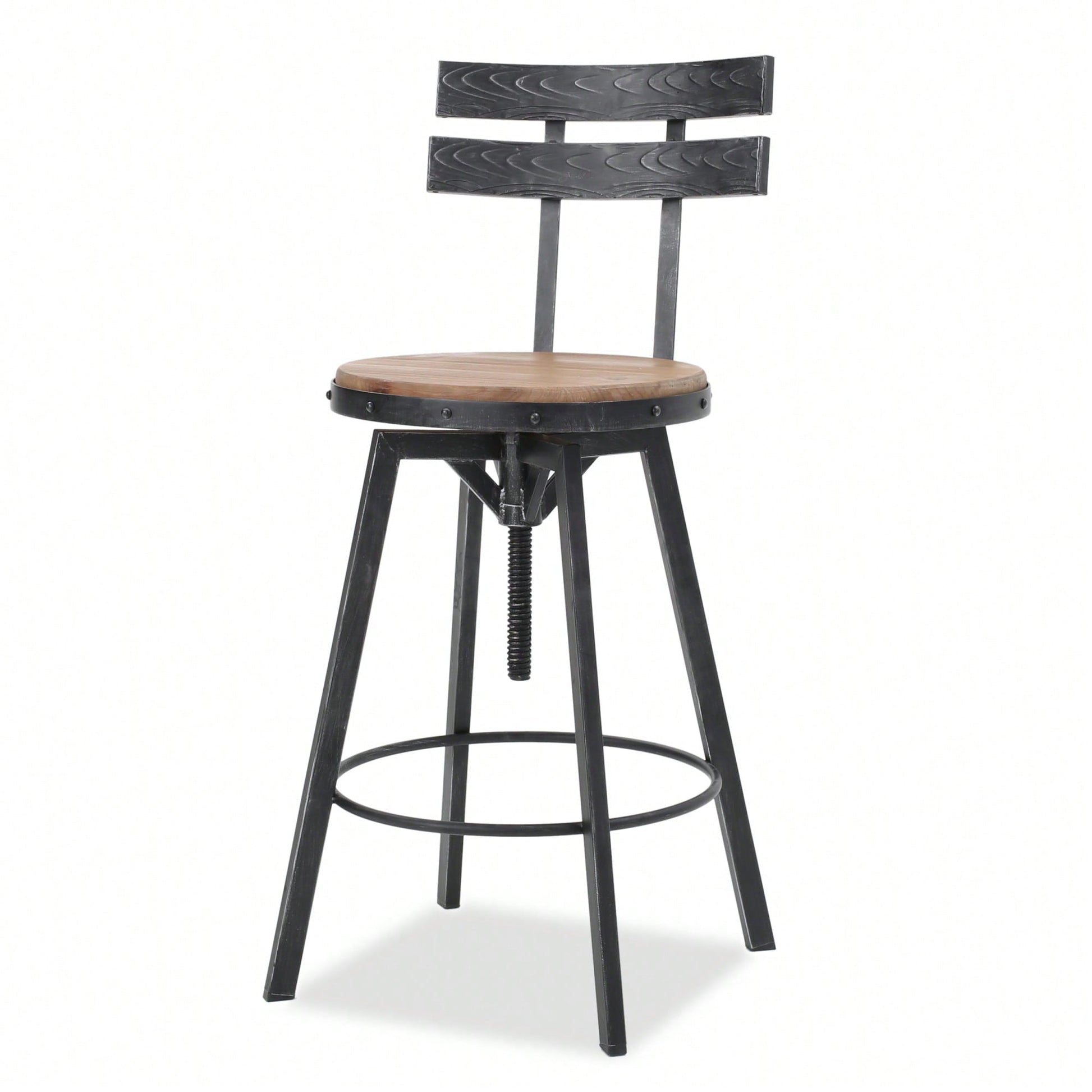 This barstool combines a metal frame with a wood-like finish, making it a perfect addition to any kitchen or dining area. The black brush silver metal framework paired with an antique finish fir wood seat creates a rustic yet chic aesthetic. Its height and design ensure comfort and style, making it an excellent choice for casual dining or entertaining guests.
