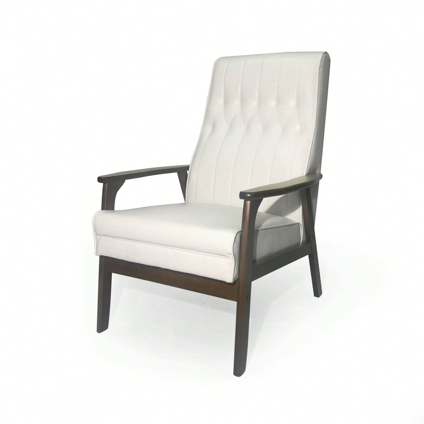 This upholstered accent chair combines mid-century modern aesthetics with contemporary materials. The clean lines and understated design make it a perfect addition to any lounge space. The tufted backrest adds sophistication while ensuring comfort. Crafted from durable rubberwood, this chair not only stands out visually but also offers longevity.