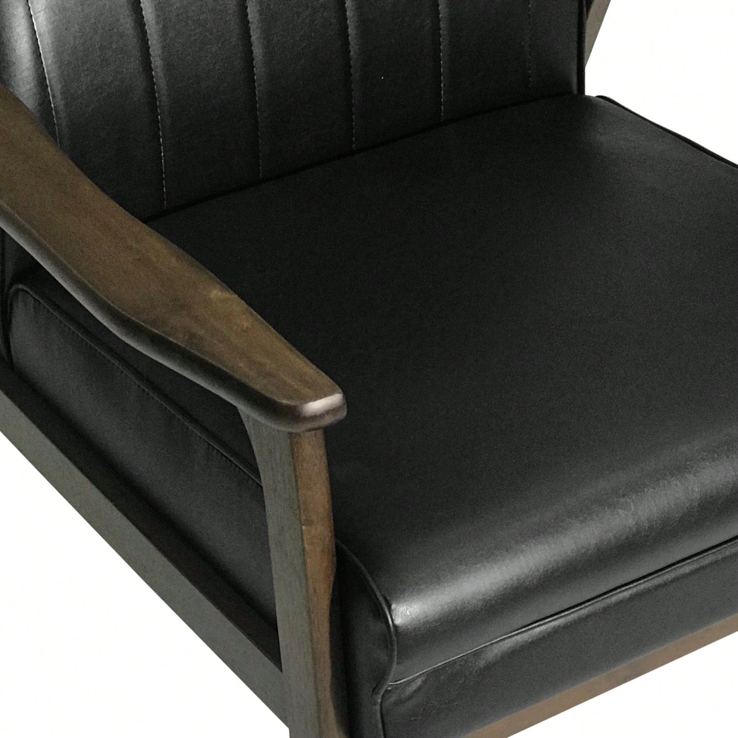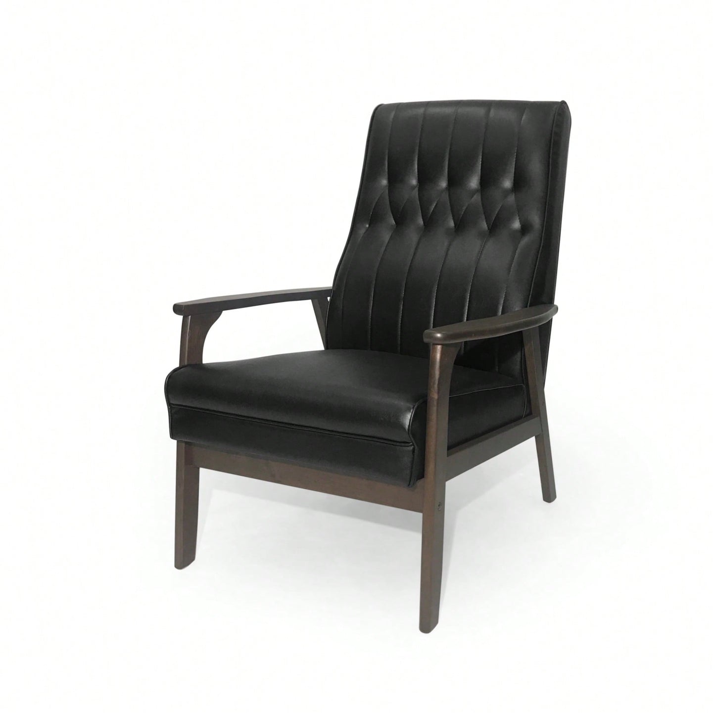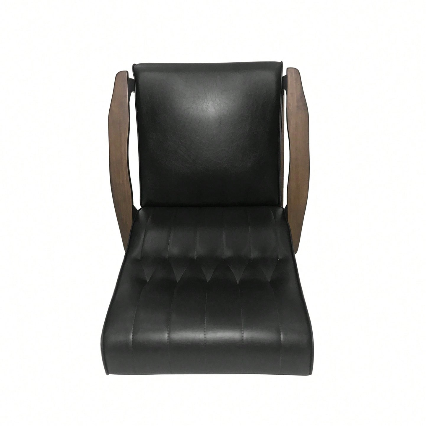 Stylish Mid Century Modern Upholstered Accent Chair In Matte Black Faux Leather For Living Room Or Office Decor
