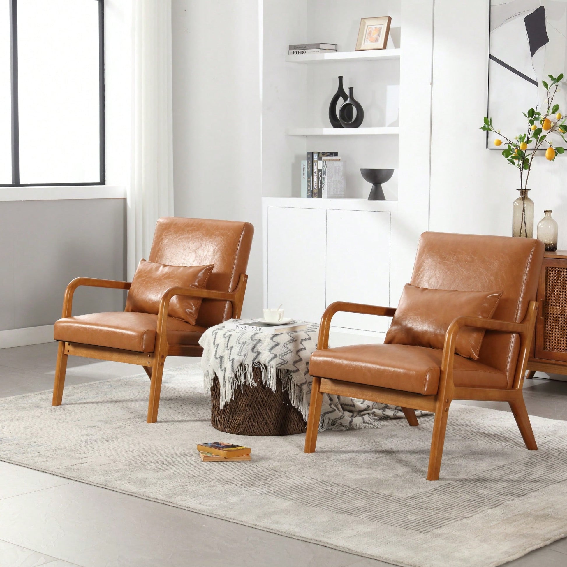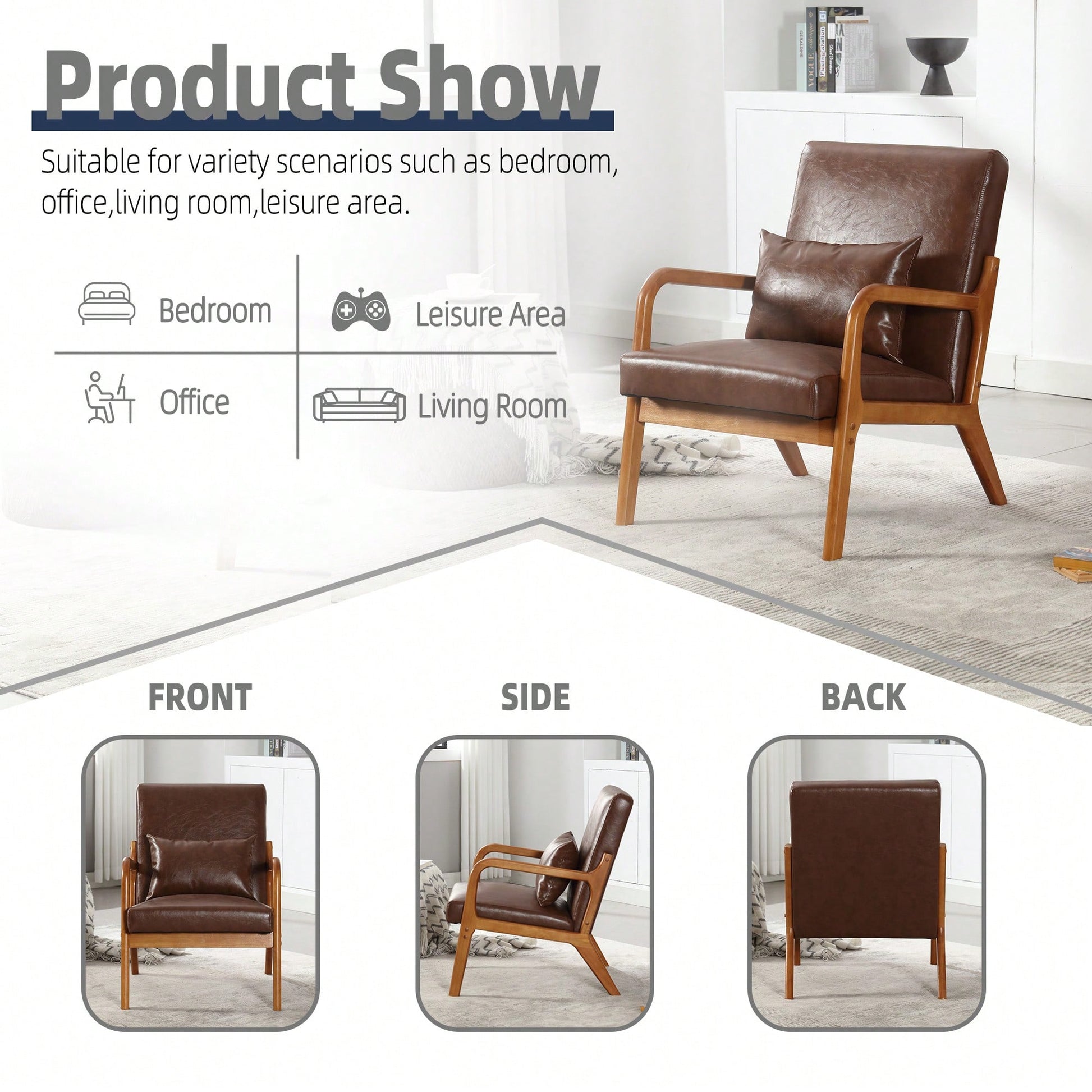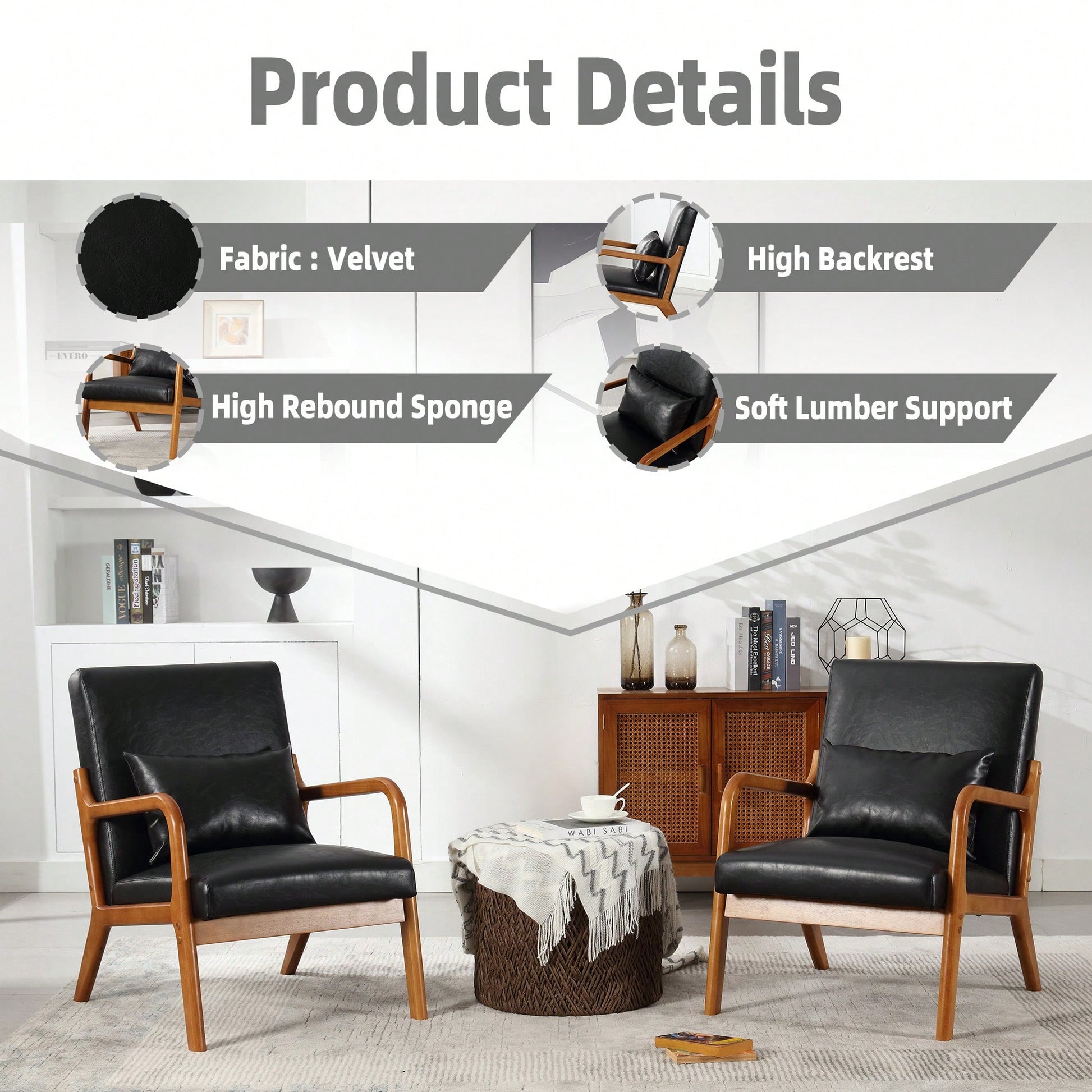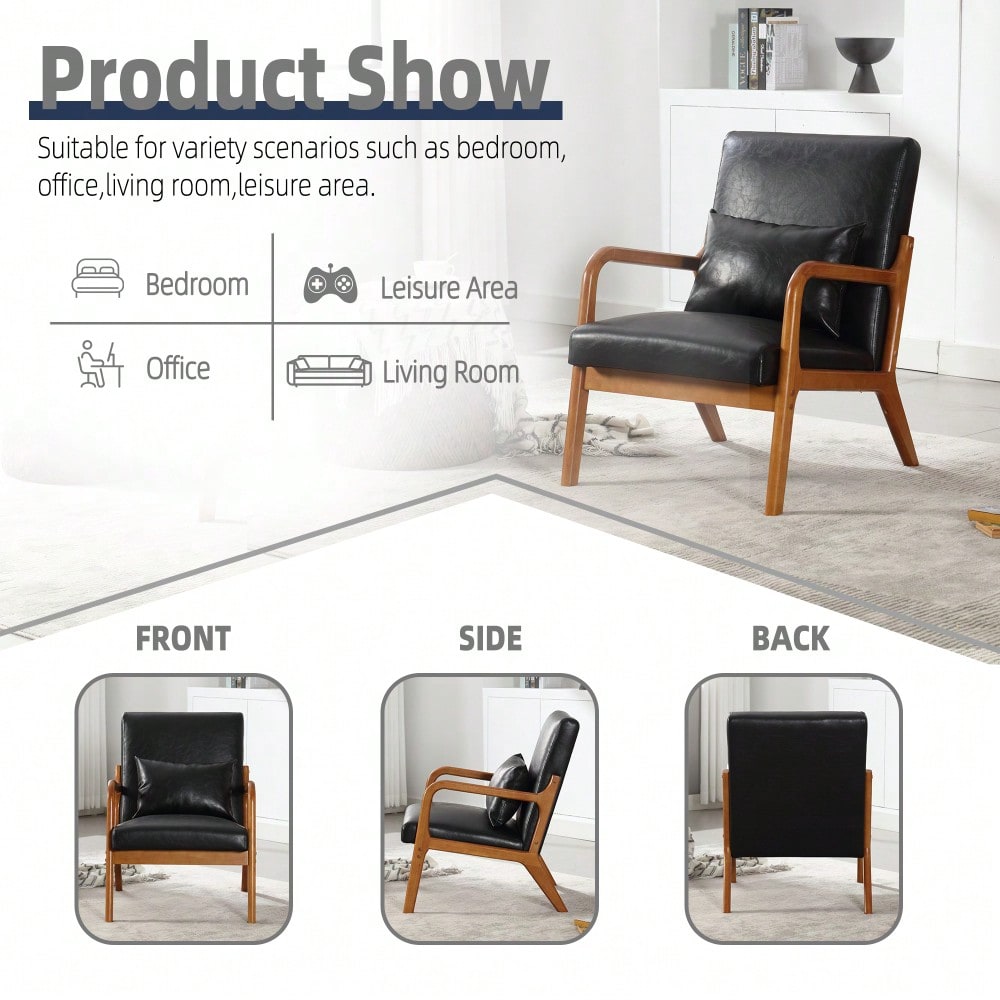 Stylish Modern Accent Chair With Solid Wood Frame And Plush Cushion For Living Room, Bedroom, Or Guest Room In Black PU