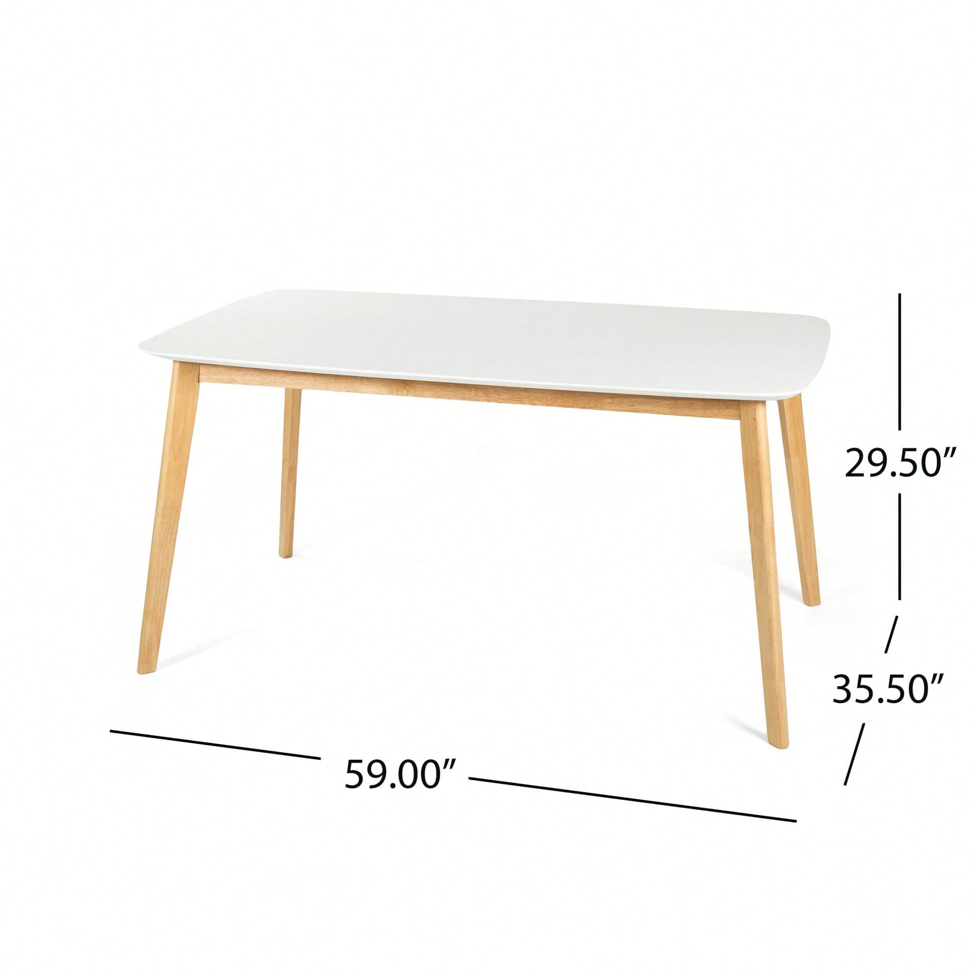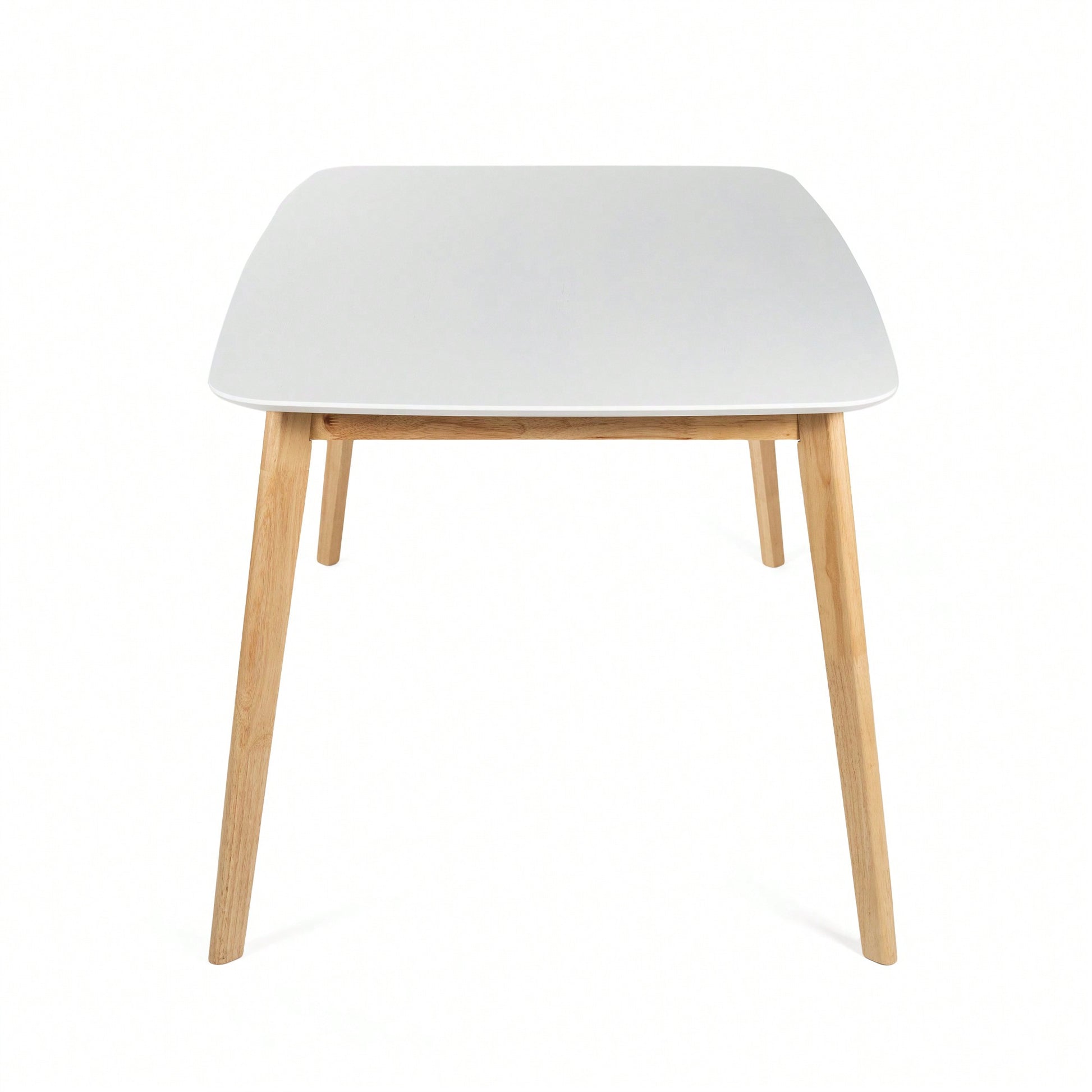 This dining table captures the essence of mid-century design with its elegant splayed legs and sleek wood frame. The clean lines and minimalist aesthetic make it a versatile addition to any lounge or dining space. Crafted from rubberwood, the legs provide not only durability but also a beautiful natural-grain finish that enhances the table's overall appeal.