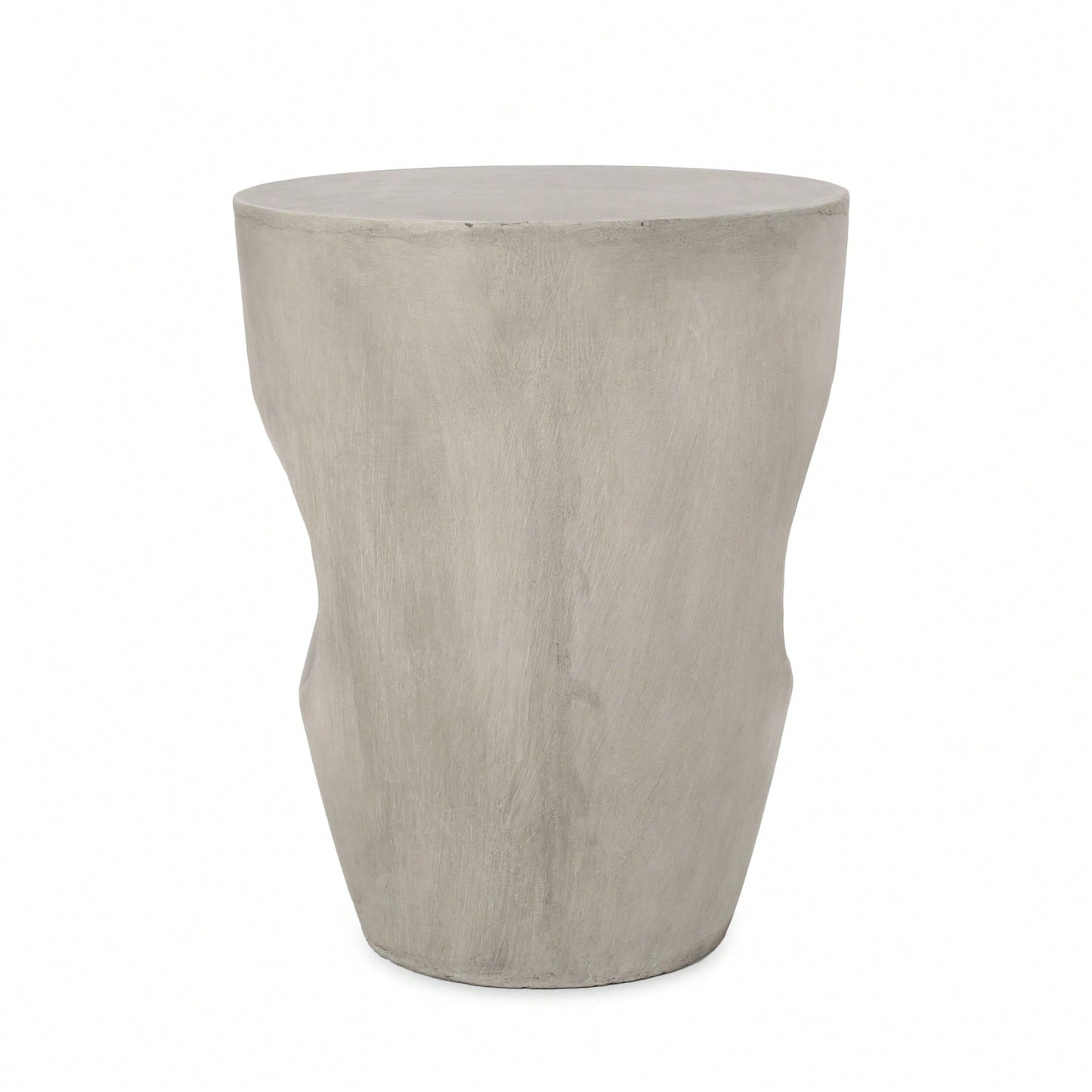 This side table is an ideal addition to enhance your outdoor living space, merging artistic flair with practicality. Crafted from smooth, lightweight concrete, it boasts a modern design that not only withstands the elements but also contributes to the visual appeal of your backyard or patio. The round tabletop and unique drum silhouette blend seamlessly into any setting, providing a stylish surface for resting snacks or chilled beverages while complementing your chat set or sectional furniture.