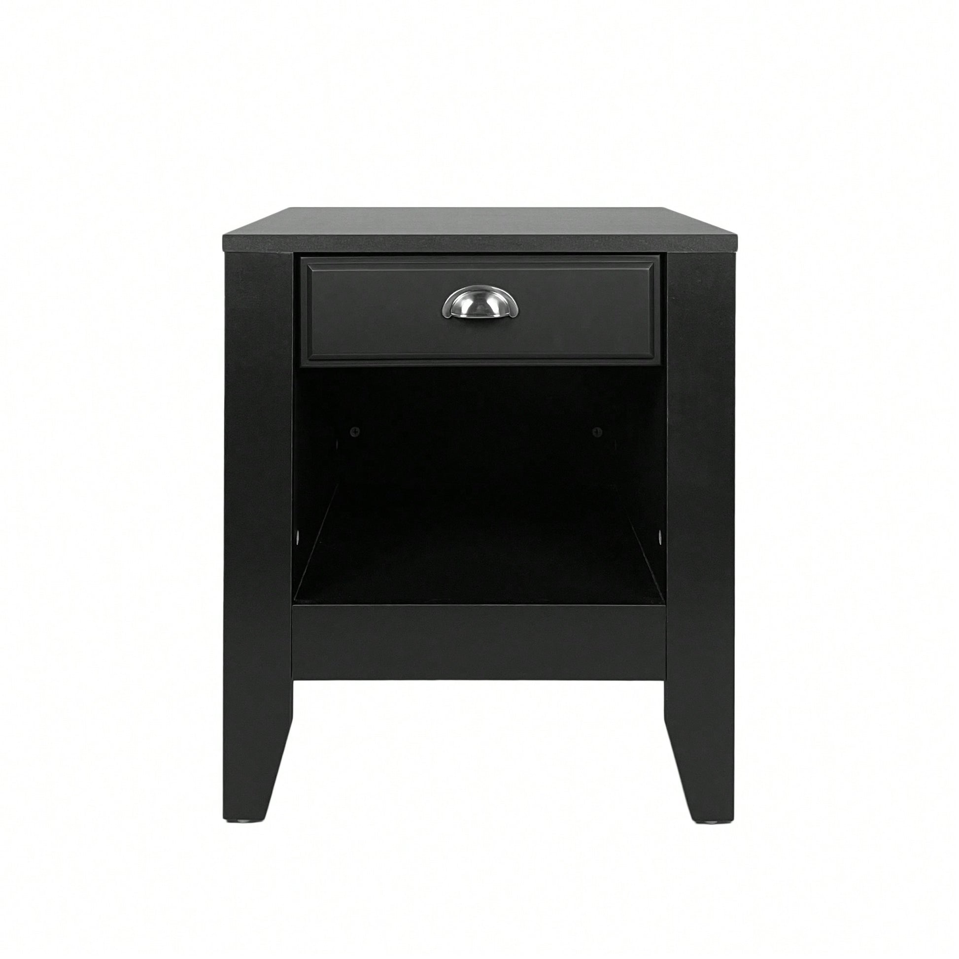 This nightstand showcases a contemporary design that emphasizes simplicity and functionality, making it a perfect addition to any modern space. Crafted from faux wood, it offers the aesthetic of real wood while being resistant to moisture. The nightstand includes a drawer and an open cubby, providing ample storage for your items. The smooth bin pull handles ensure easy access to the drawer, enhancing convenience in your daily routine.