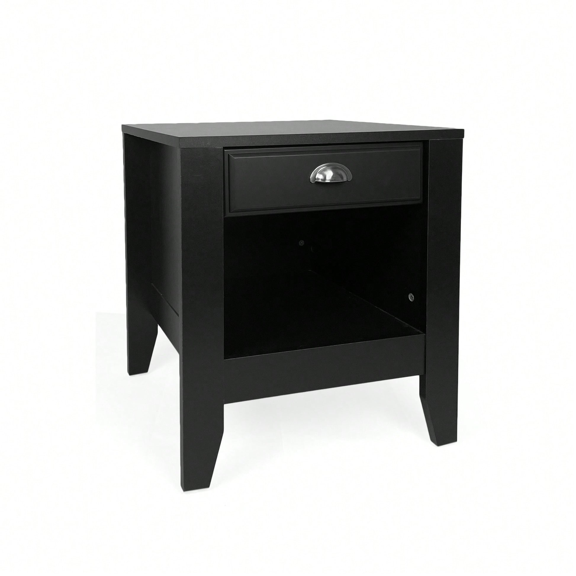 - Features one drawer and an open cubby for storage