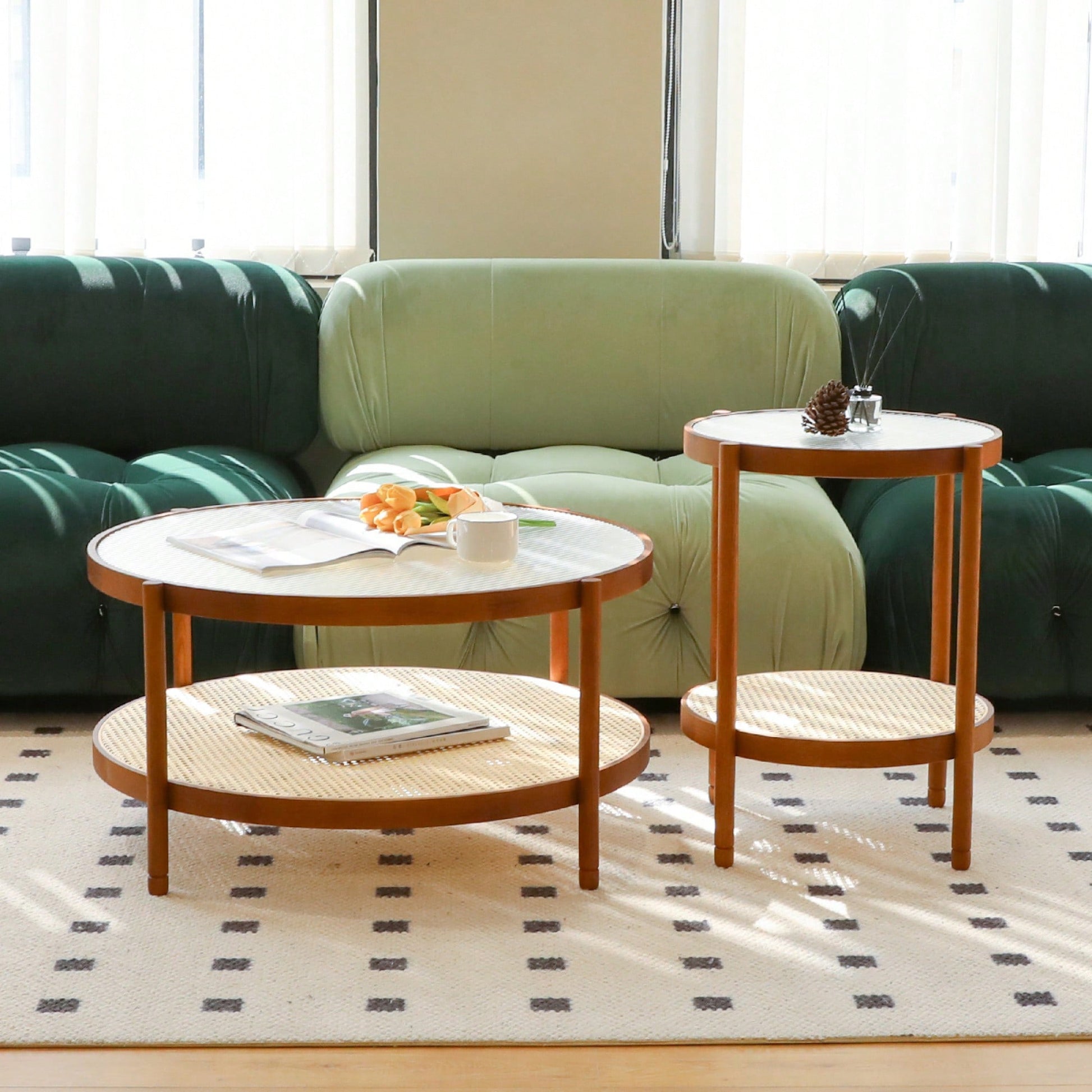 Stylish Nesting Round Wooden Coffee Table Set For Modern Farmhouse Living Room And Bedroom