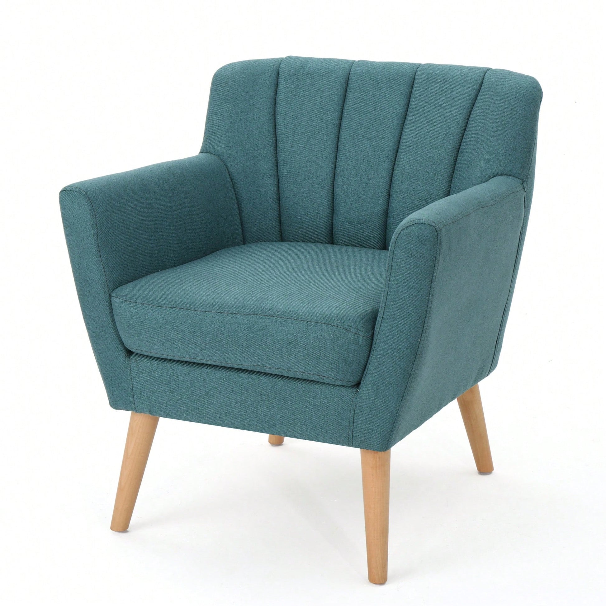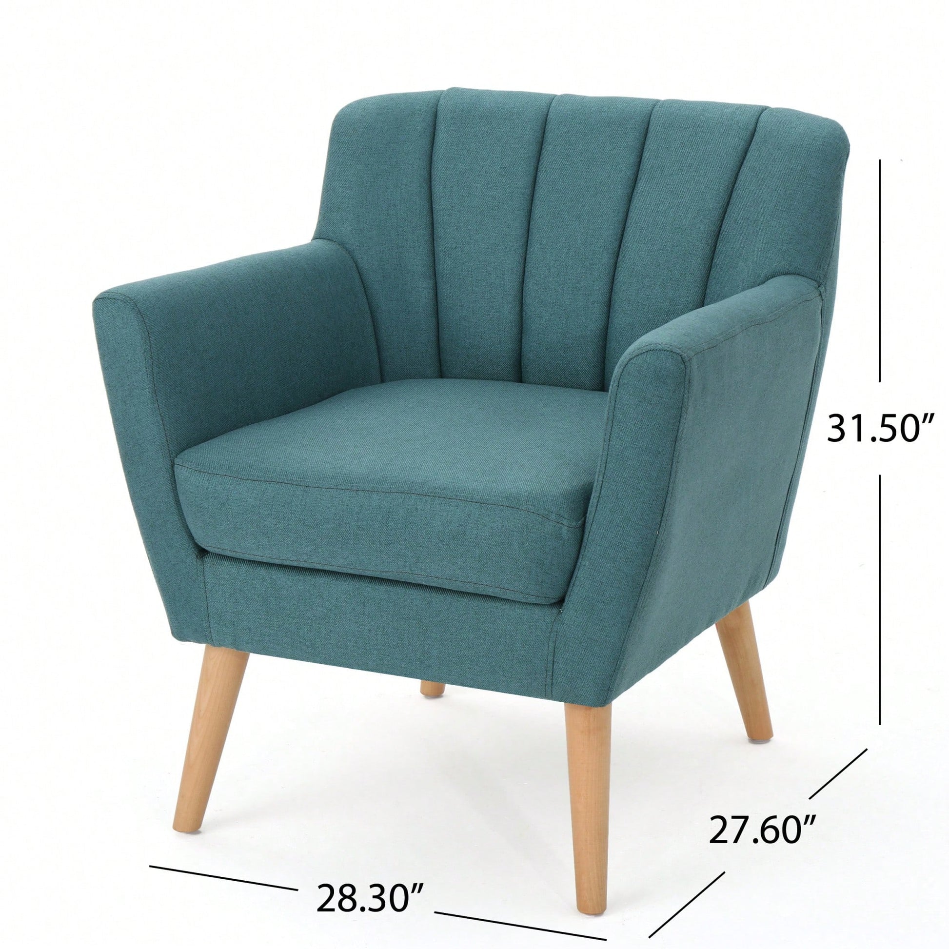 2. This club chair features a mid-century modern aesthetic, blending beautiful channel stitching with elegantly splayed birch wood legs. Its clean lines and minimalist design make it a perfect addition to any lounge area, providing both style and comfort. The channel stitching adds sophistication while maintaining a smooth appearance, and the fine grain of the birch wood enhances the chair's overall finish.
