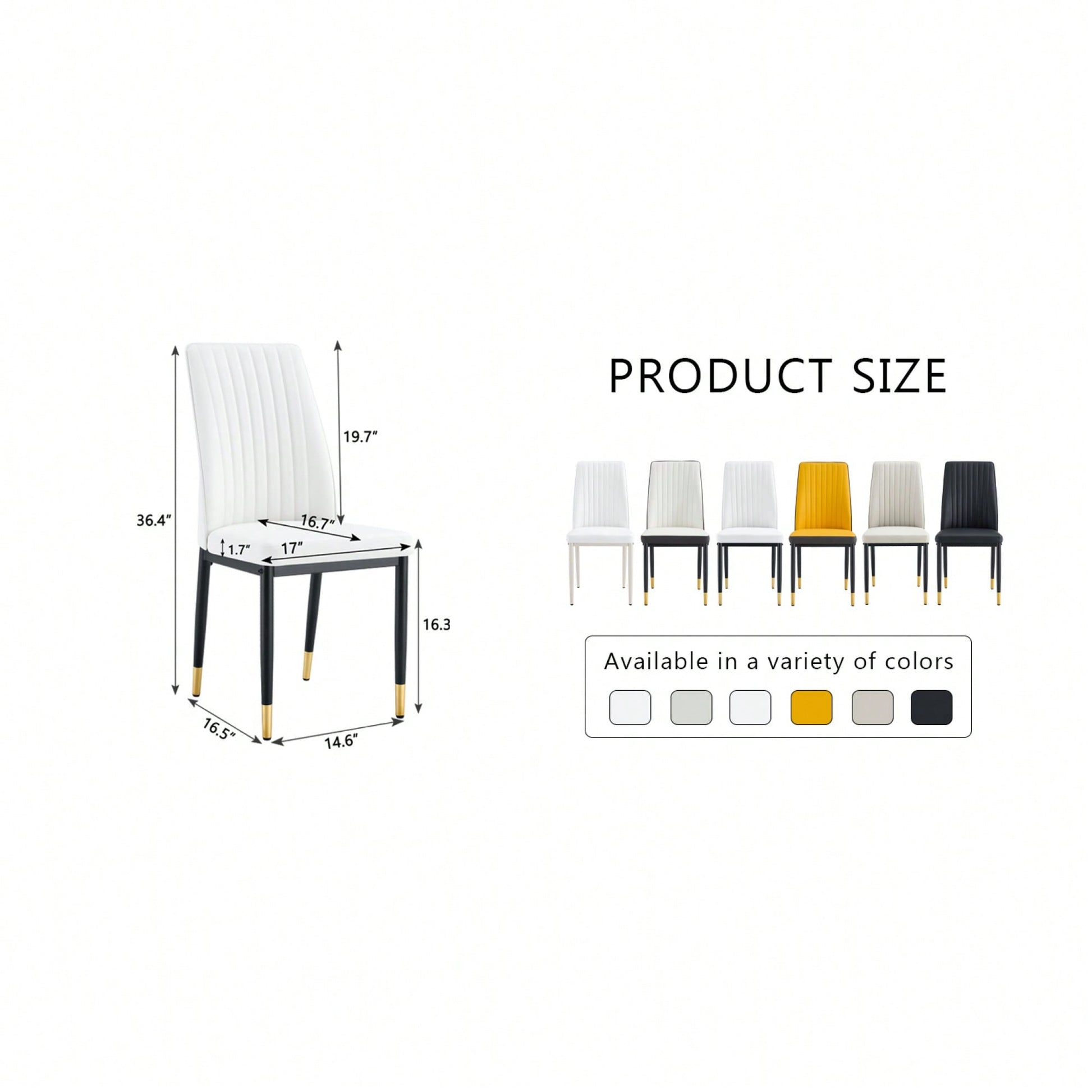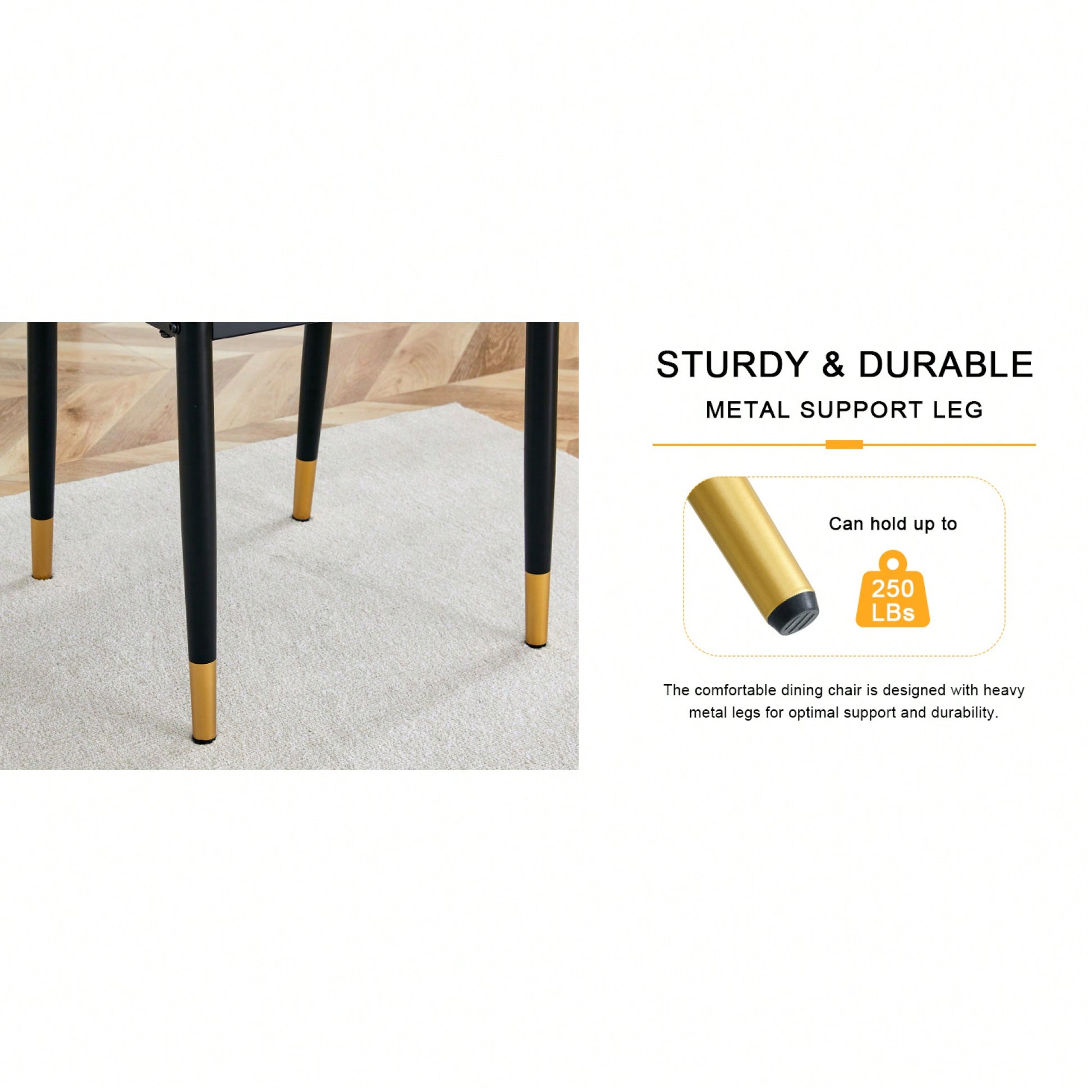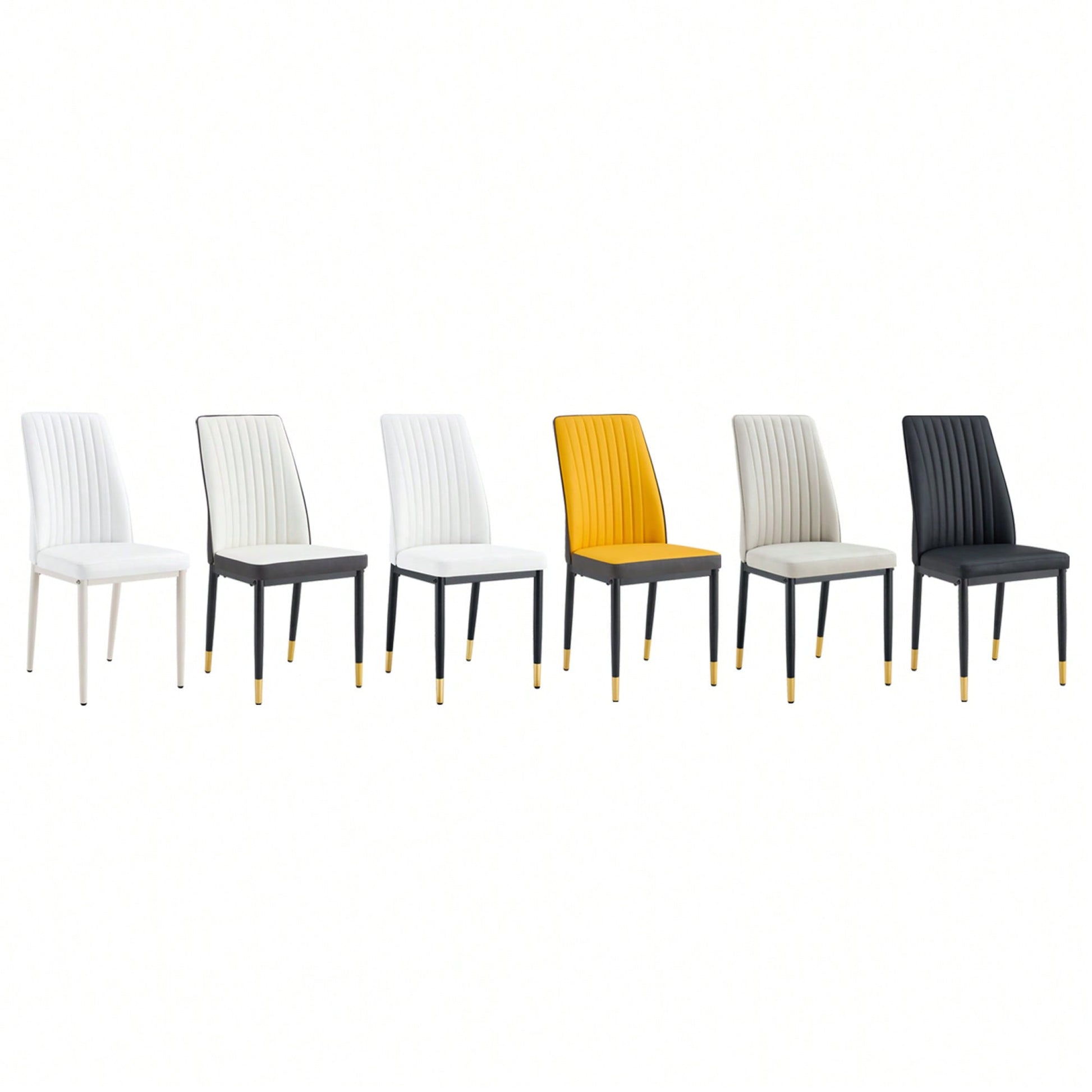These stunning dining chairs feature a contemporary design that serves as a stylish alternative to traditional seating. Upholstered in premium fiber-reinforced leather, they offer durability and comfort without the worry of cracking. The waterproof material ensures easy maintenance, making them perfect for everyday use. Ideal for various settings, these chairs will enhance the aesthetic of any dining area or living space.