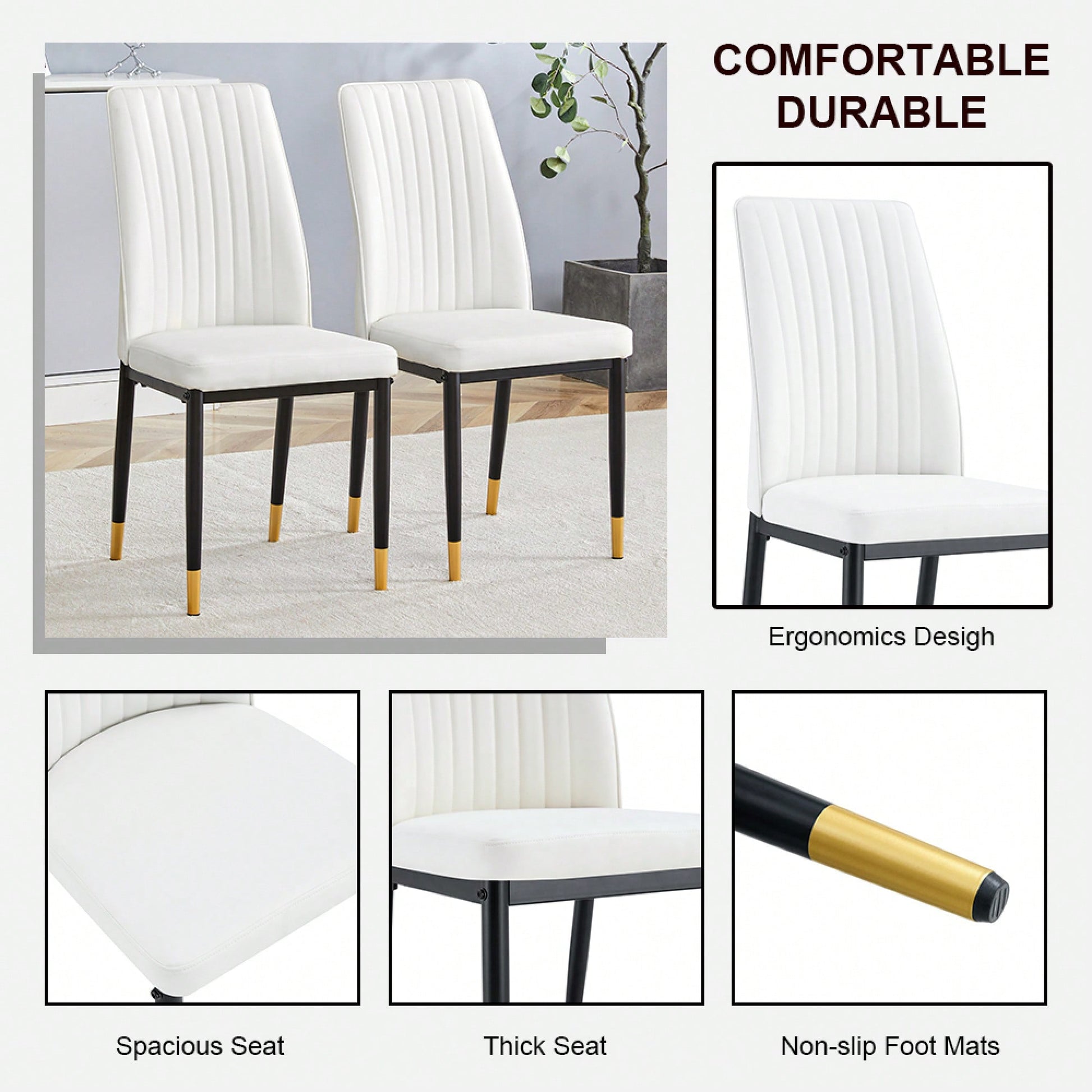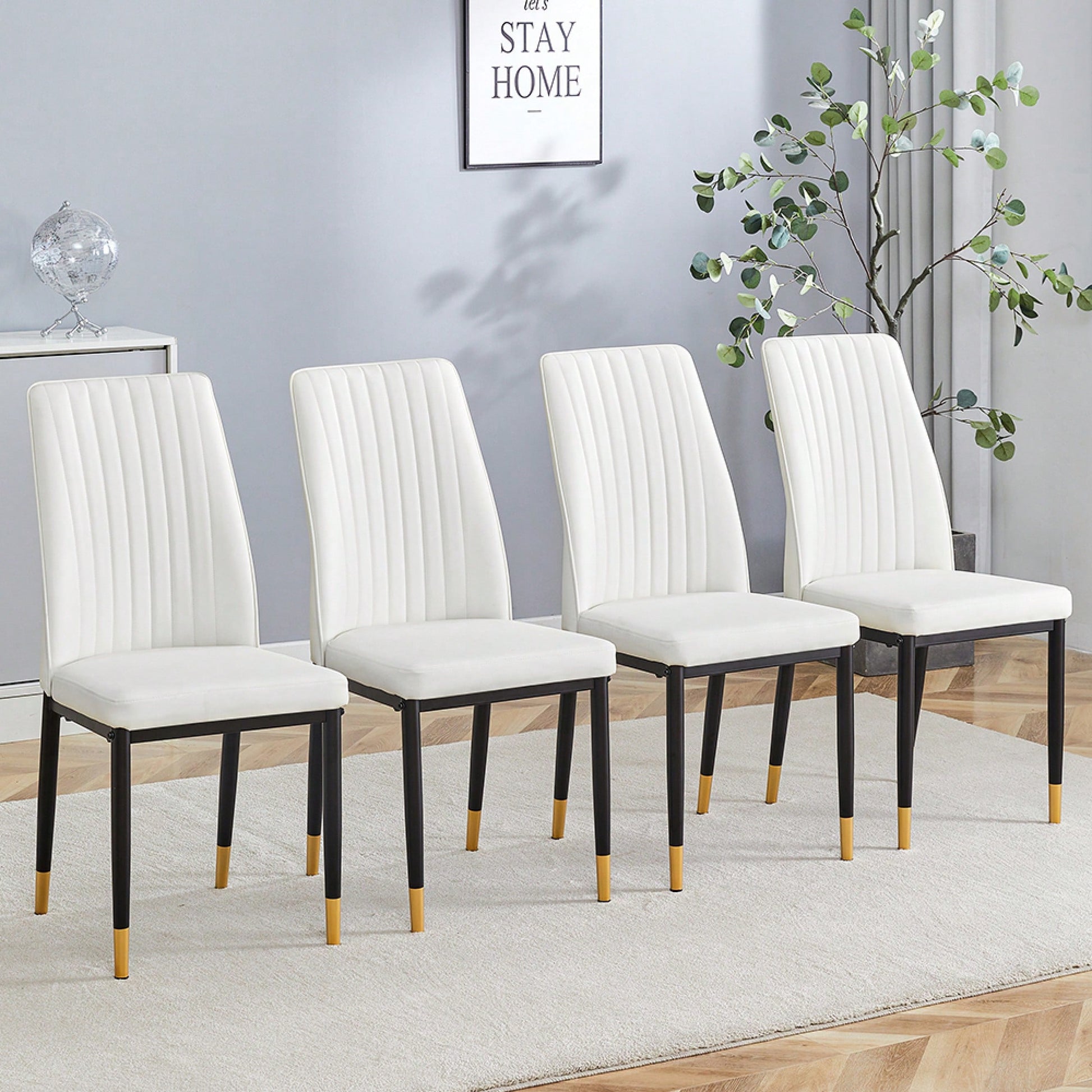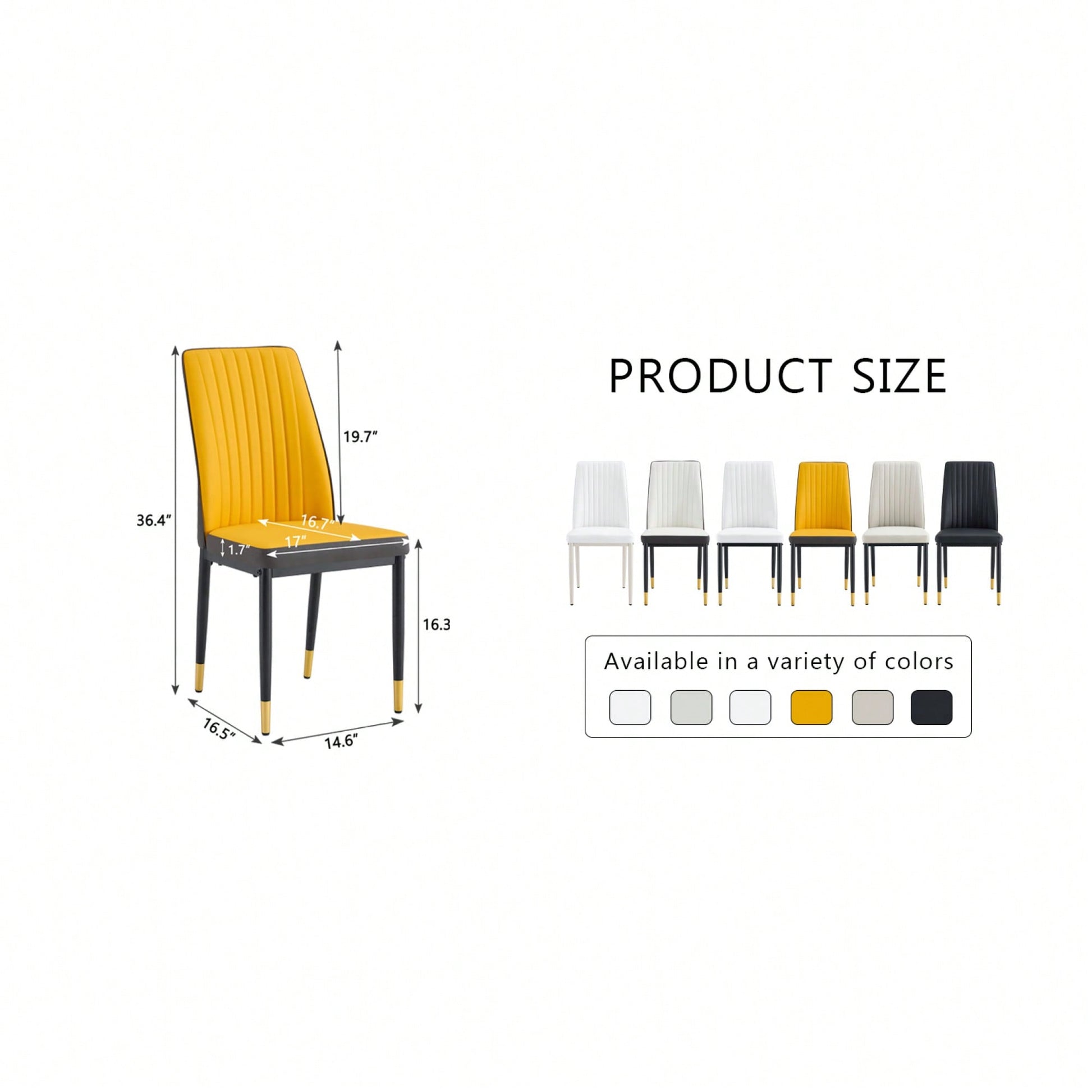 These stunning dining chairs feature a contemporary design that serves as a stylish alternative to traditional seating. Upholstered in premium fiber-reinforced leather, they offer durability and comfort without the worry of cracking. The waterproof material ensures easy maintenance, making them perfect for everyday use. Ideal for various settings, these chairs will enhance the aesthetic of any dining area or living space.