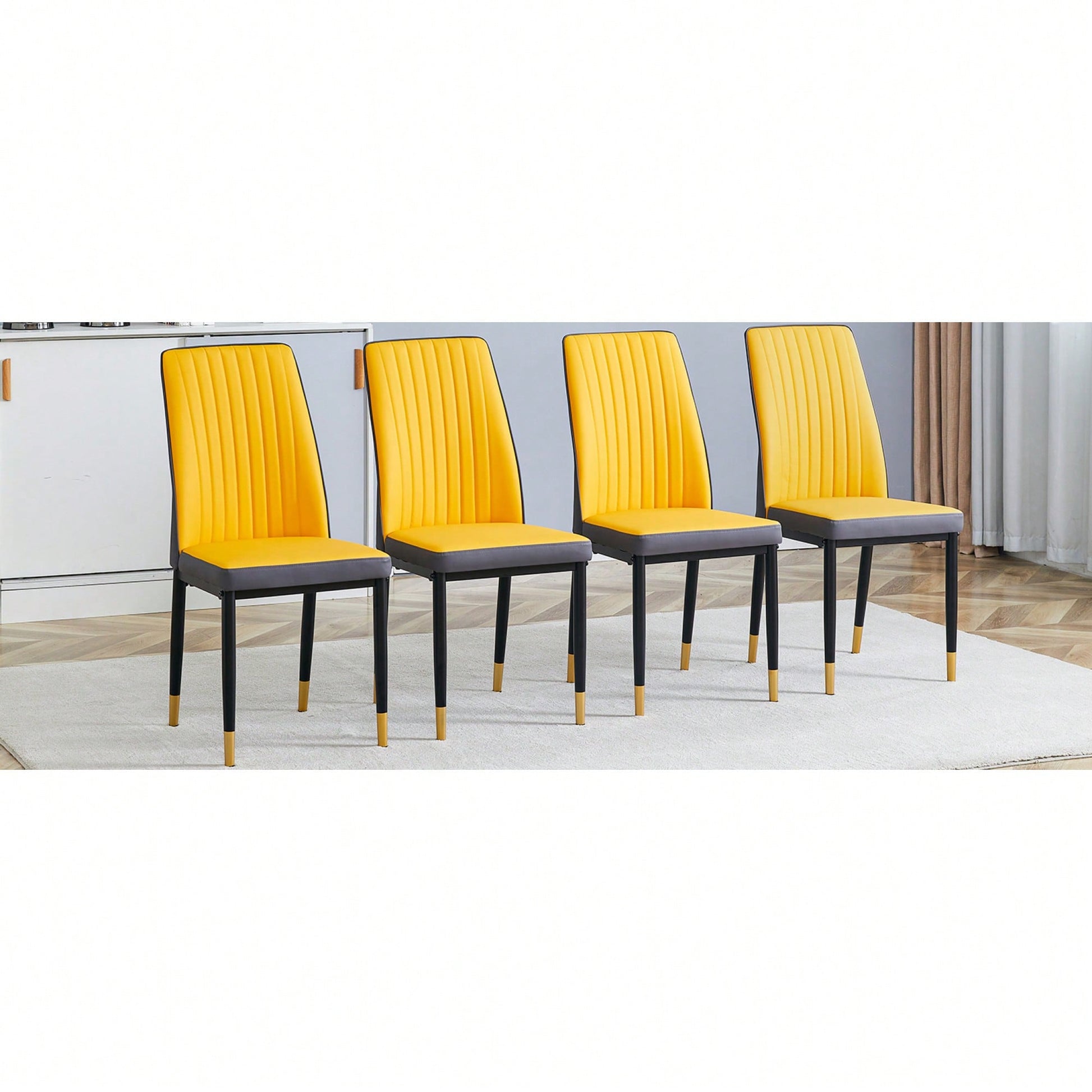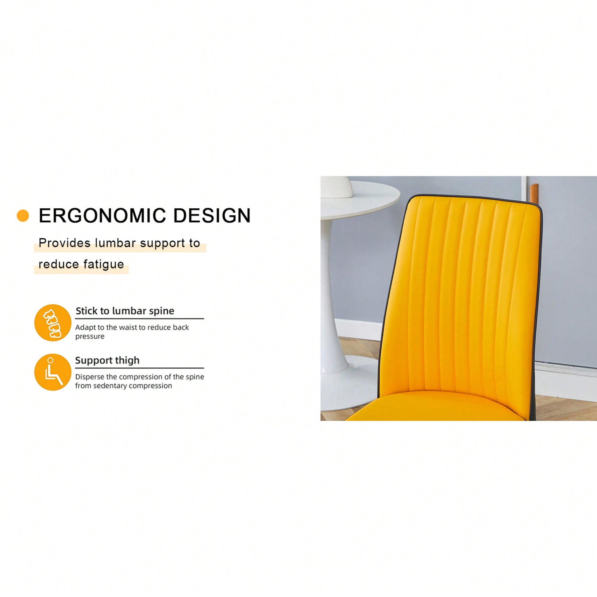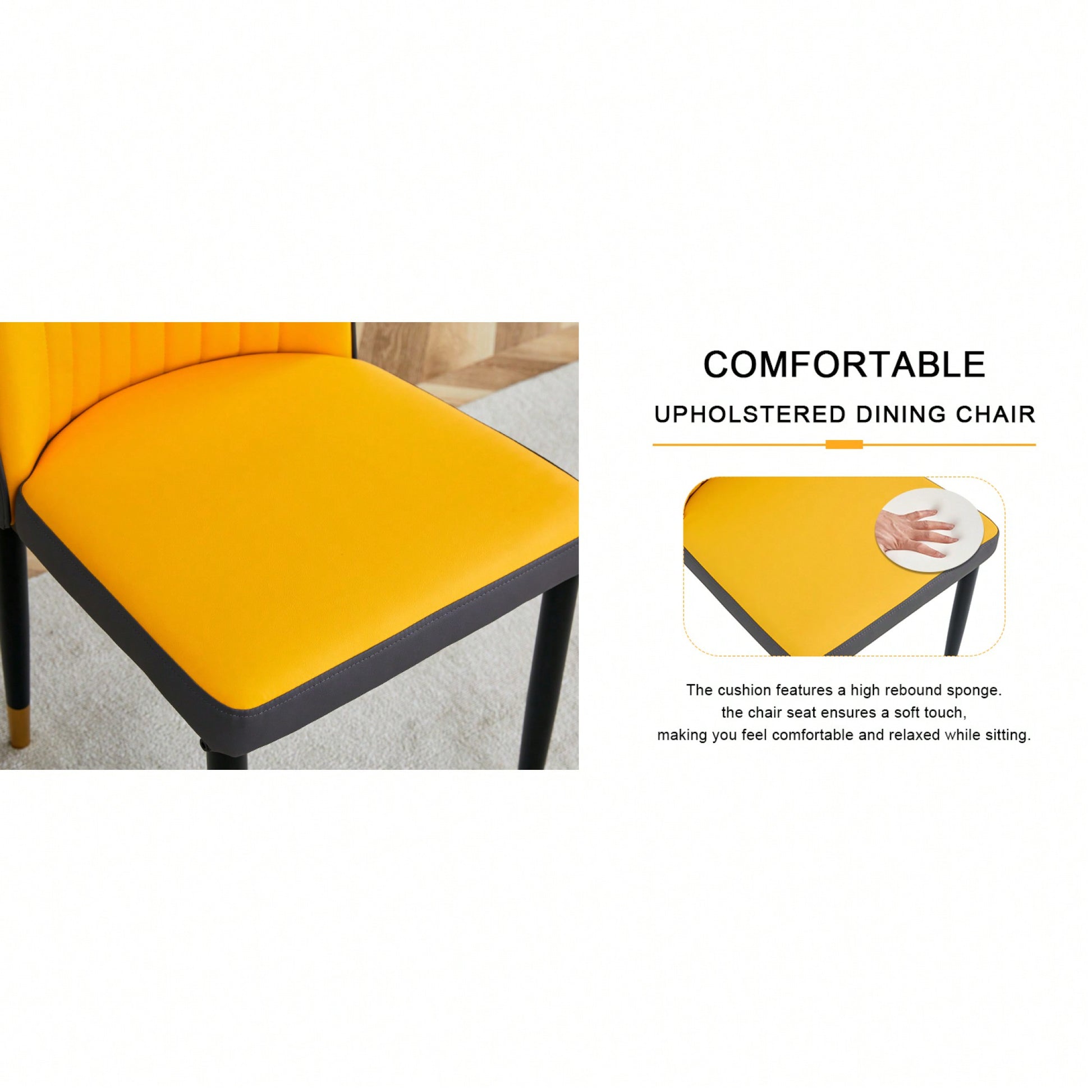 Stylish Orange High Back Dining Chair Set Of 4 PU Material Sturdy Legs For Kitchen Living Room