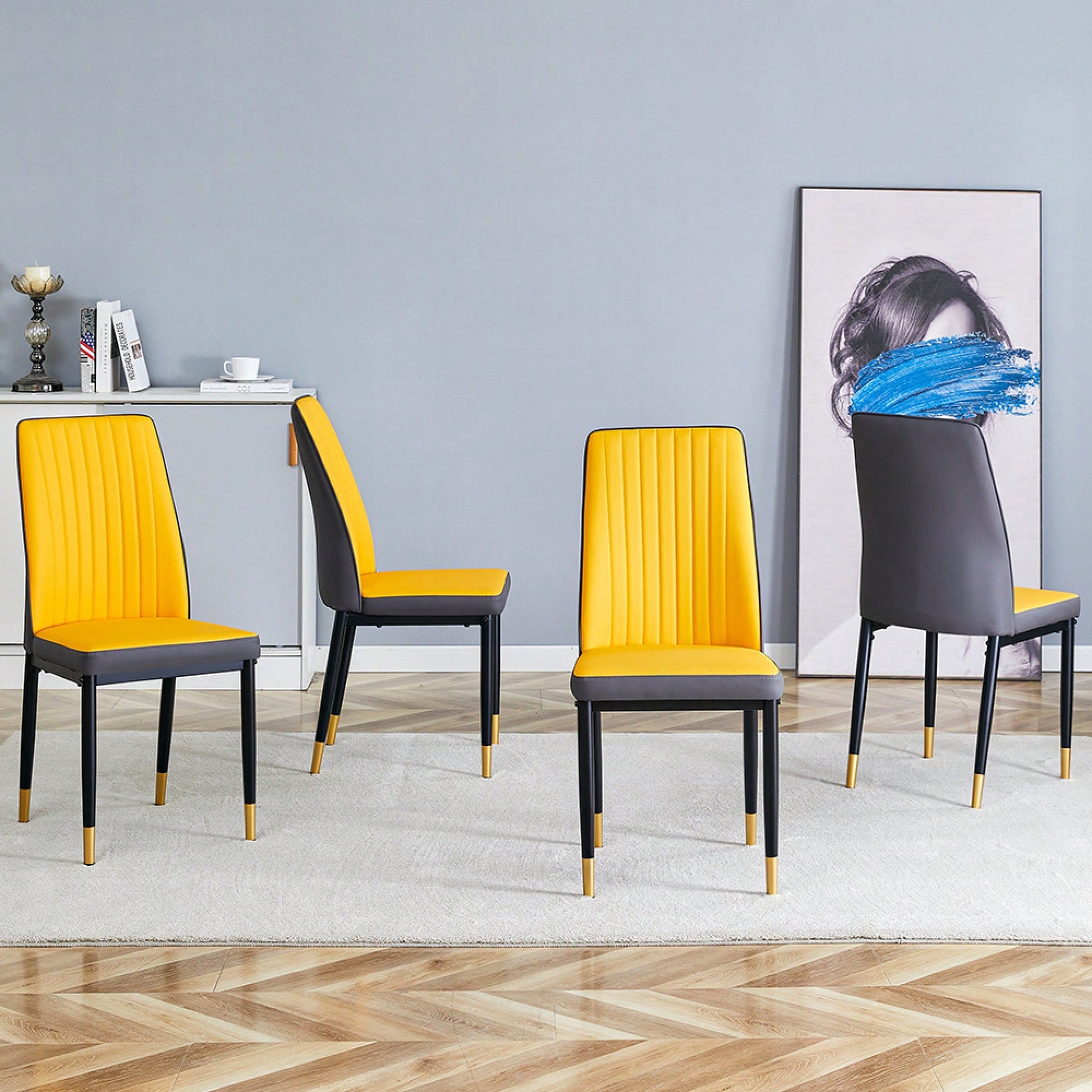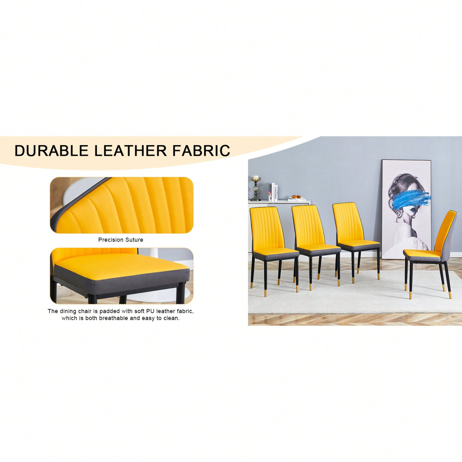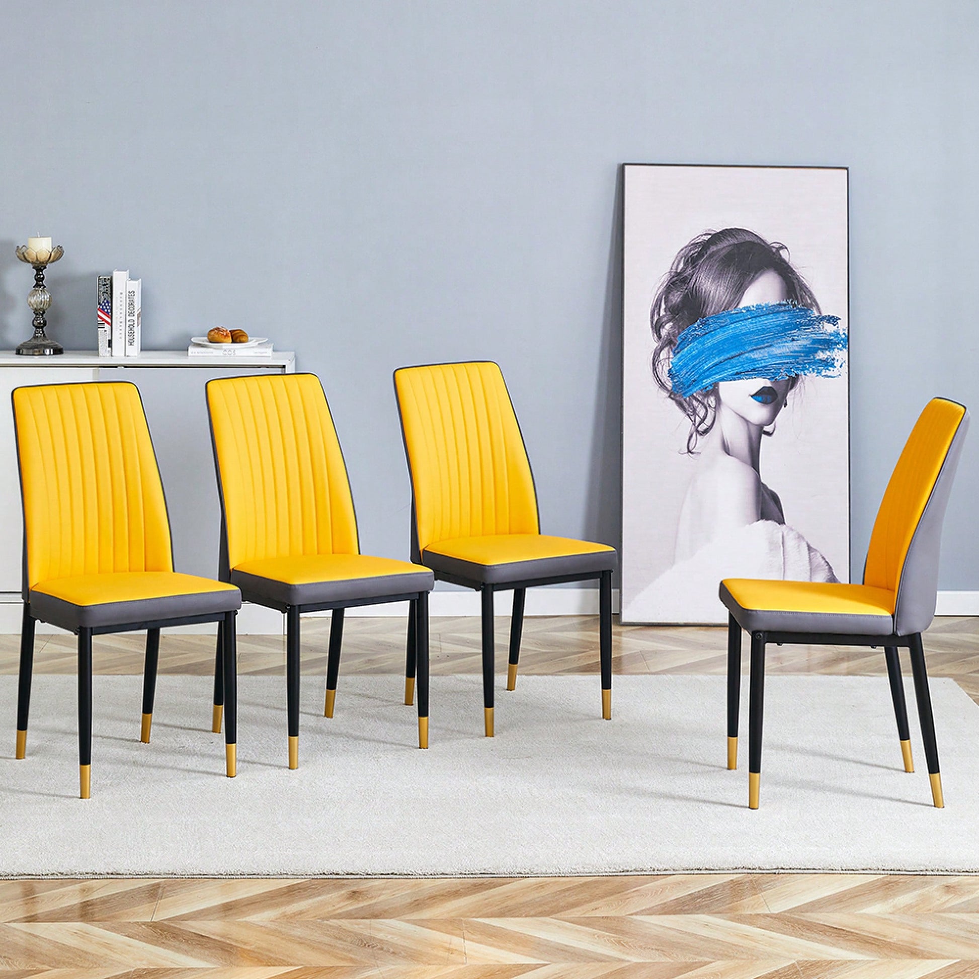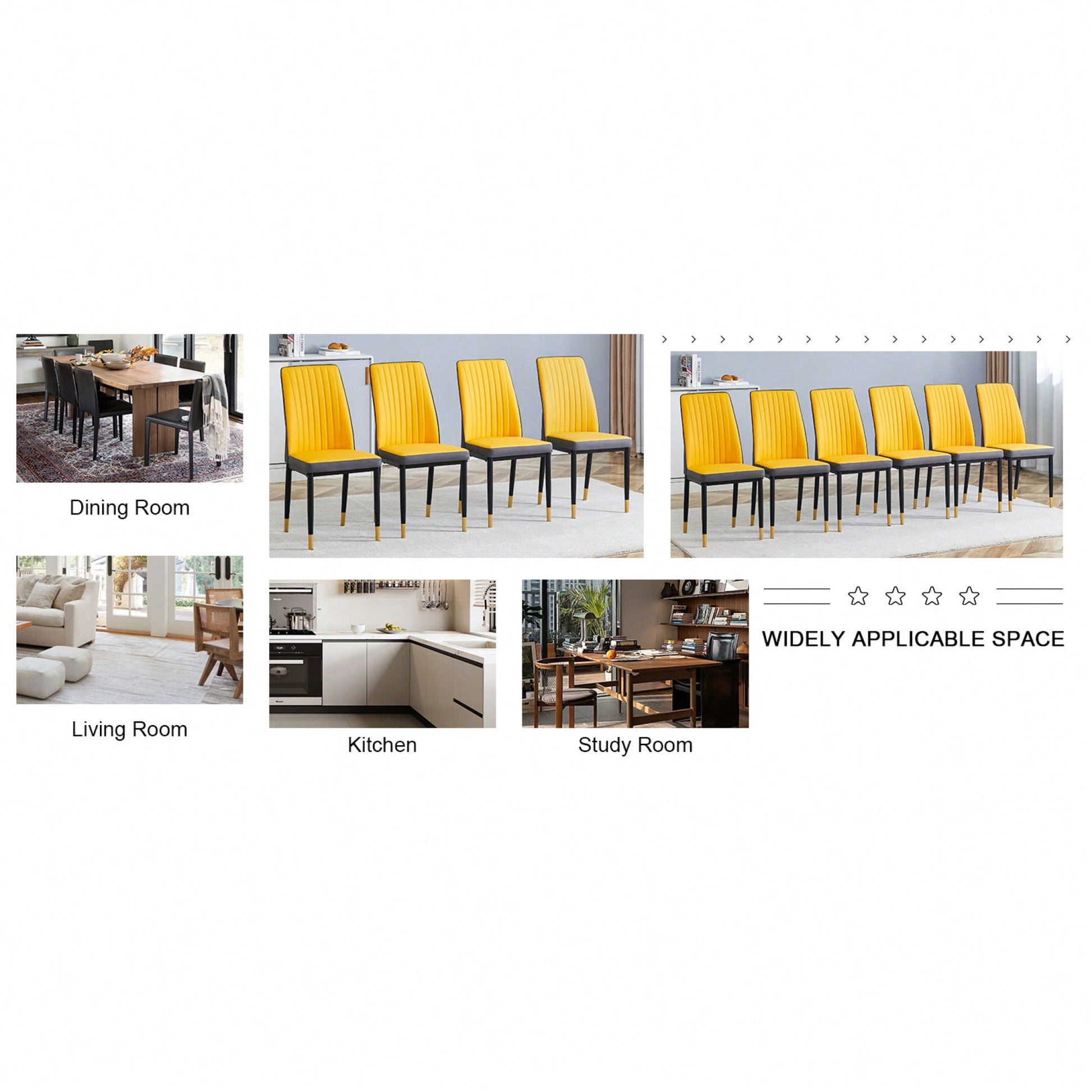 Stylish Orange High Back Dining Chair Set Of 4 PU Material Sturdy Legs For Kitchen Living Room