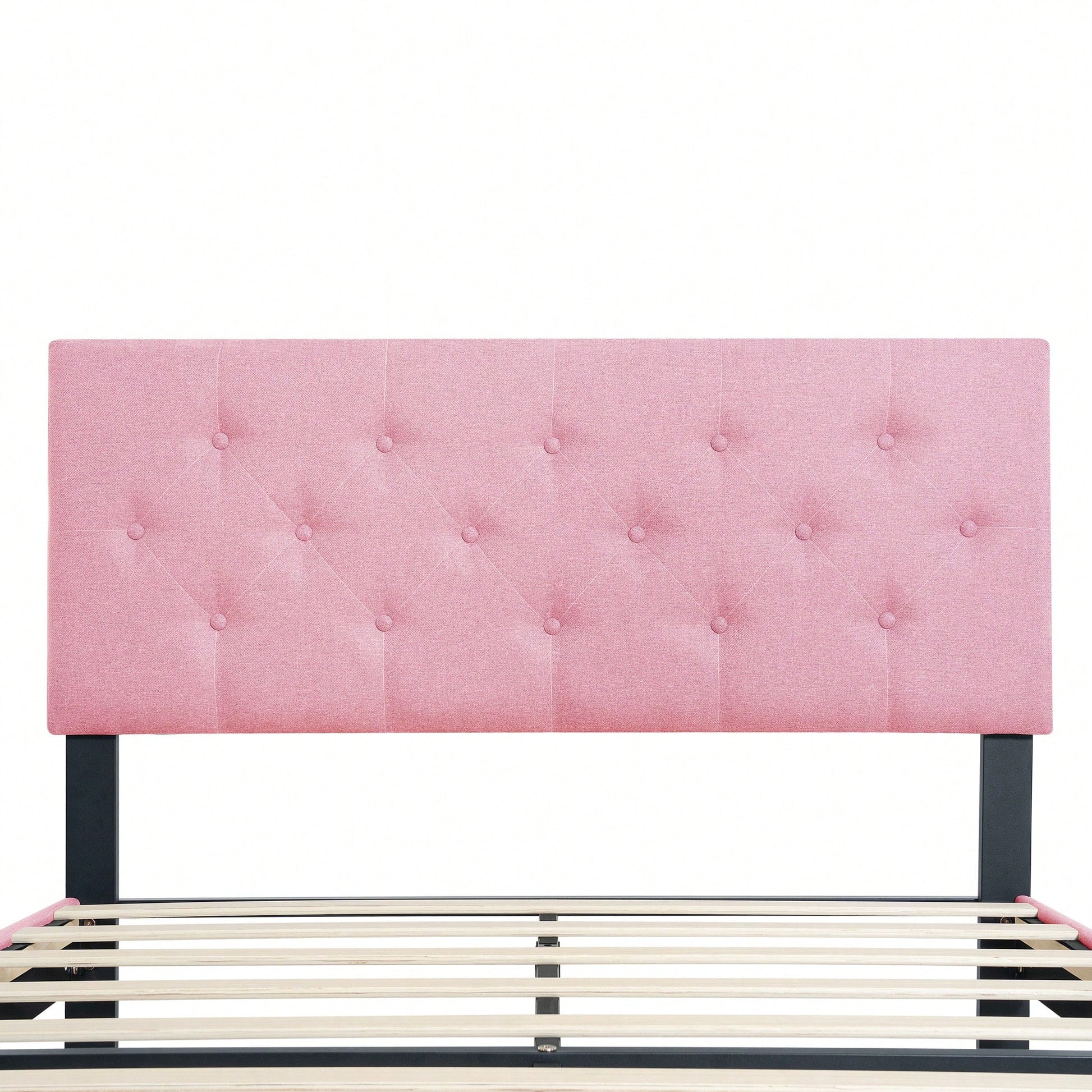 Chic Pink Queen Upholstered Platform Bed Frame with Button Tufted Headboard No Box Spring Needed Easy Assembly