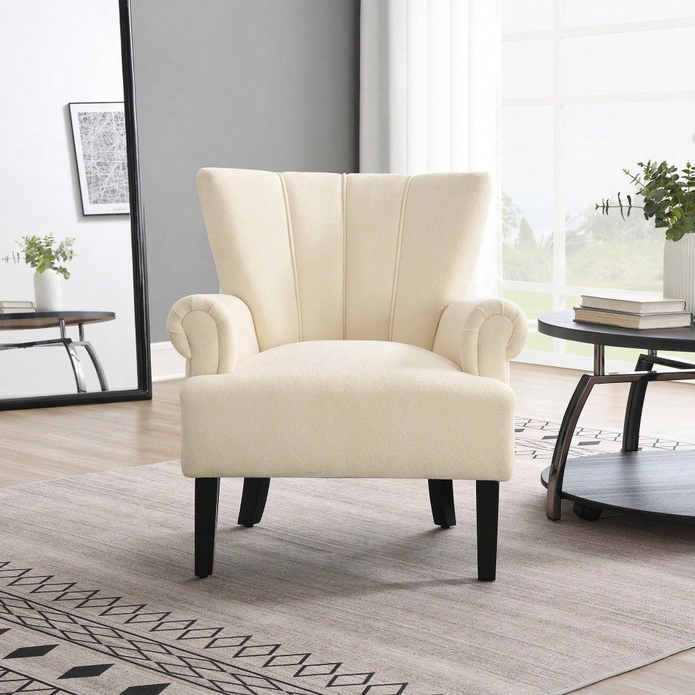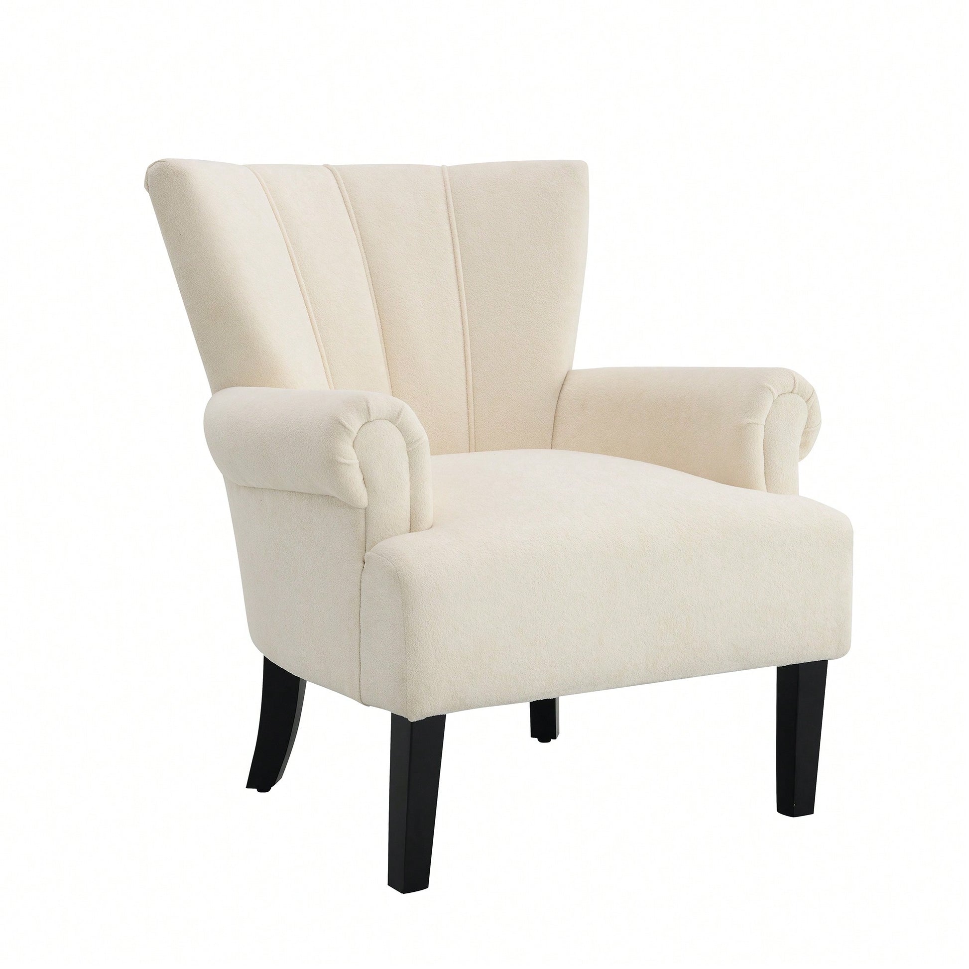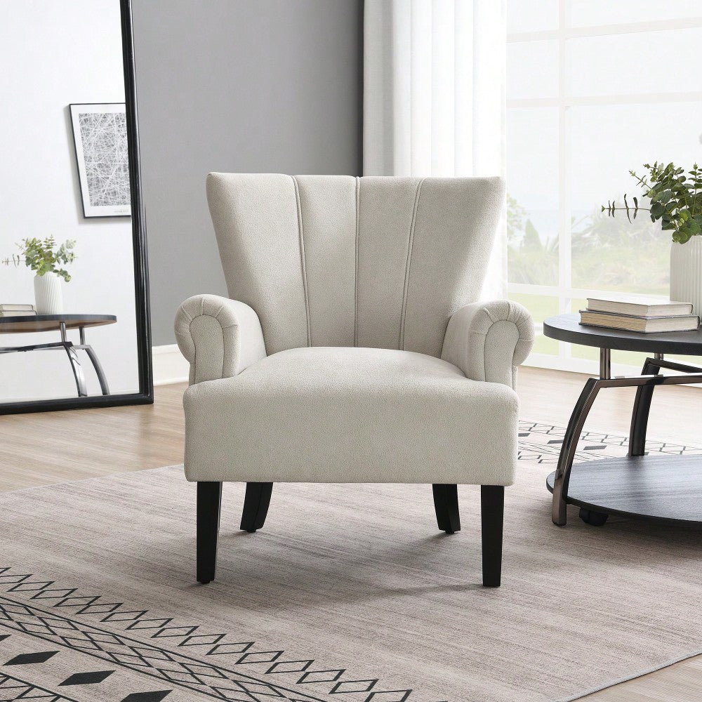 Stylish Polyester Accent Armchair For Living Room And Bedroom – Channel Back Club Chair With Soft Fabric And Wooden Legs In Beige