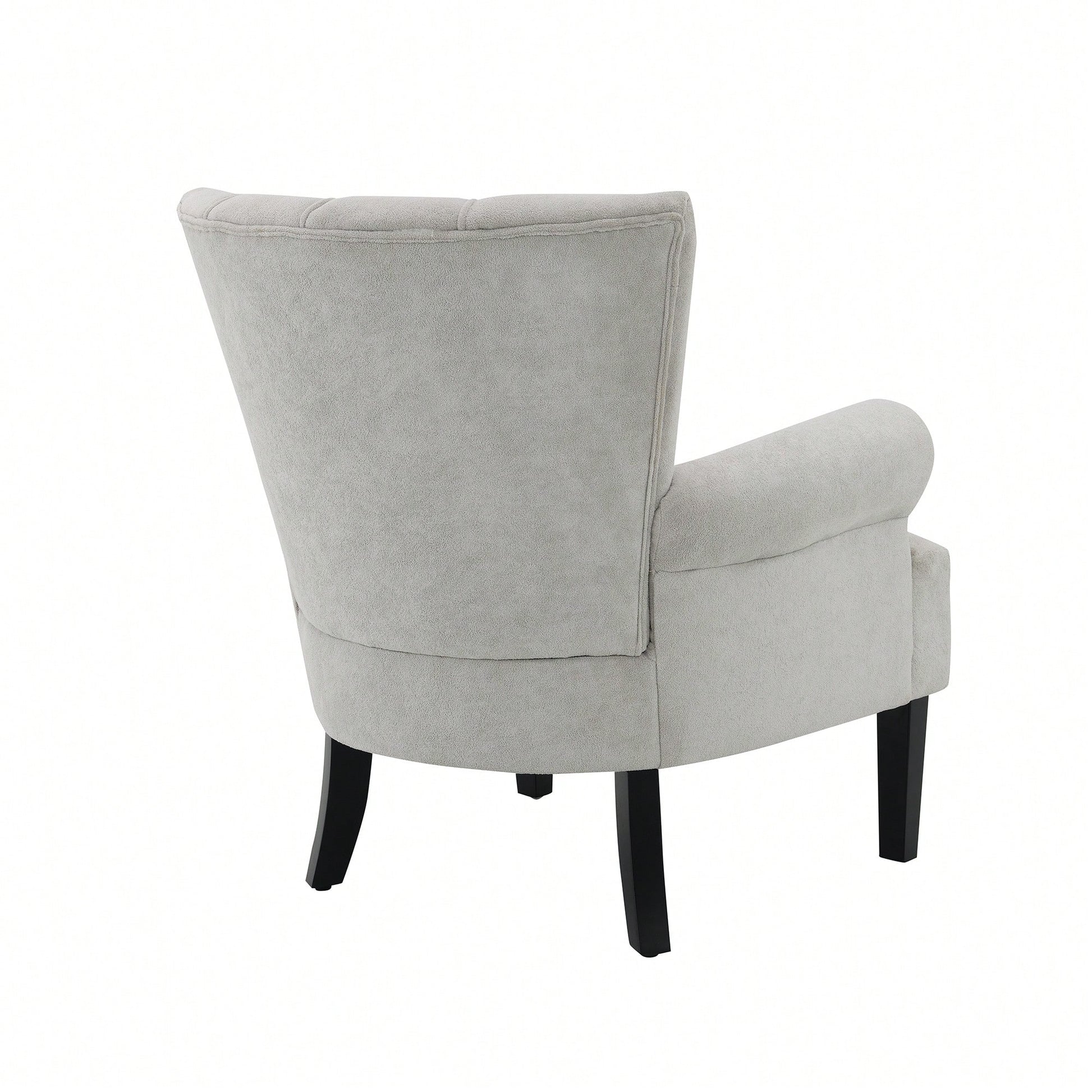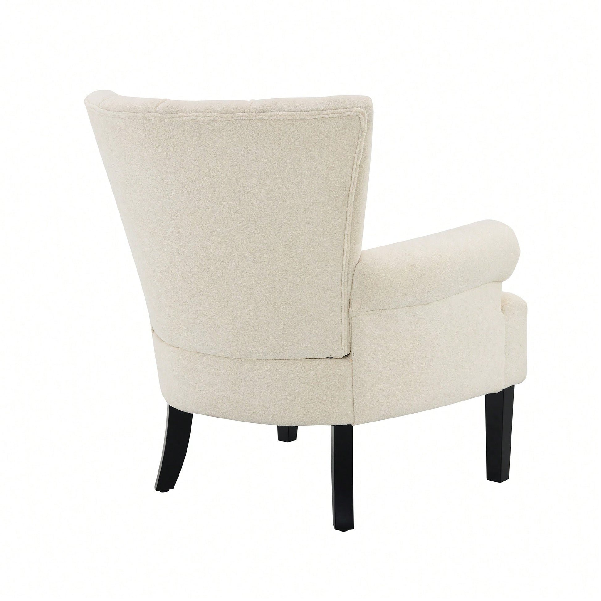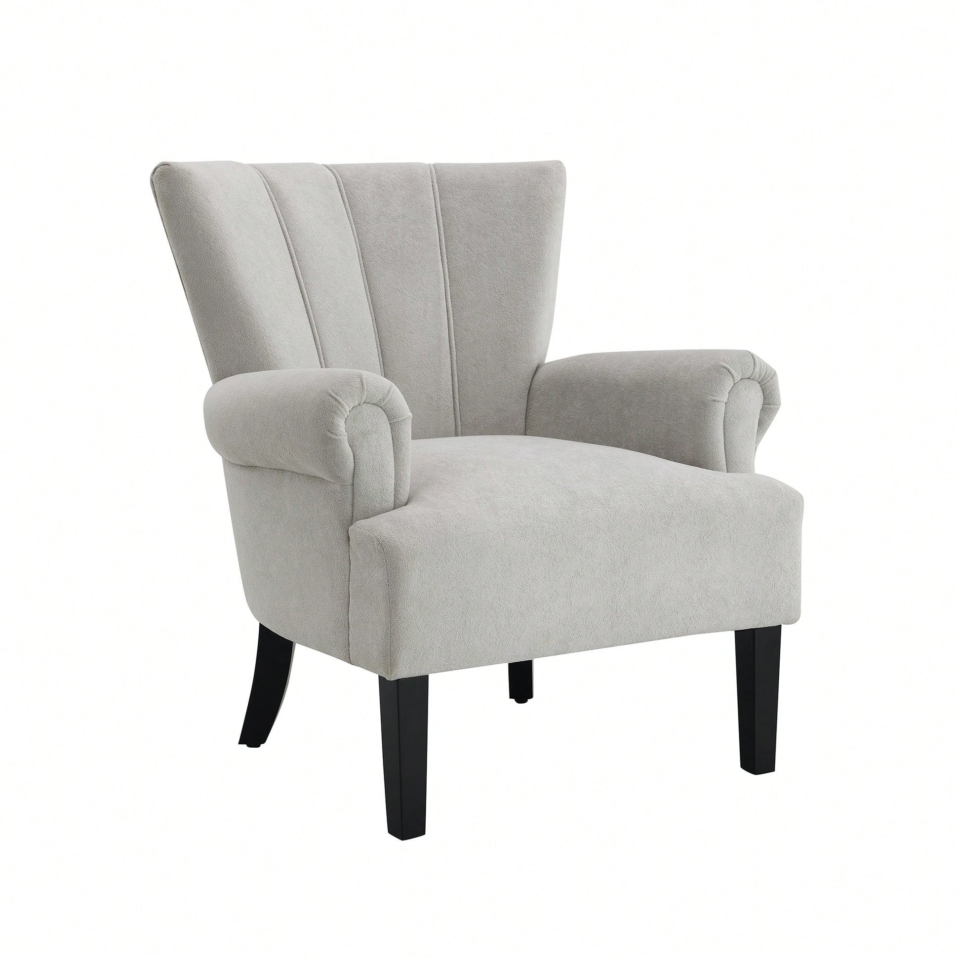 Stylish Polyester Accent Armchair For Living Room And Bedroom – Channel Back Club Chair With Soft Fabric And Wooden Legs In Beige