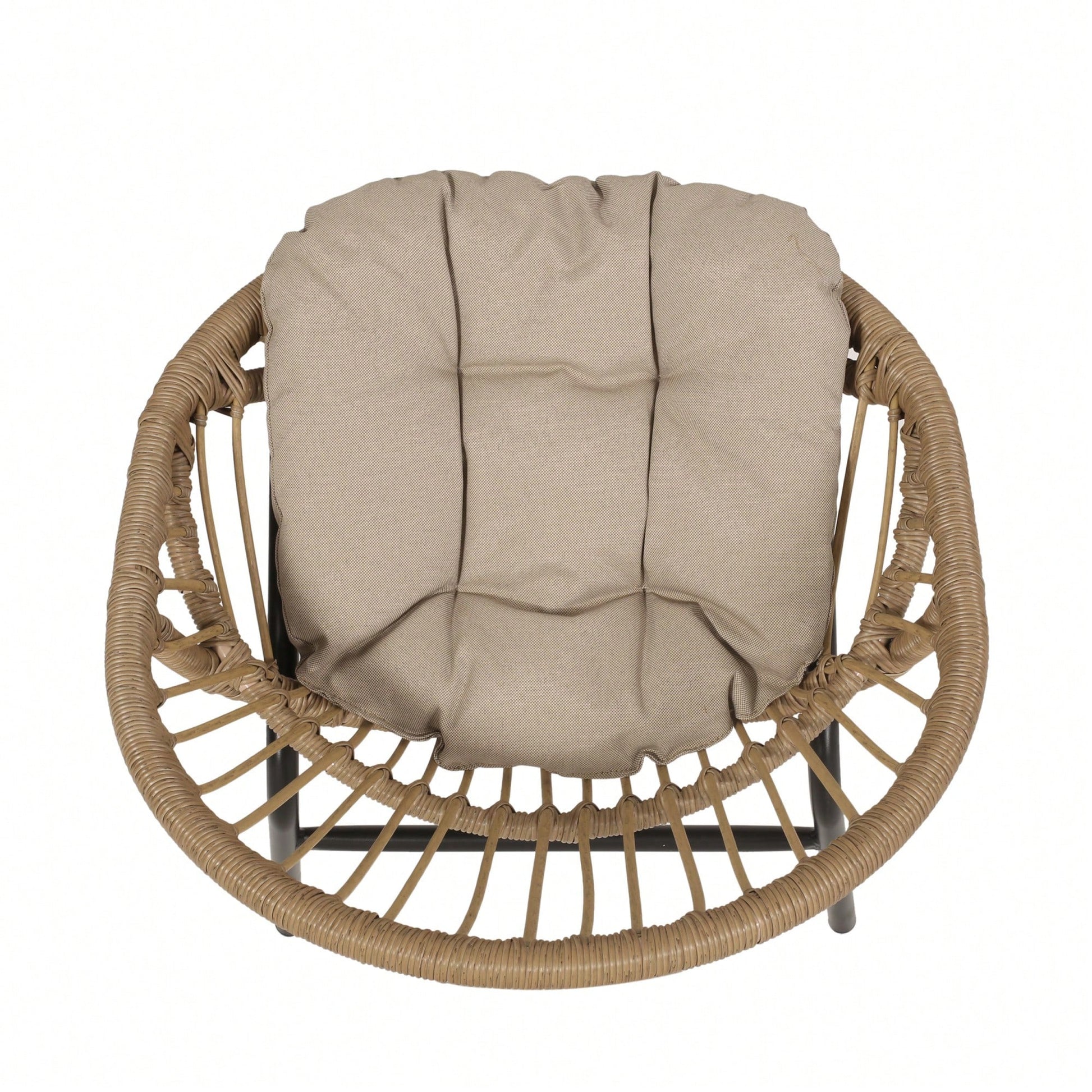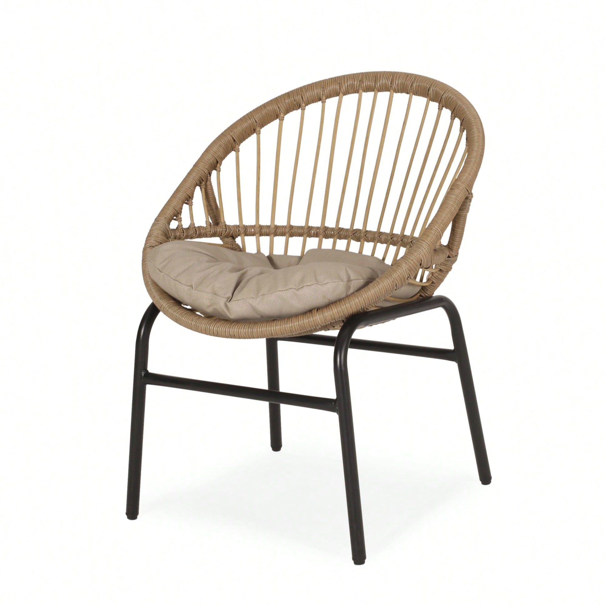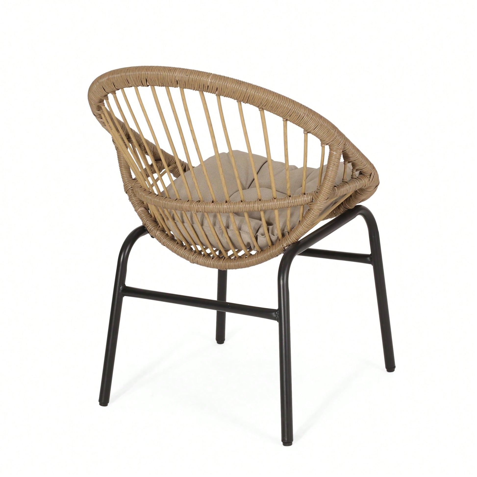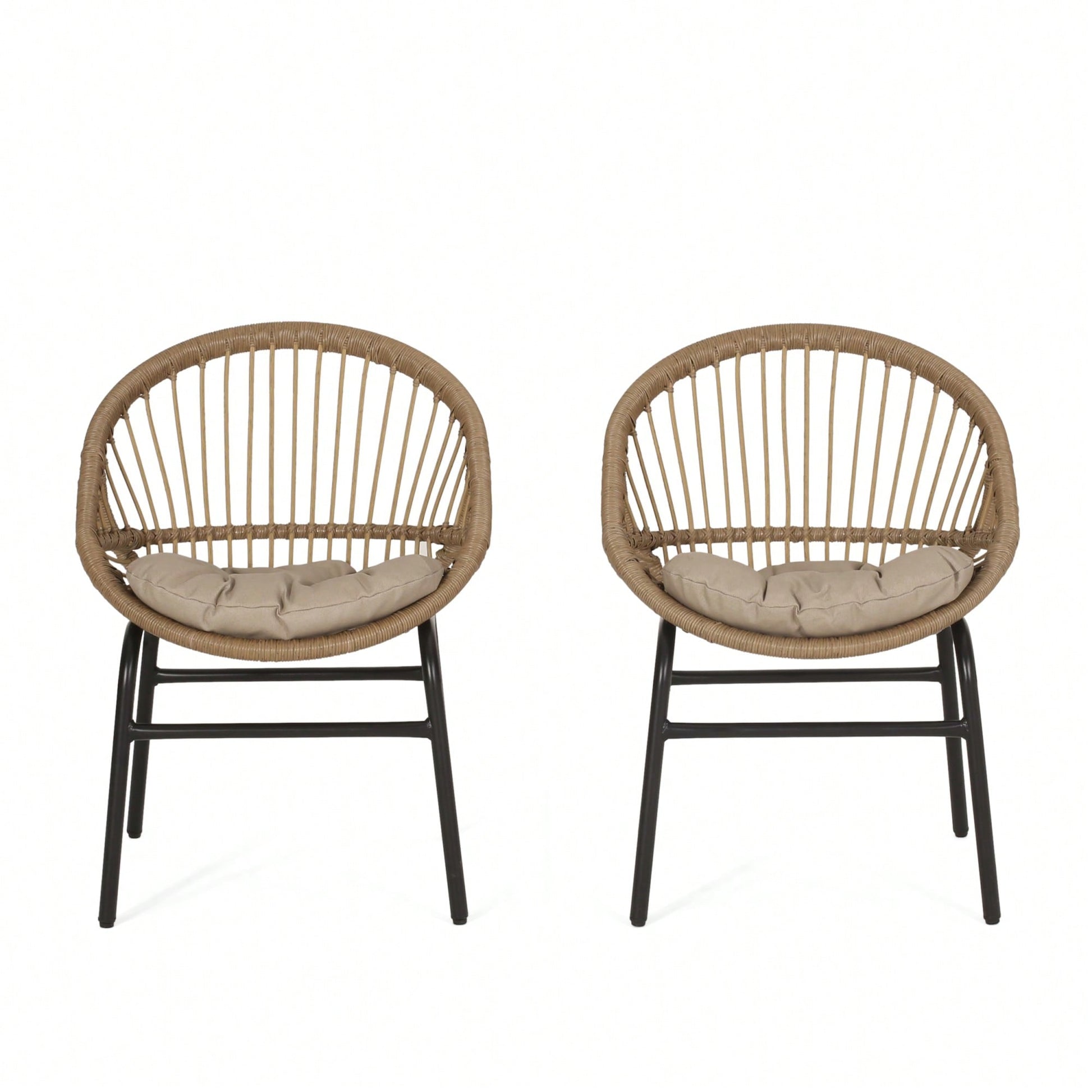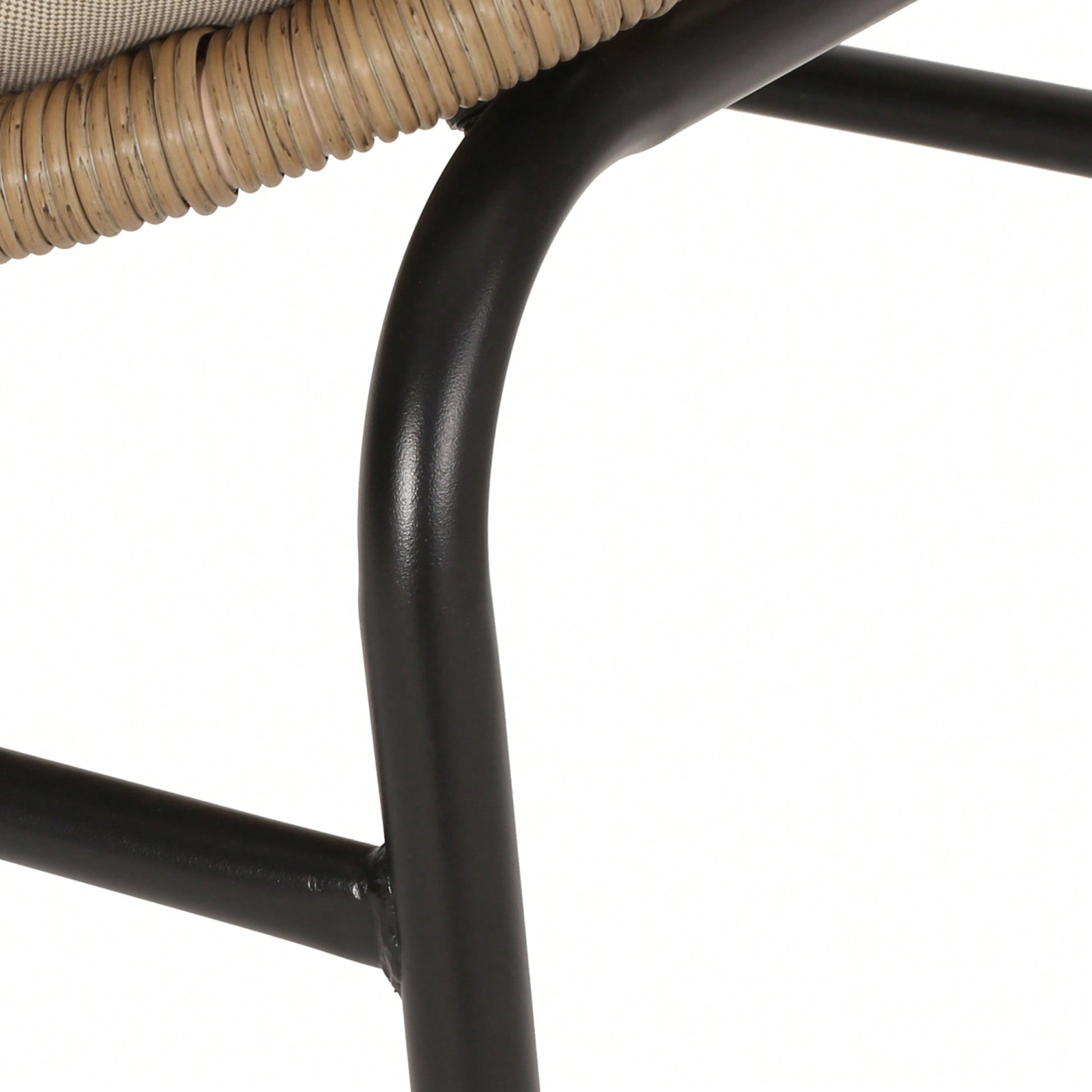 This set of two chairs brings a carefree and unconventional touch to your patio space. The beautifully textured wicker wrap design and gracefully curved backrests provide incredible stability and style. Crafted from durable polyethylene rattan, these chairs blend seamlessly with your outdoor decor while ensuring long-lasting use. The water-resistant cushions are designed for easy maintenance, making spills a breeze to clean. Constructed with a sturdy powder-coated iron frame, these chairs are built to withstand heavy use, though it is recommended to cover or store them indoors during inclement weather.