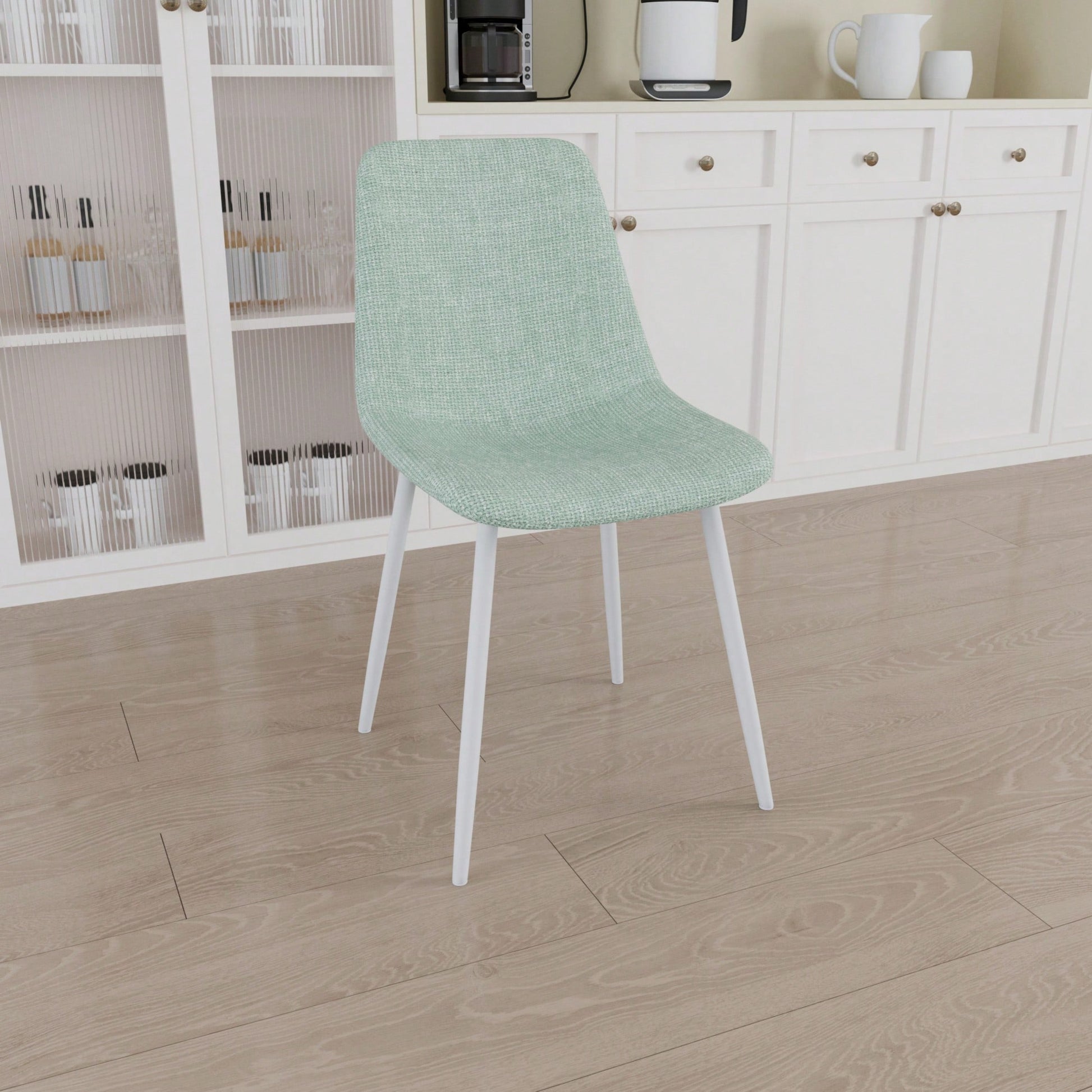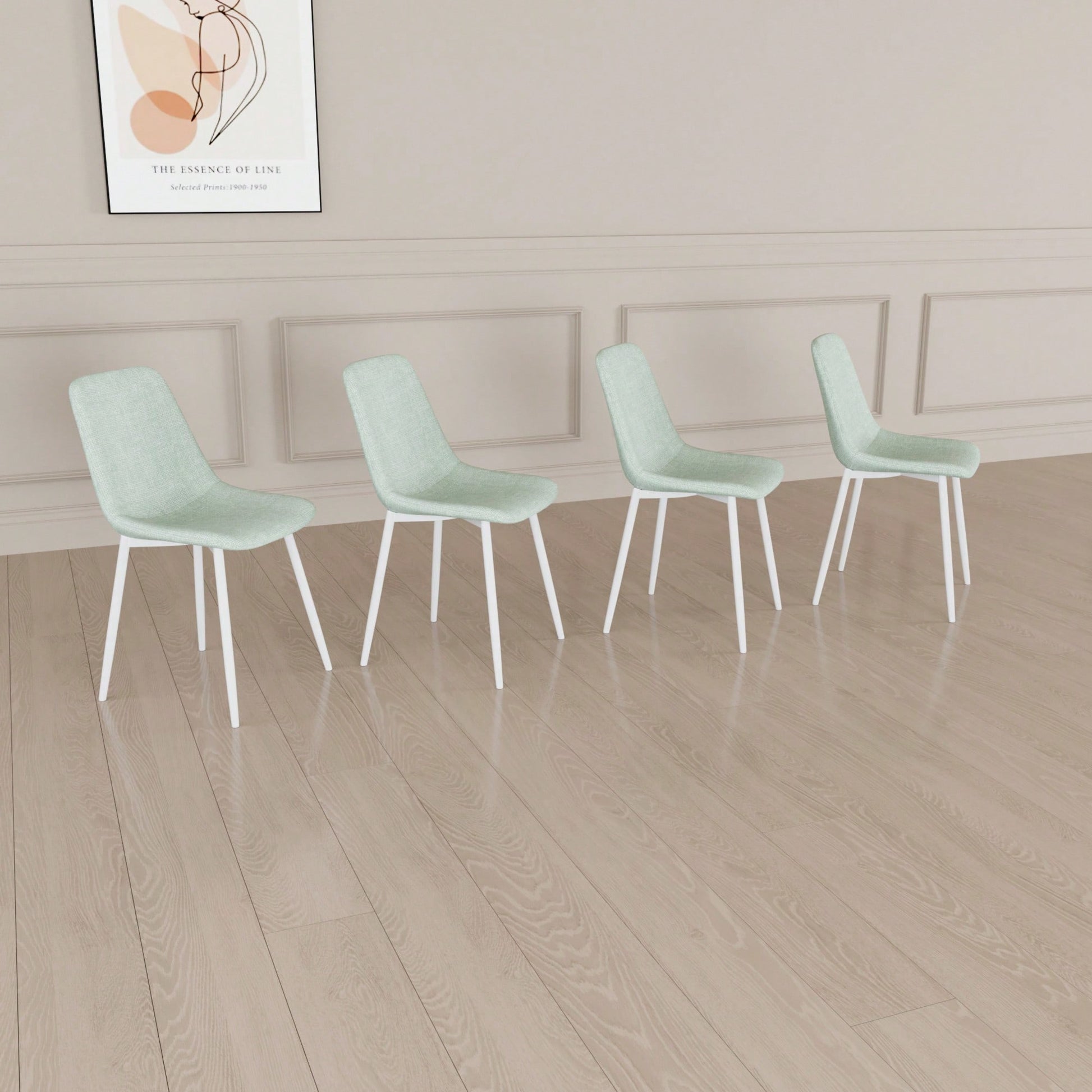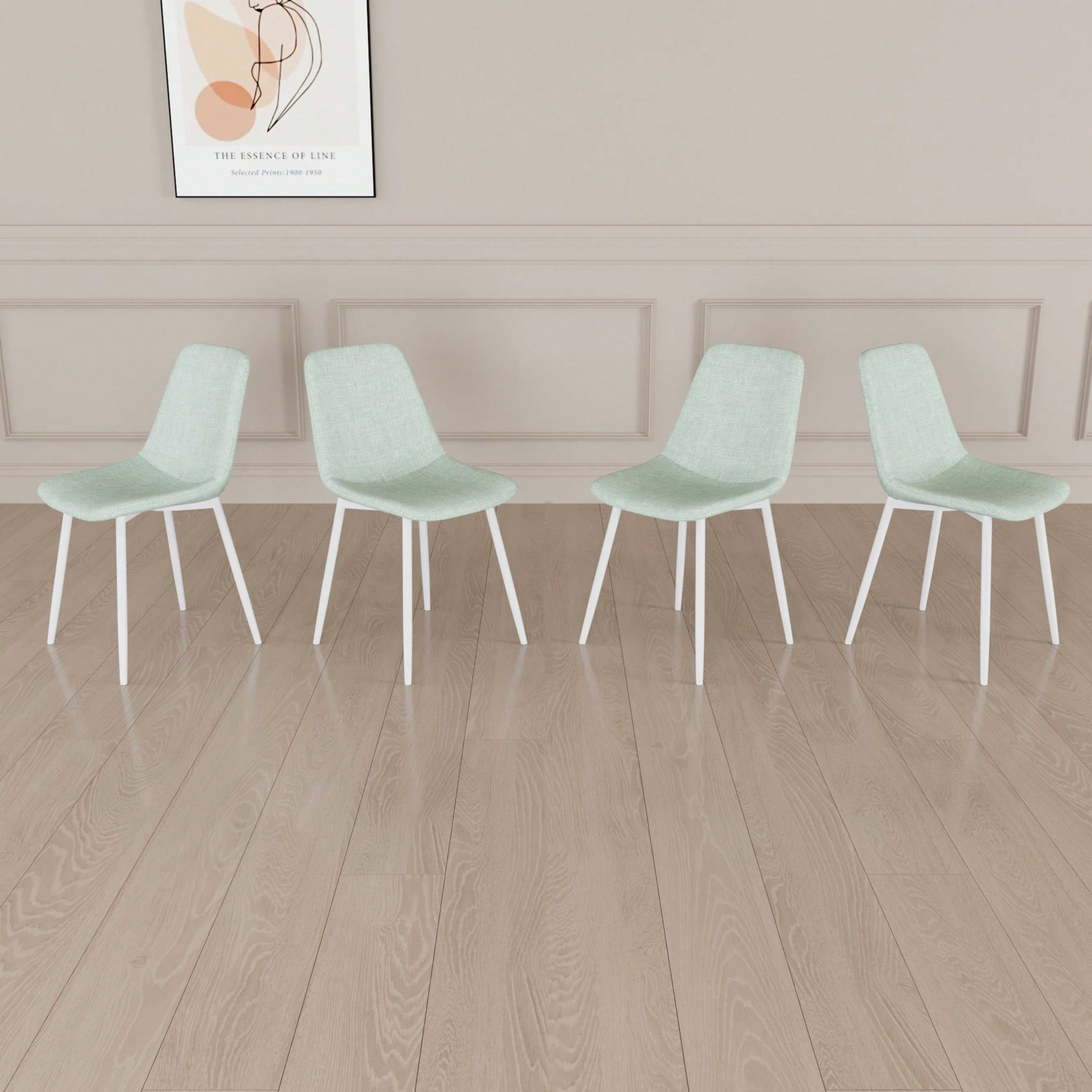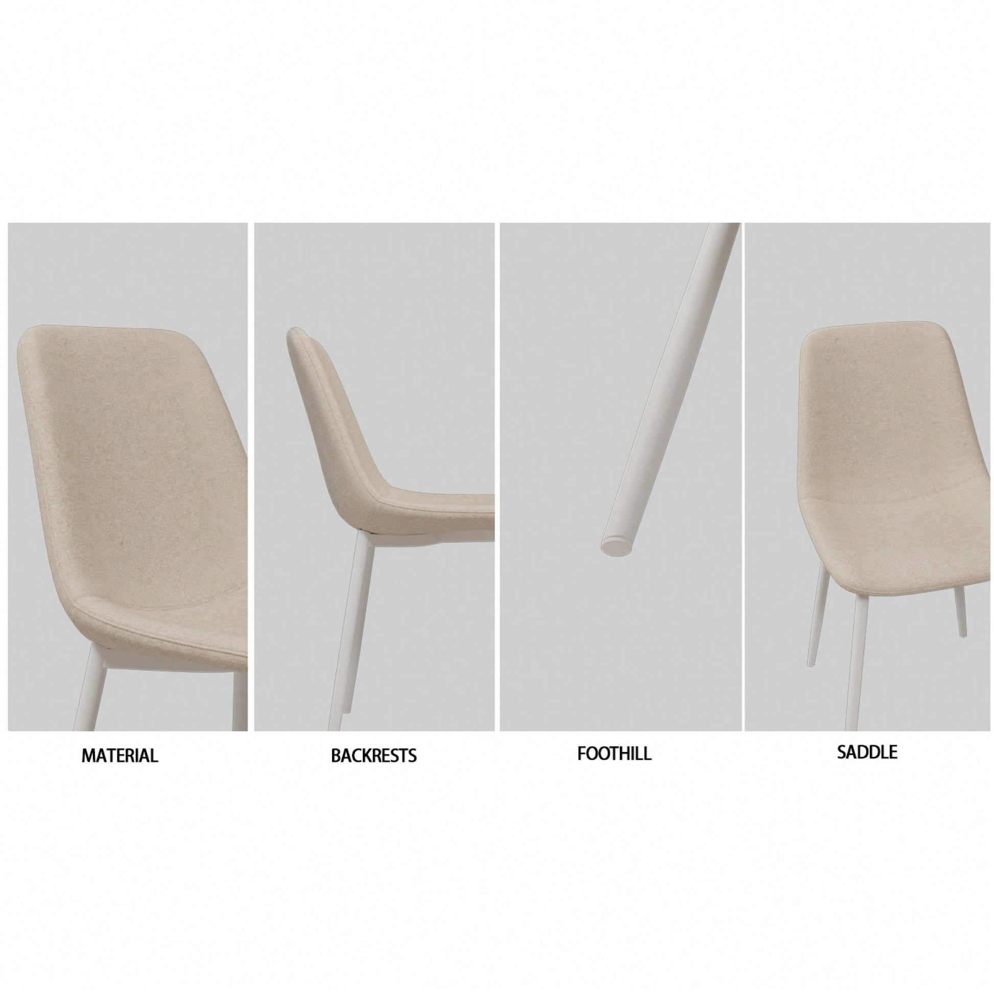 Stylish Set Of 4 Modern Linen Padded Dining Chairs With Sturdy White Metal Legs - Beige Fabric Seating For Kitchen And Dining Room