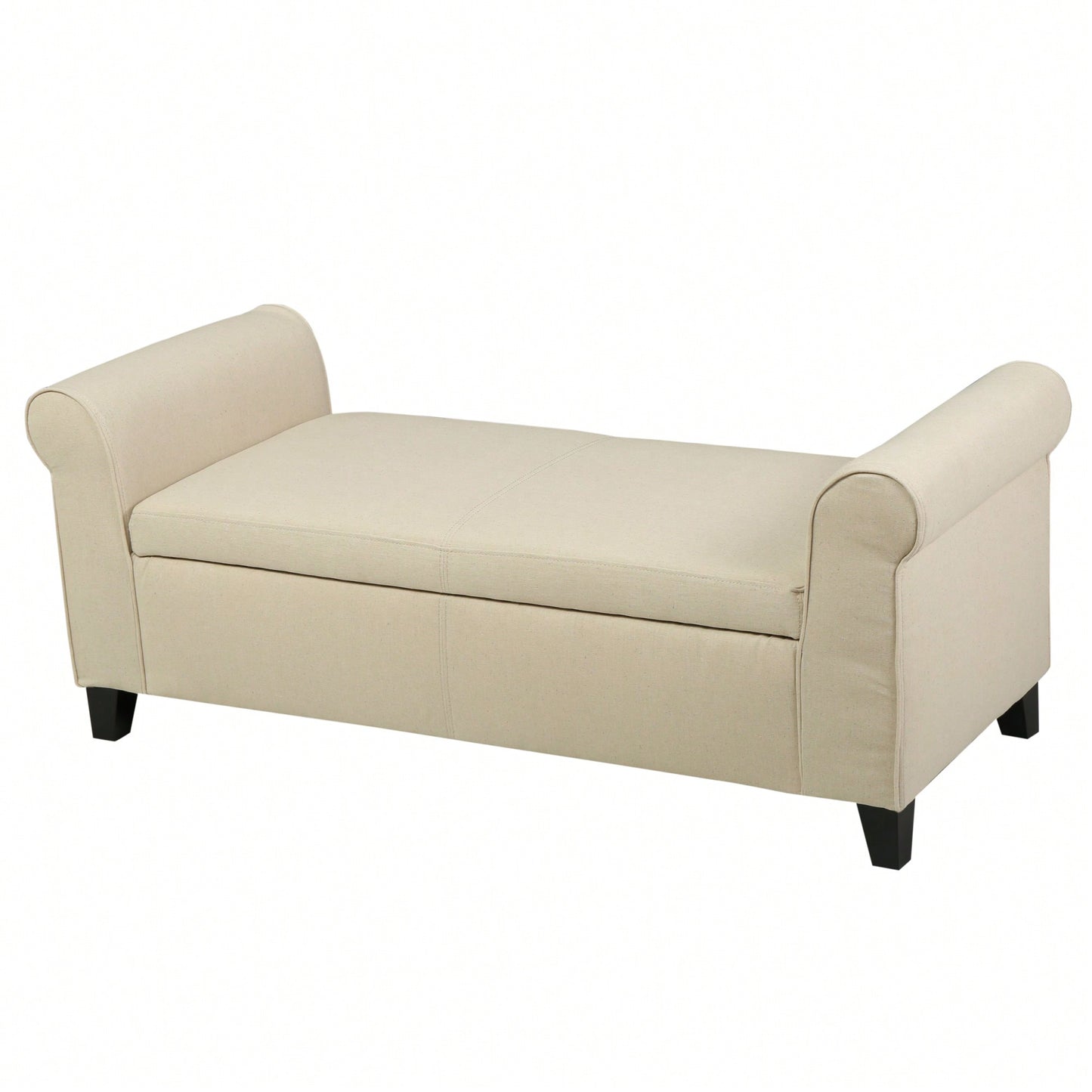 Stylish Storage Bench With Armrests For Entryway And Living Room Organization