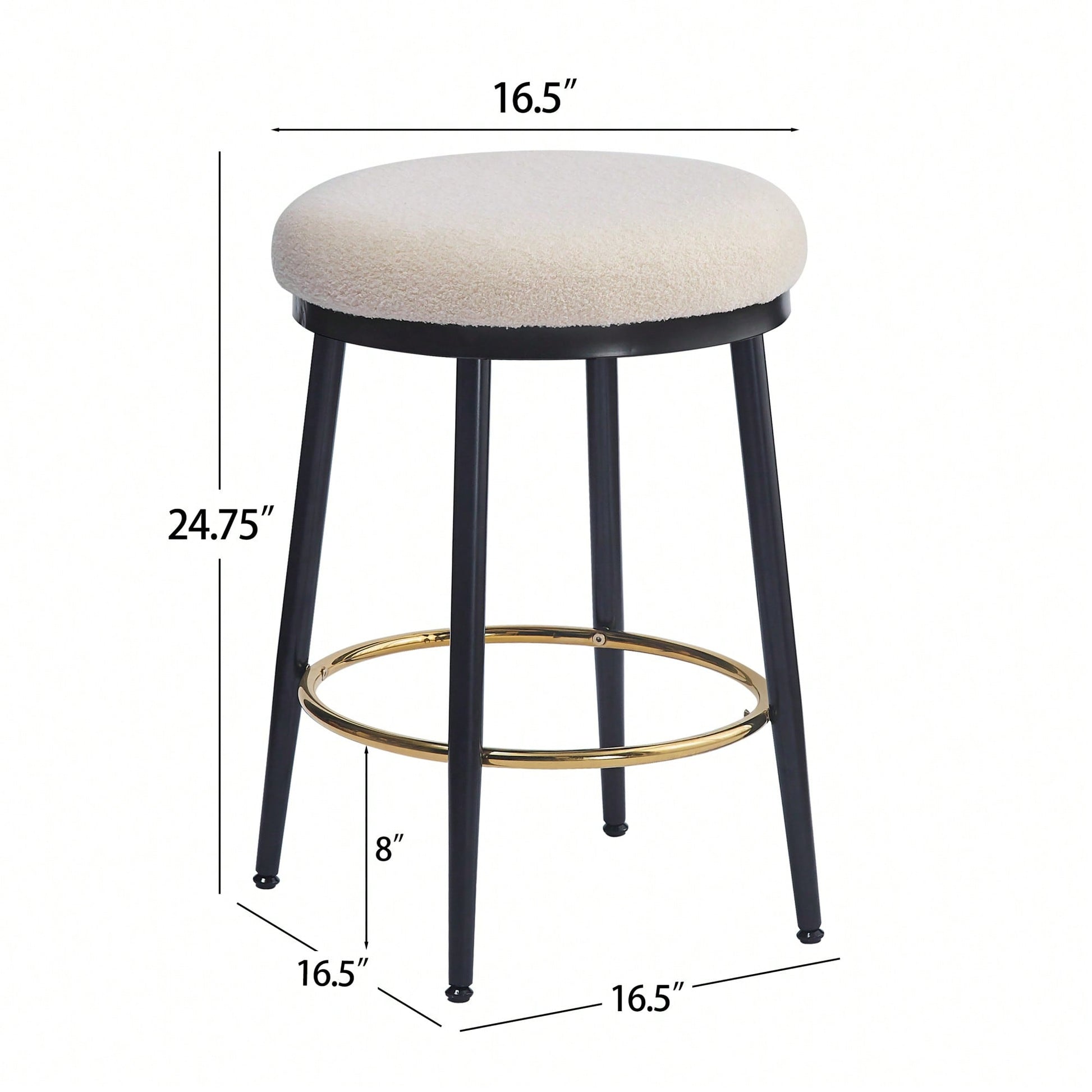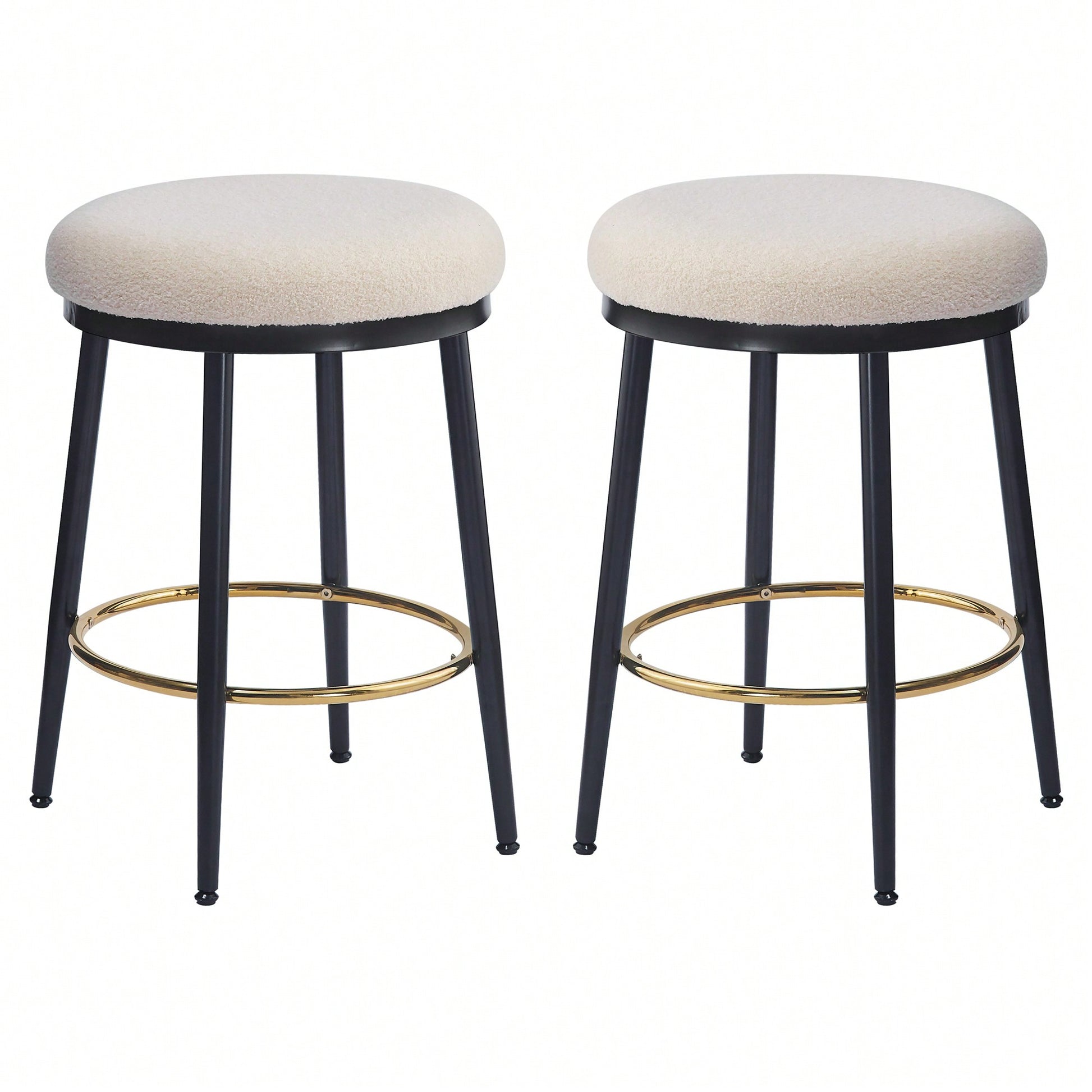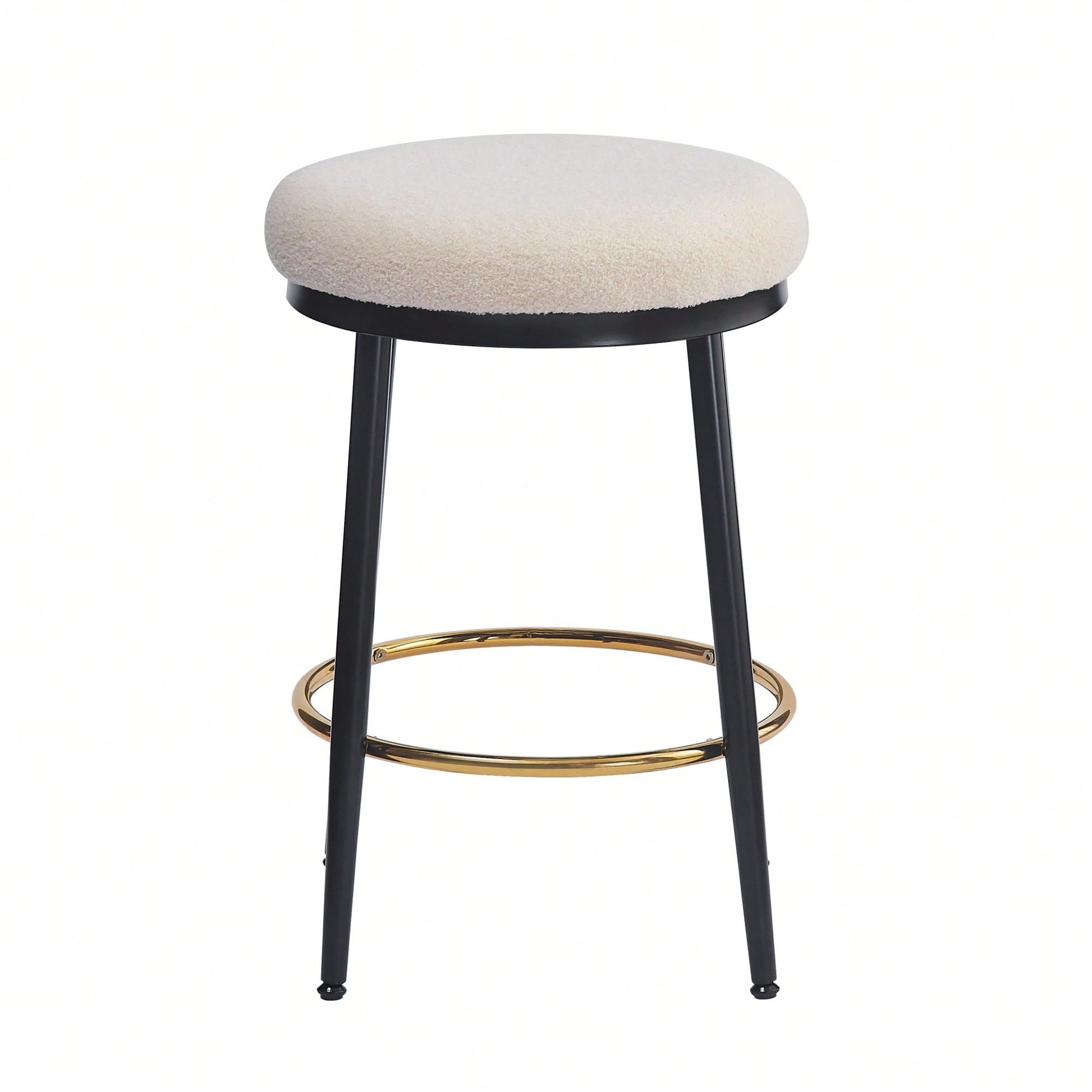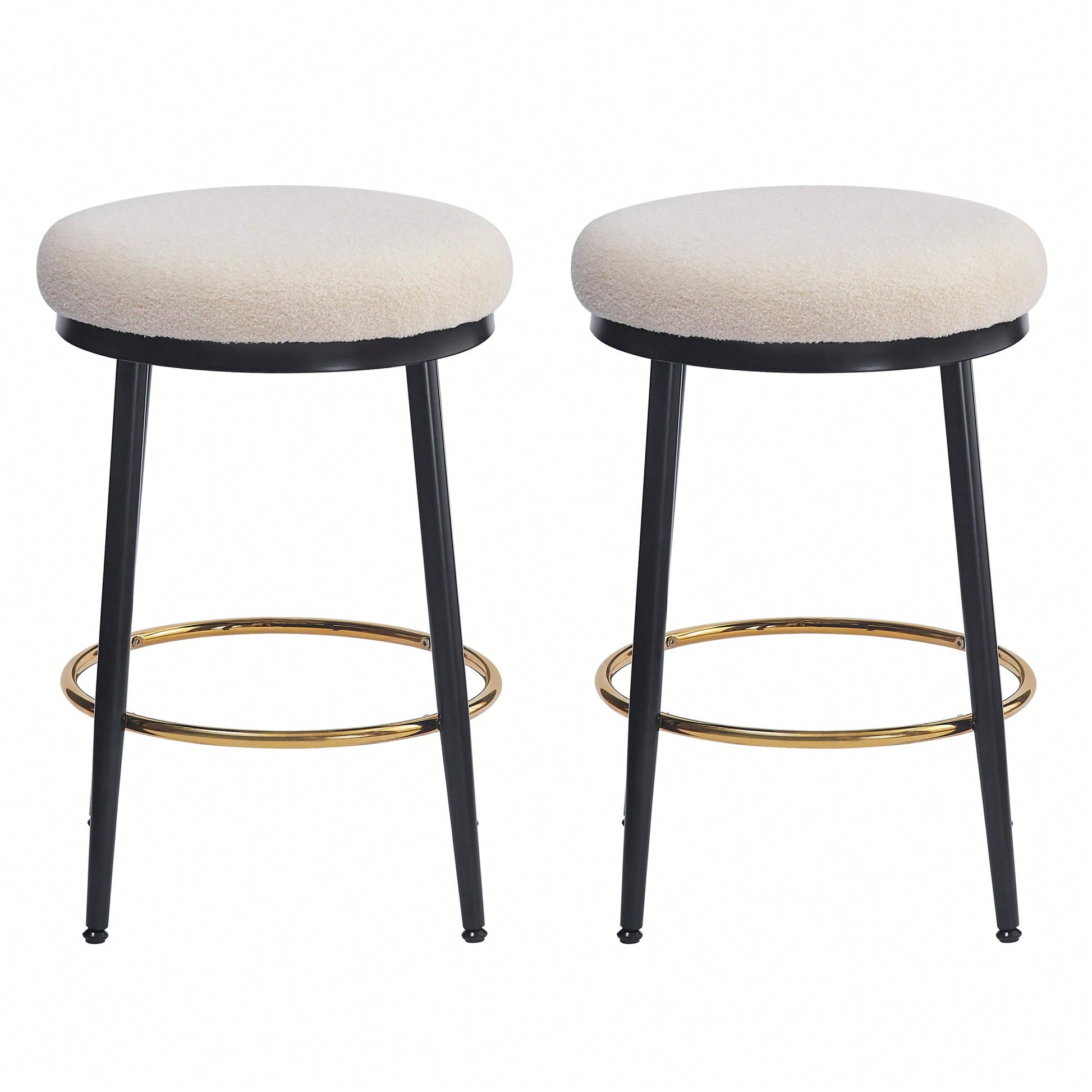 This set of two modern counter stools features a white round seat and a robust iron frame, making them a fashionable addition to any space, including the kitchen, bedroom, or dining room. The soft sponge cushion provides a comfortable seating experience, allowing you to relax for extended periods. The durable construction ensures that these stools can withstand regular use, offering great value over time. Their versatile design allows them to be used in various ways, and they can be easily moved around your home as needed. Additionally, the white fabric is simple to maintain, requiring just a quick wipe with a damp cloth to keep them looking fresh.