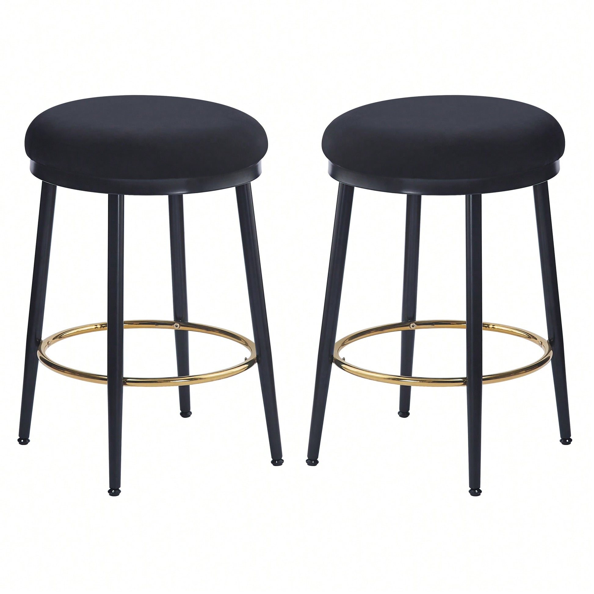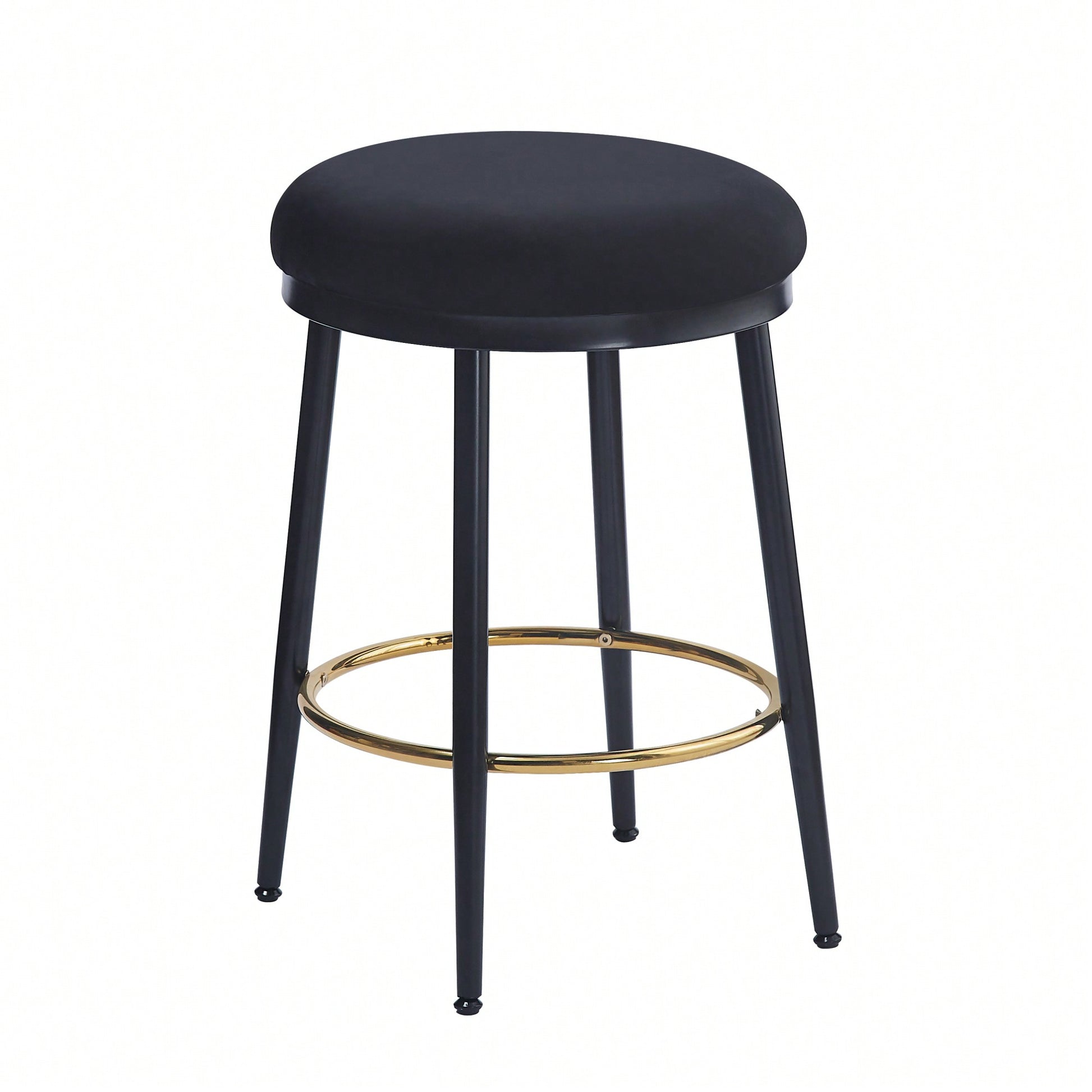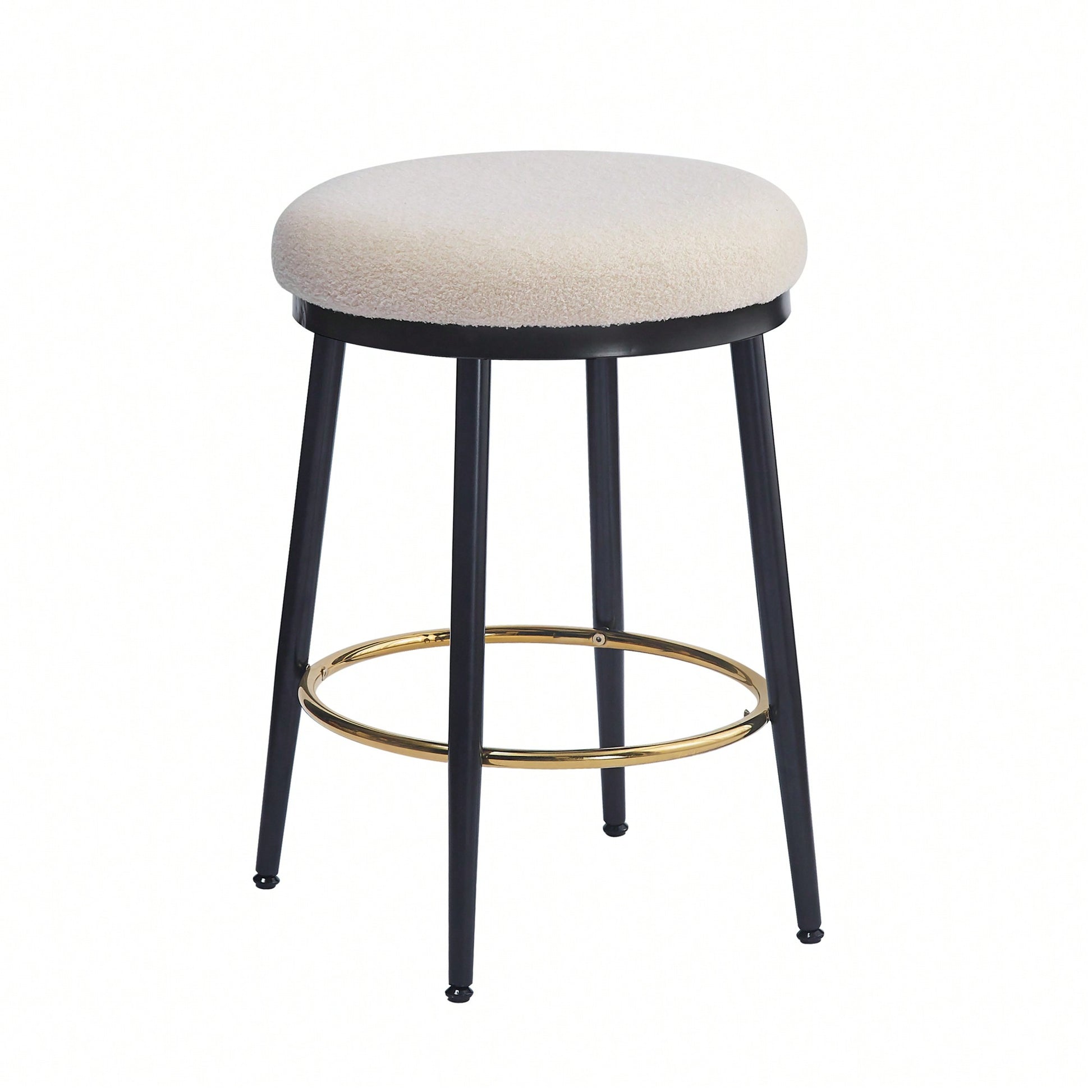 This set of two modern counter stools features a white round seat and a robust iron frame, making them a fashionable addition to any space, including the kitchen, bedroom, or dining room. The soft sponge cushion provides a comfortable seating experience, allowing you to relax for extended periods. The durable construction ensures that these stools can withstand regular use, offering great value over time. Their versatile design allows them to be used in various ways, and they can be easily moved around your home as needed. Additionally, the white fabric is simple to maintain, requiring just a quick wipe with a damp cloth to keep them looking fresh.