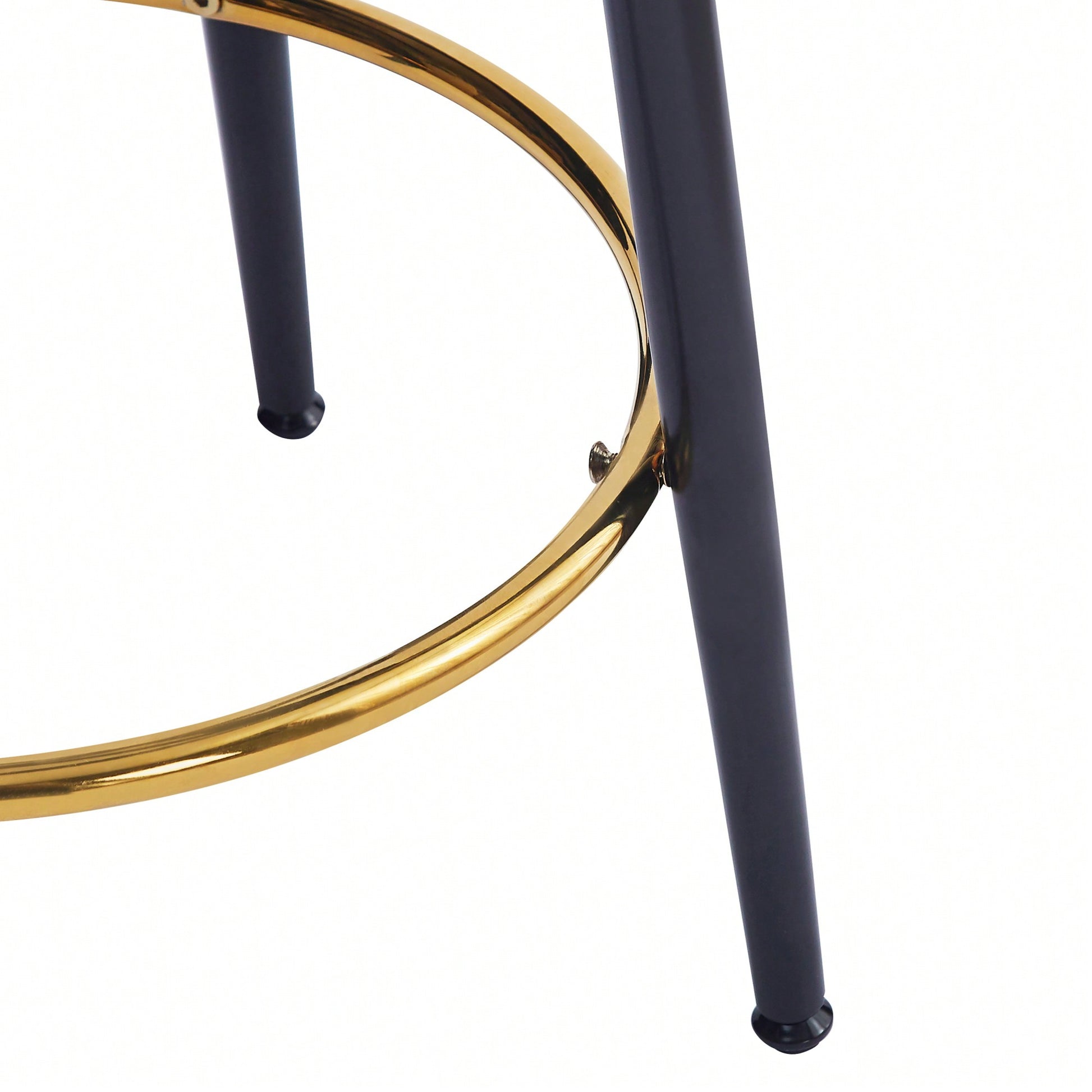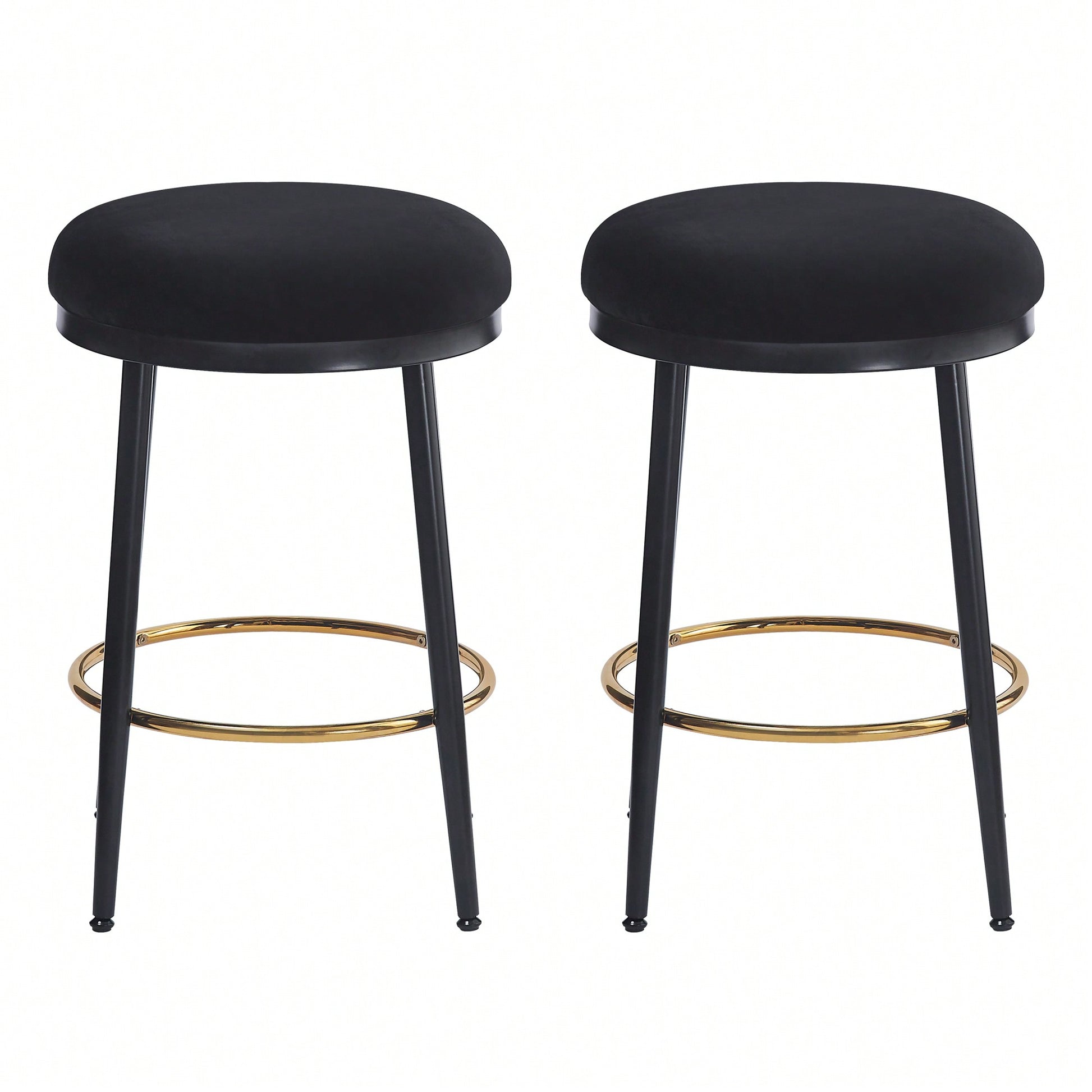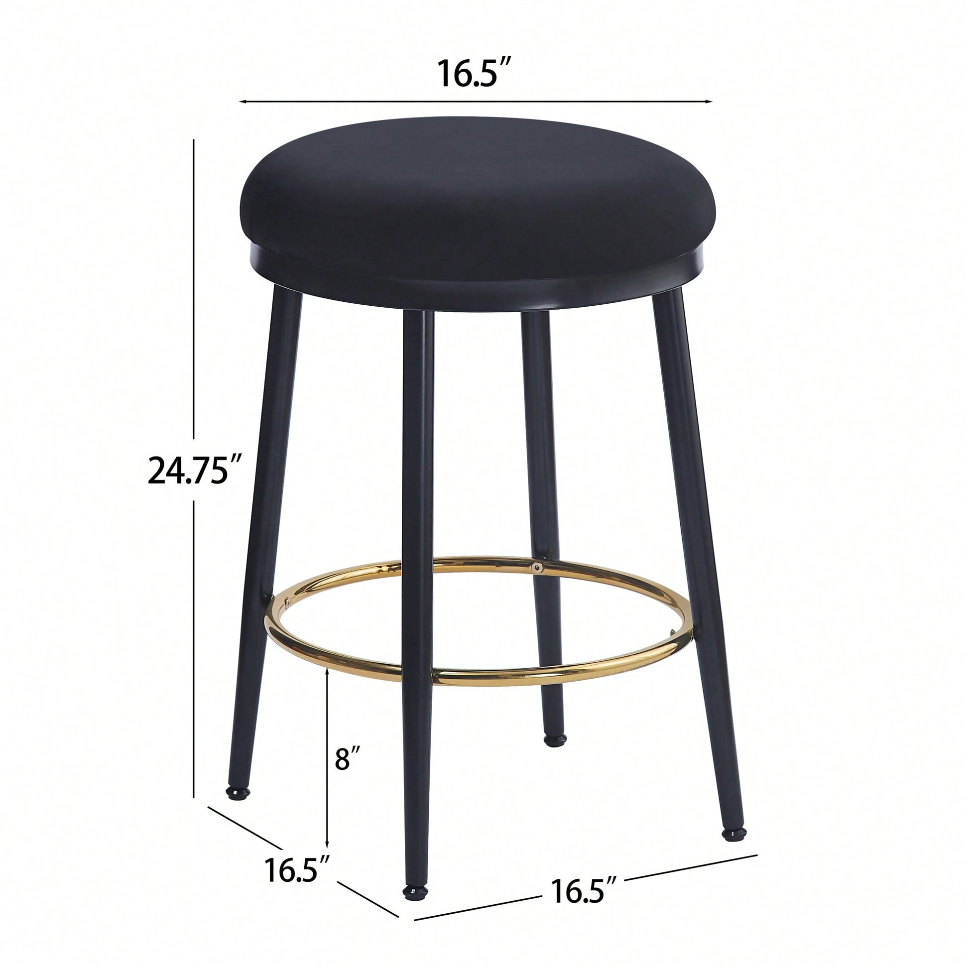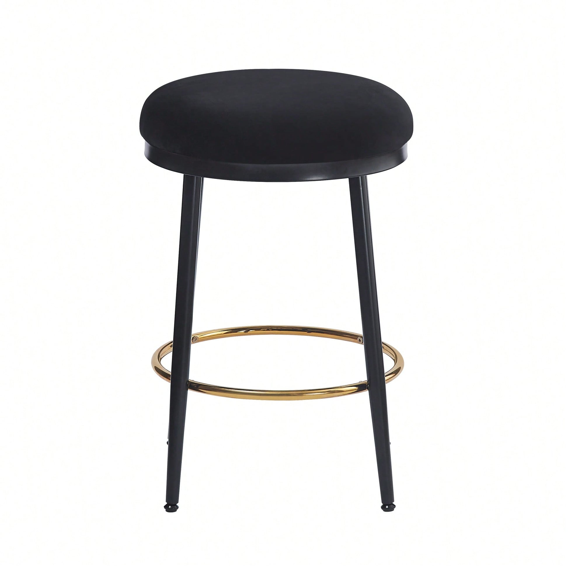 This set of two modern counter stools features a white round seat and a robust iron frame, making them a fashionable addition to any space, including the kitchen, bedroom, or dining room. The soft sponge cushion provides a comfortable seating experience, allowing you to relax for extended periods. The durable construction ensures that these stools can withstand regular use, offering great value over time. Their versatile design allows them to be used in various ways, and they can be easily moved around your home as needed. Additionally, the white fabric is simple to maintain, requiring just a quick wipe with a damp cloth to keep them looking fresh.