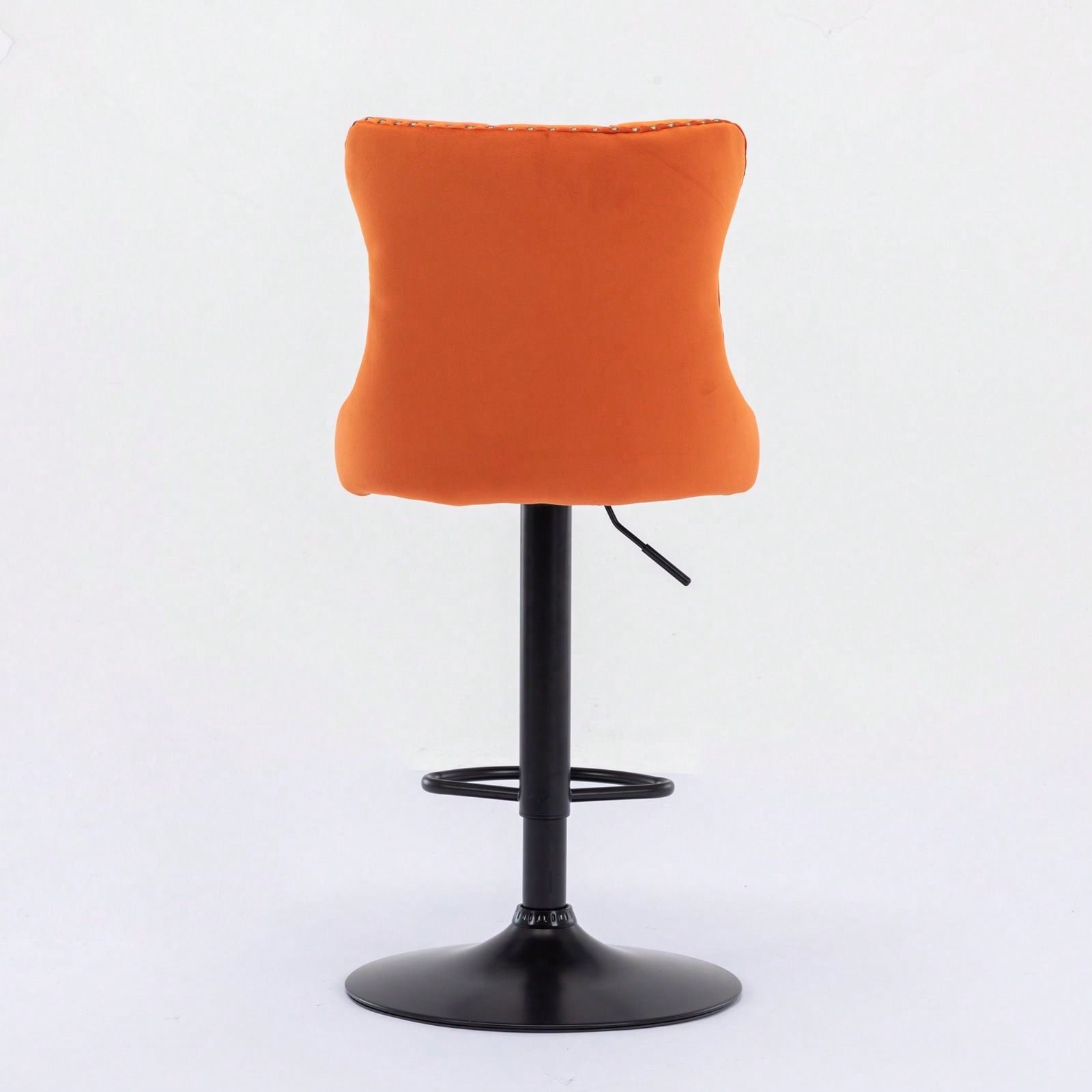 Adjustable Swivel Velvet Bar Stools Set of 2 Comfortable Tufted Back Modern Design for Kitchen Island and Home Pub Orange 25-33 Inch Height