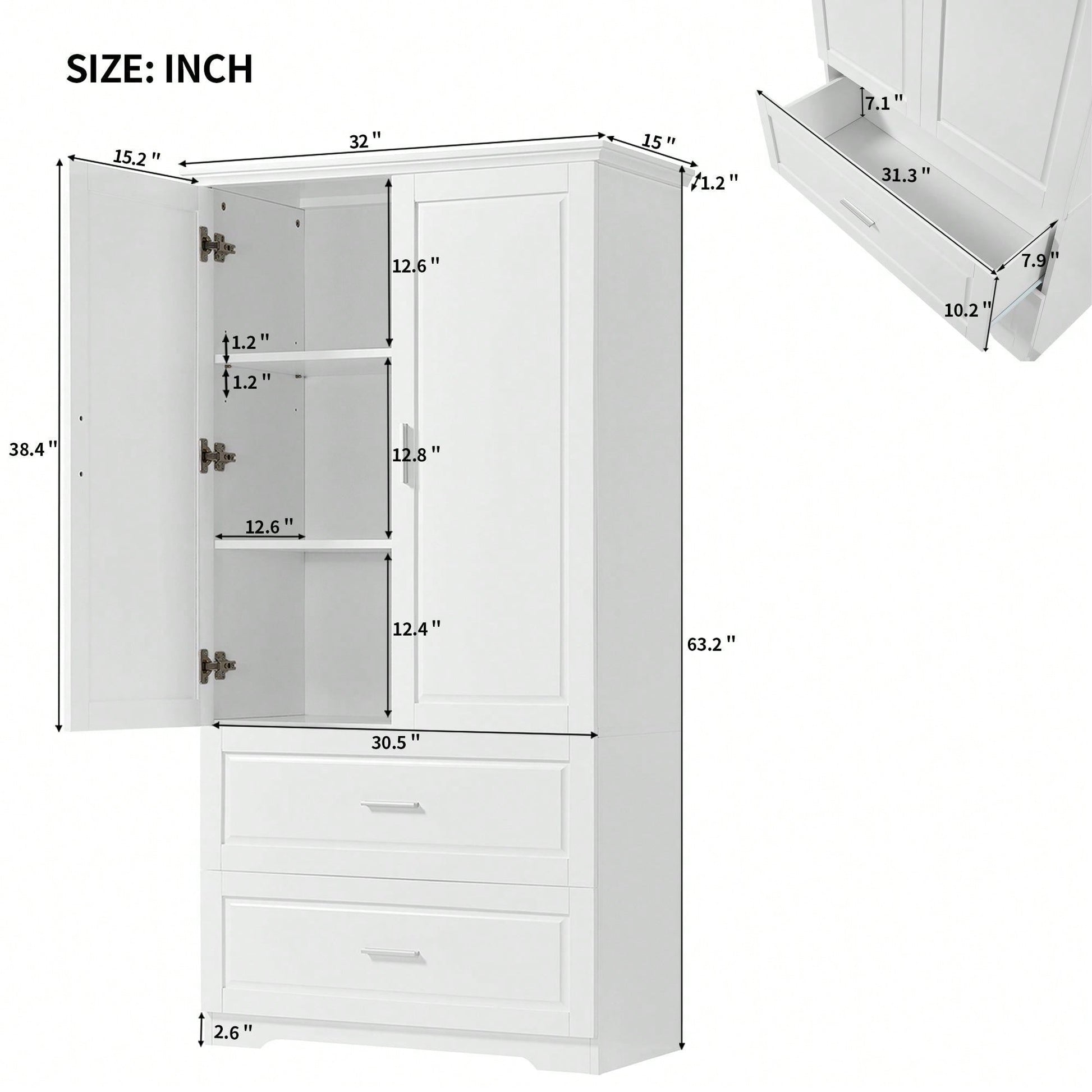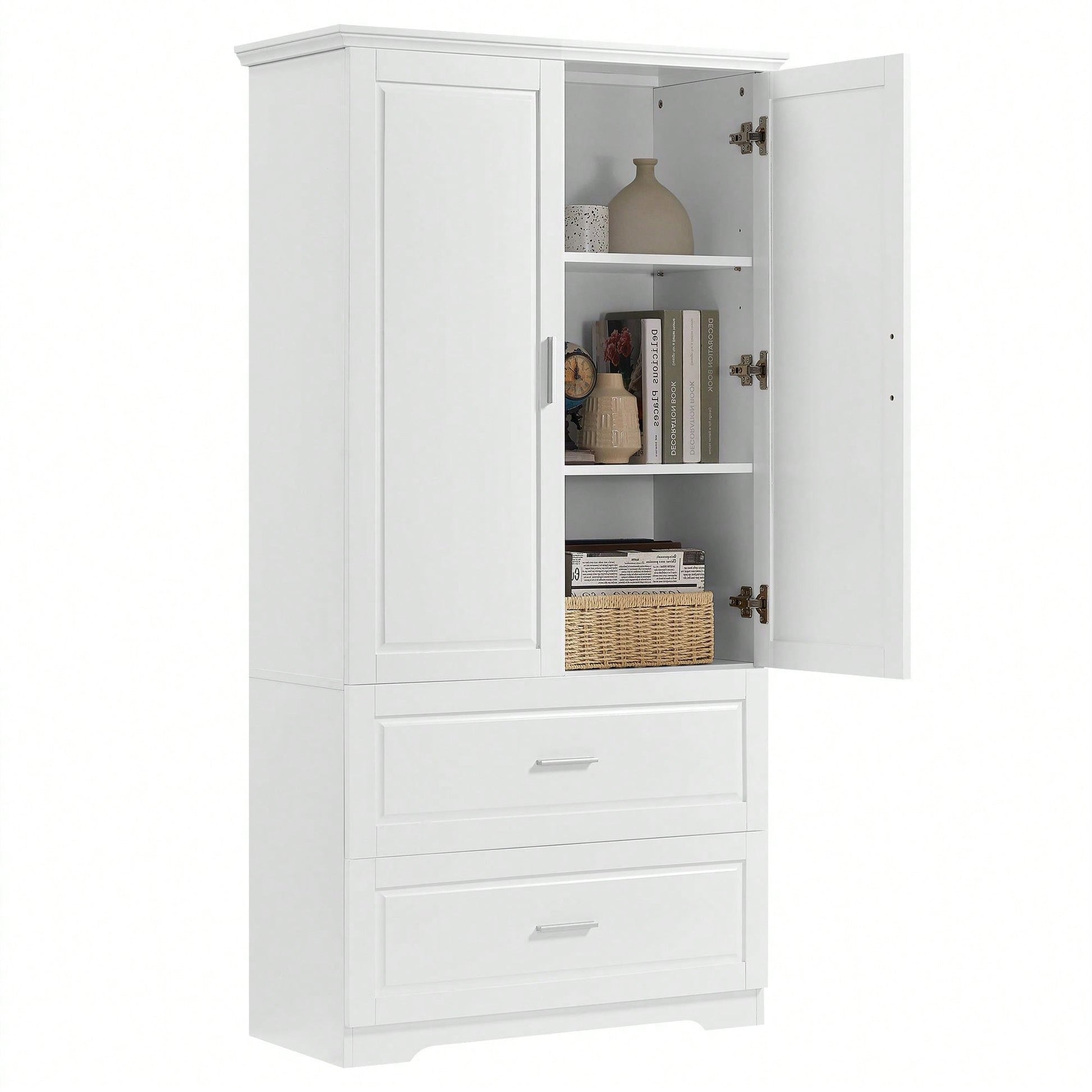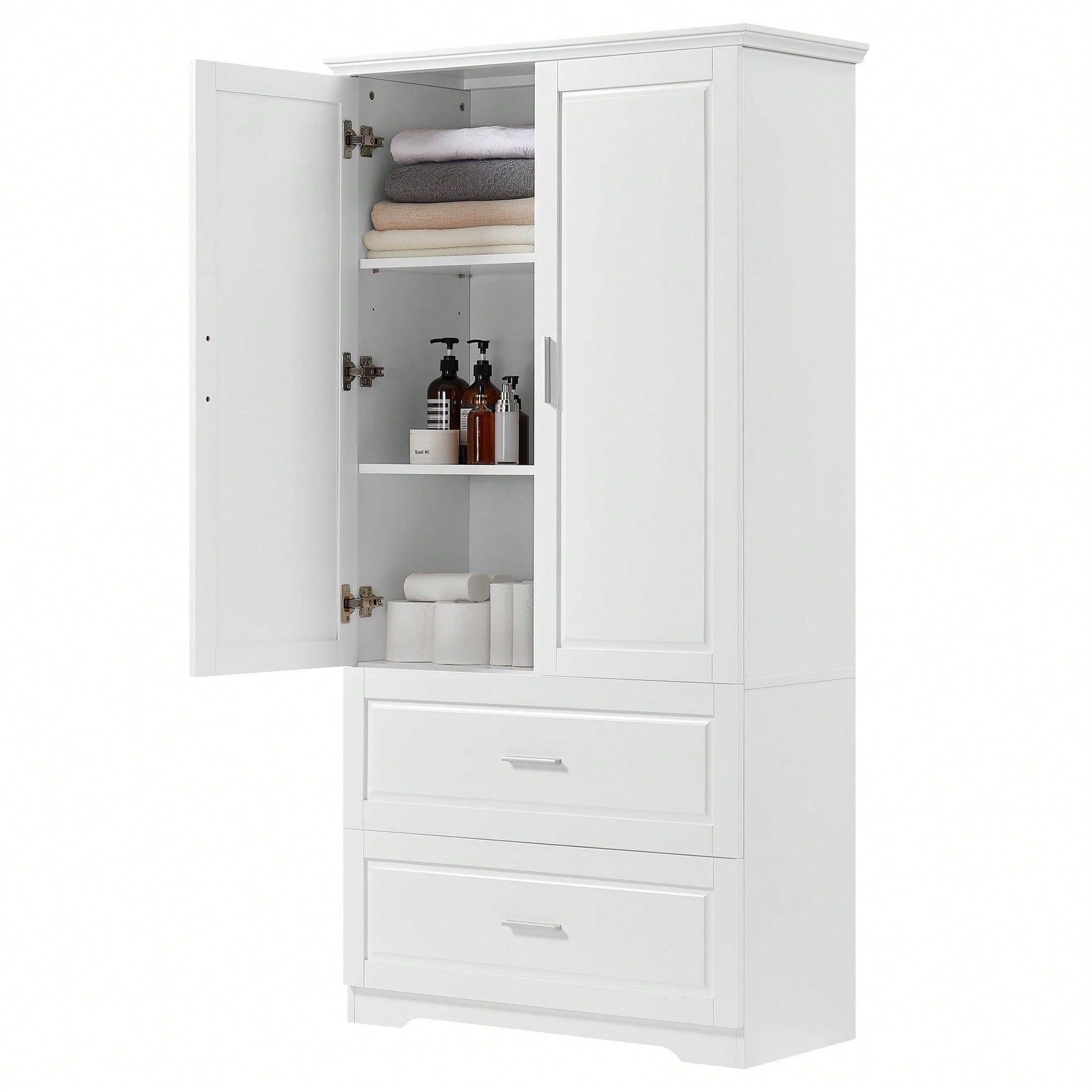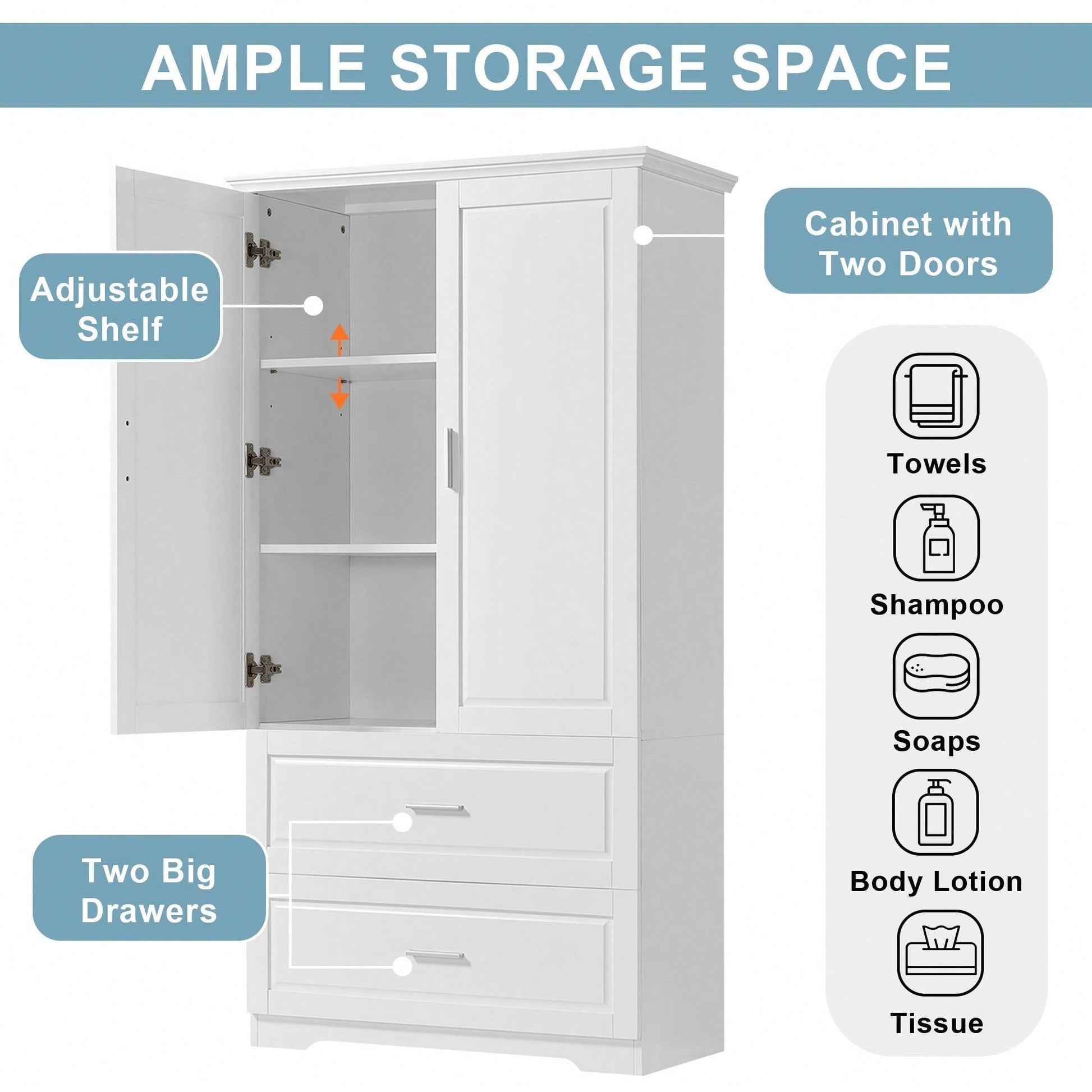 Tall Bathroom Storage Cabinet, Cabinet With Two Doors And Drawers, Adjustable Shelf, MDF Board, White
