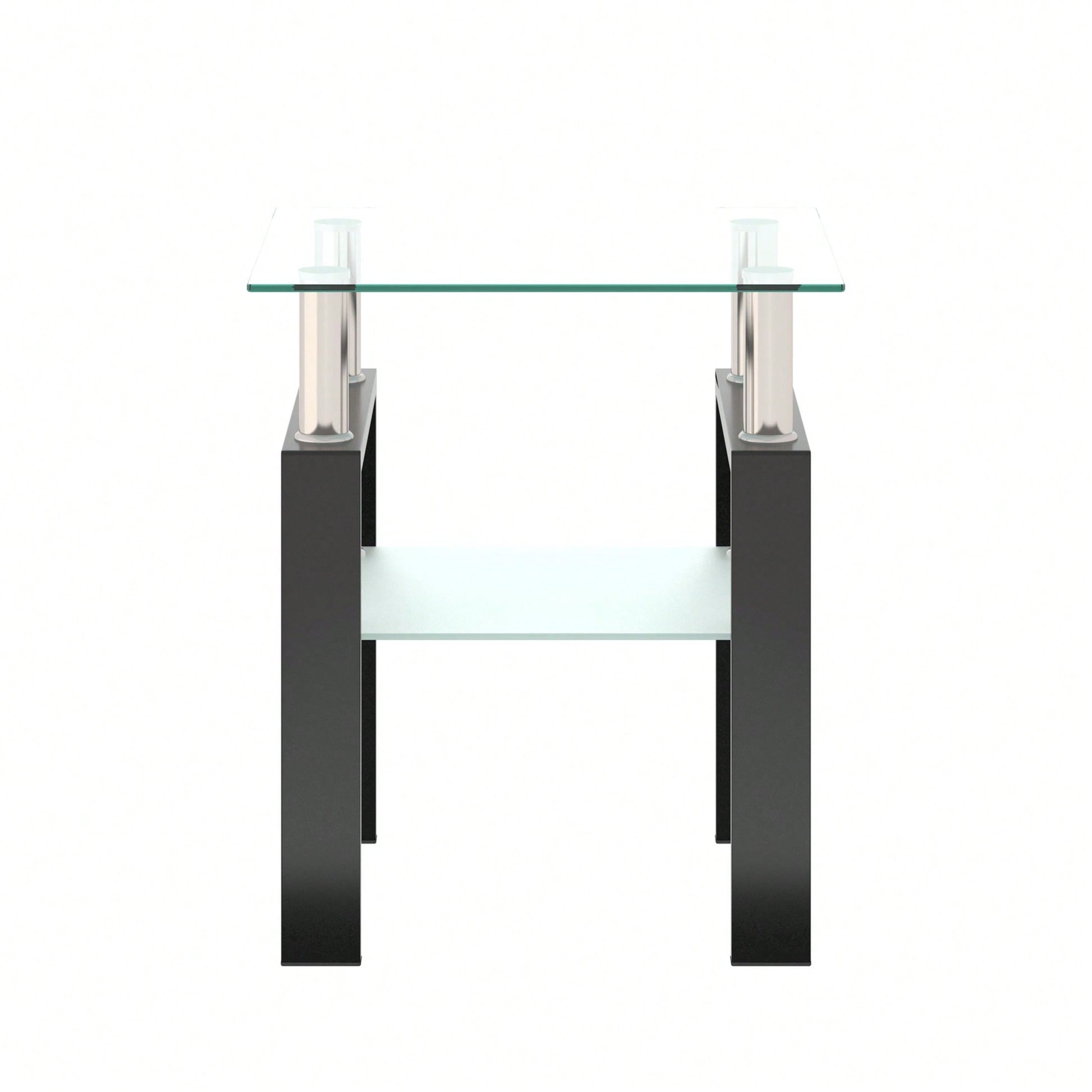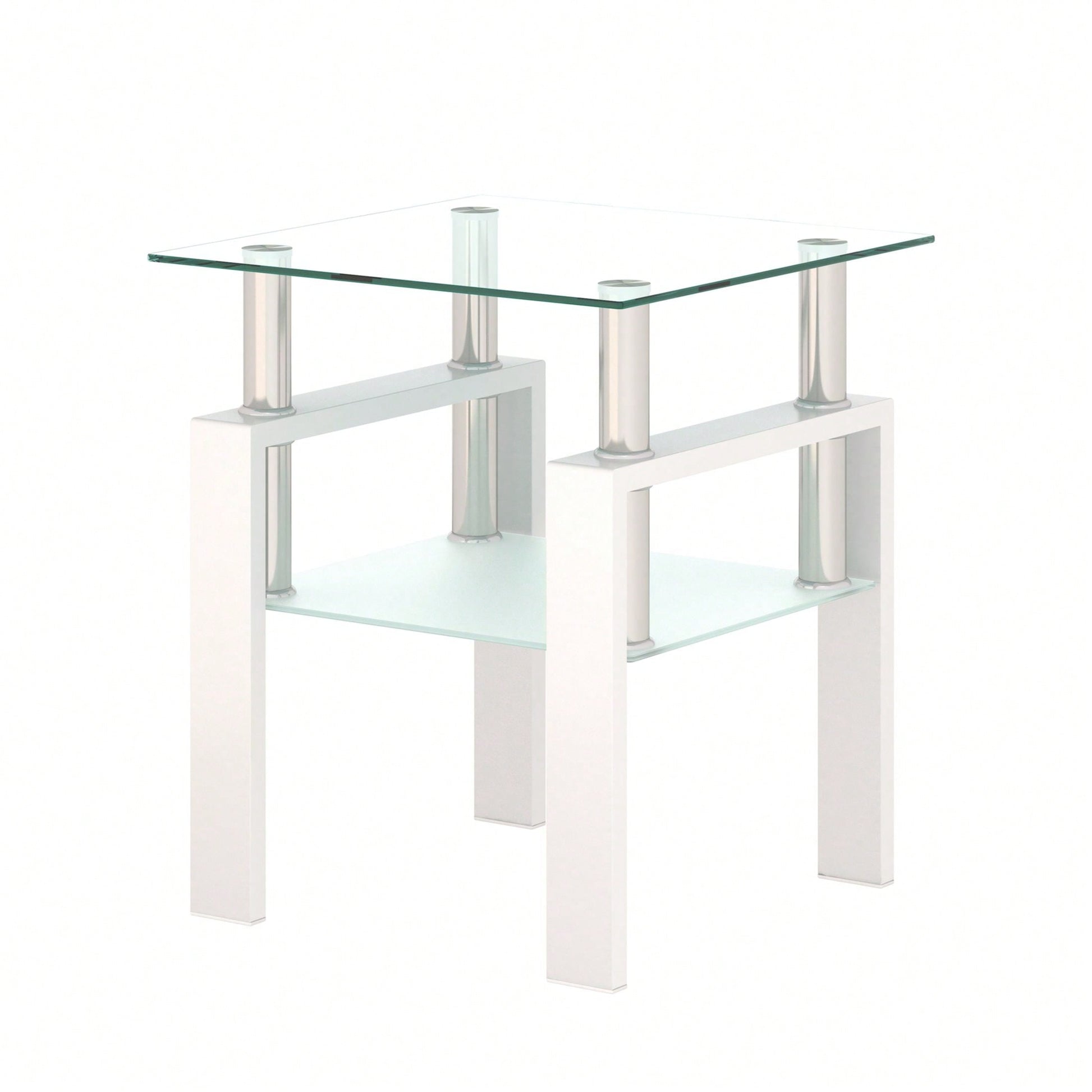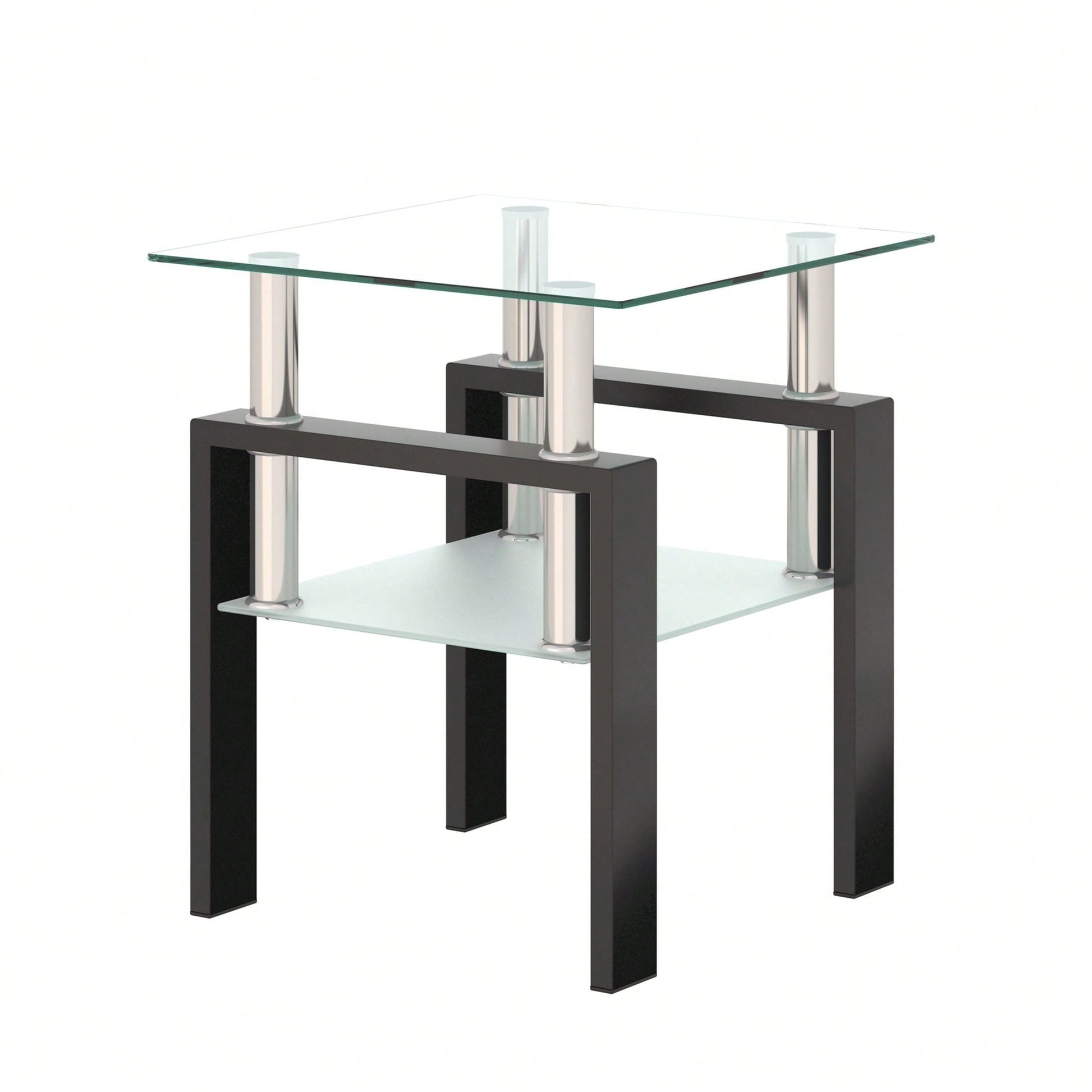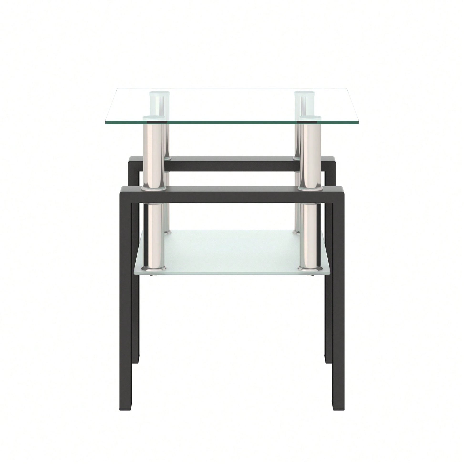 Tempered Glass Side Table With Metal Leg: Elegant Design, Transparent/Frosted Glass Layers, 150lbs Load-Bearing Capacity