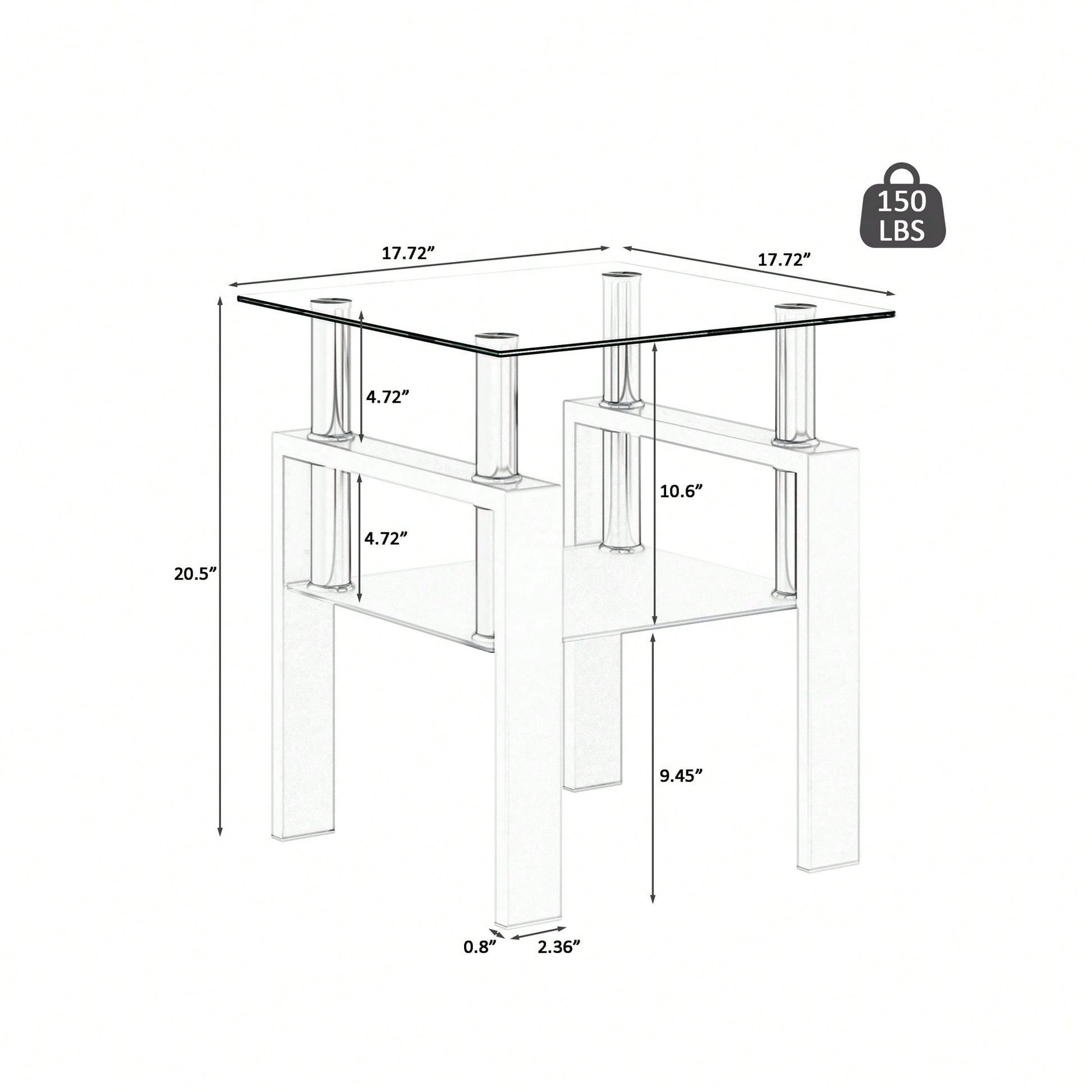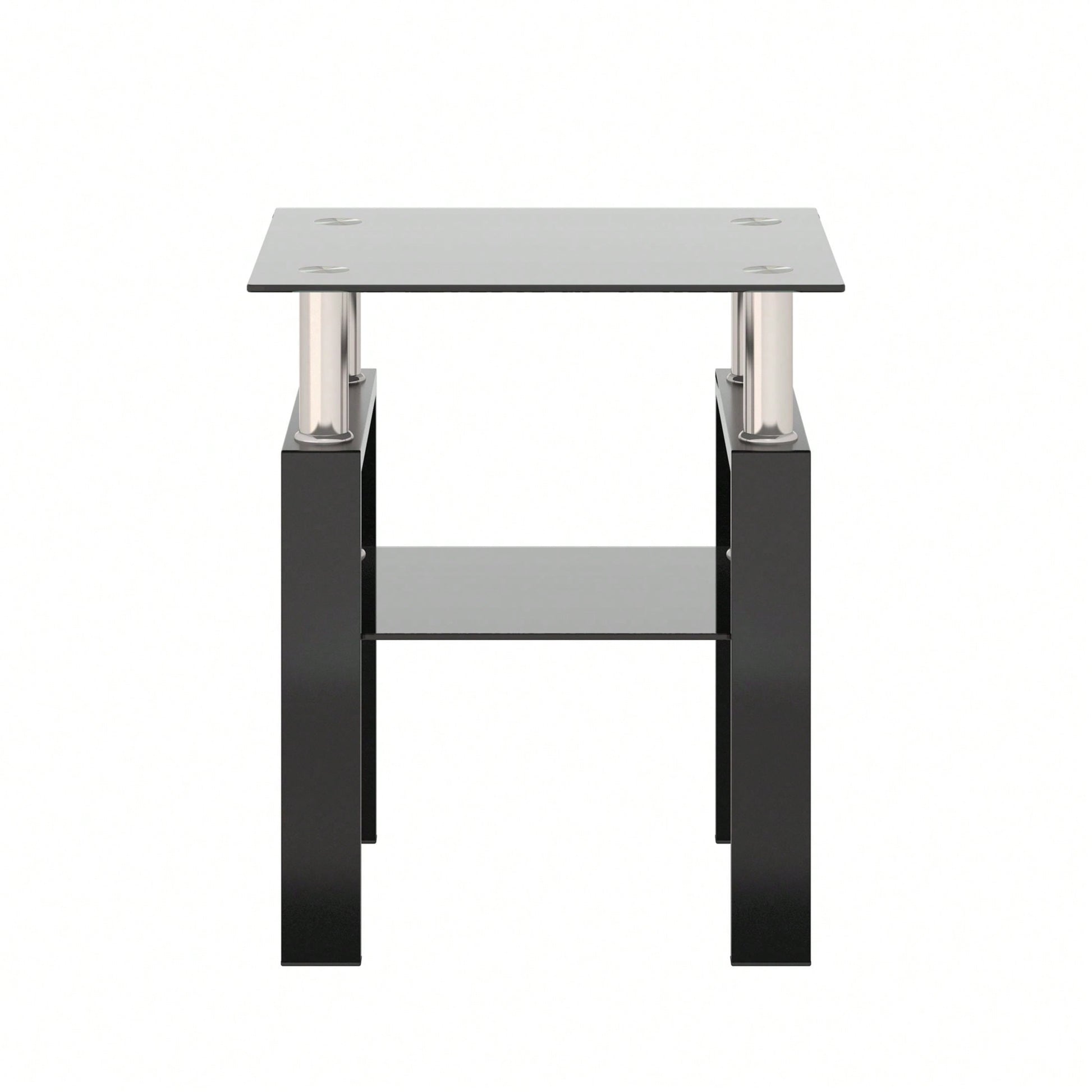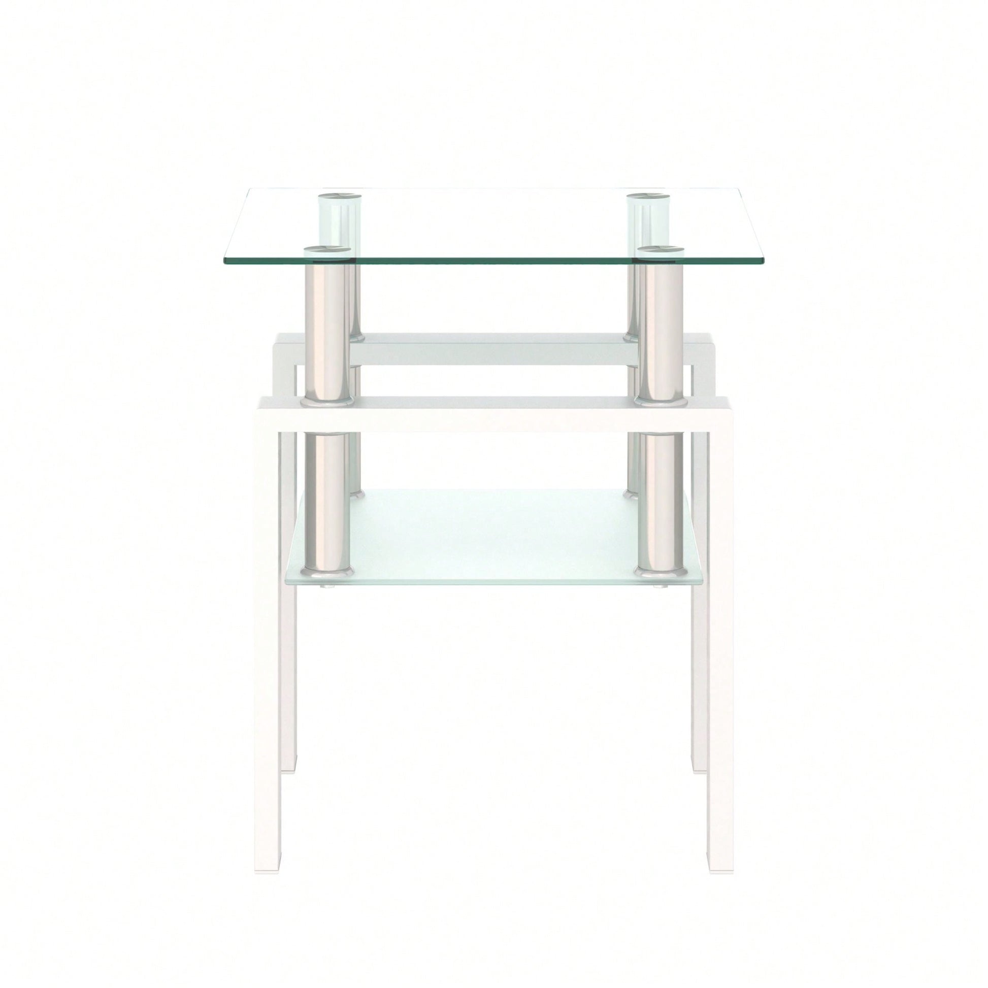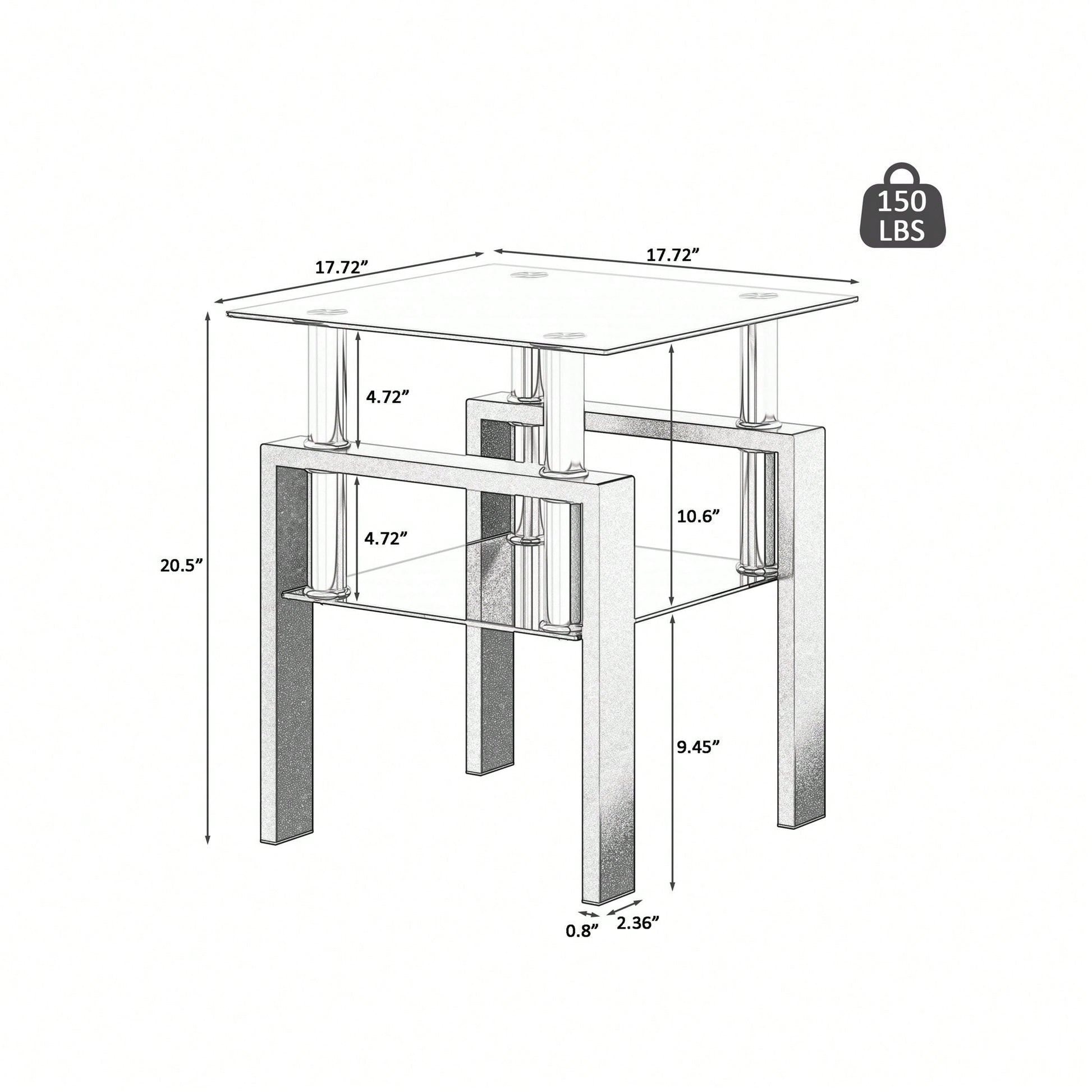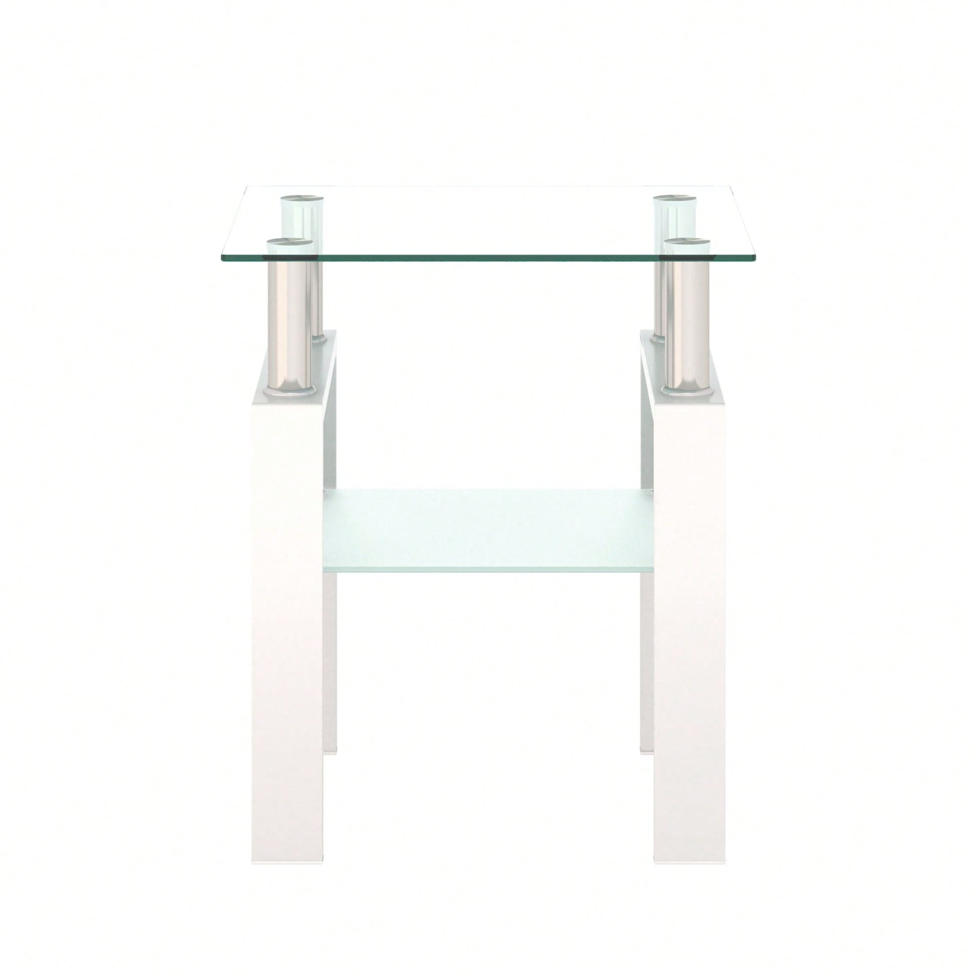 Tempered Glass Side Table With Metal Leg: Elegant Design, Transparent/Frosted Glass Layers, 150lbs Load-Bearing Capacity