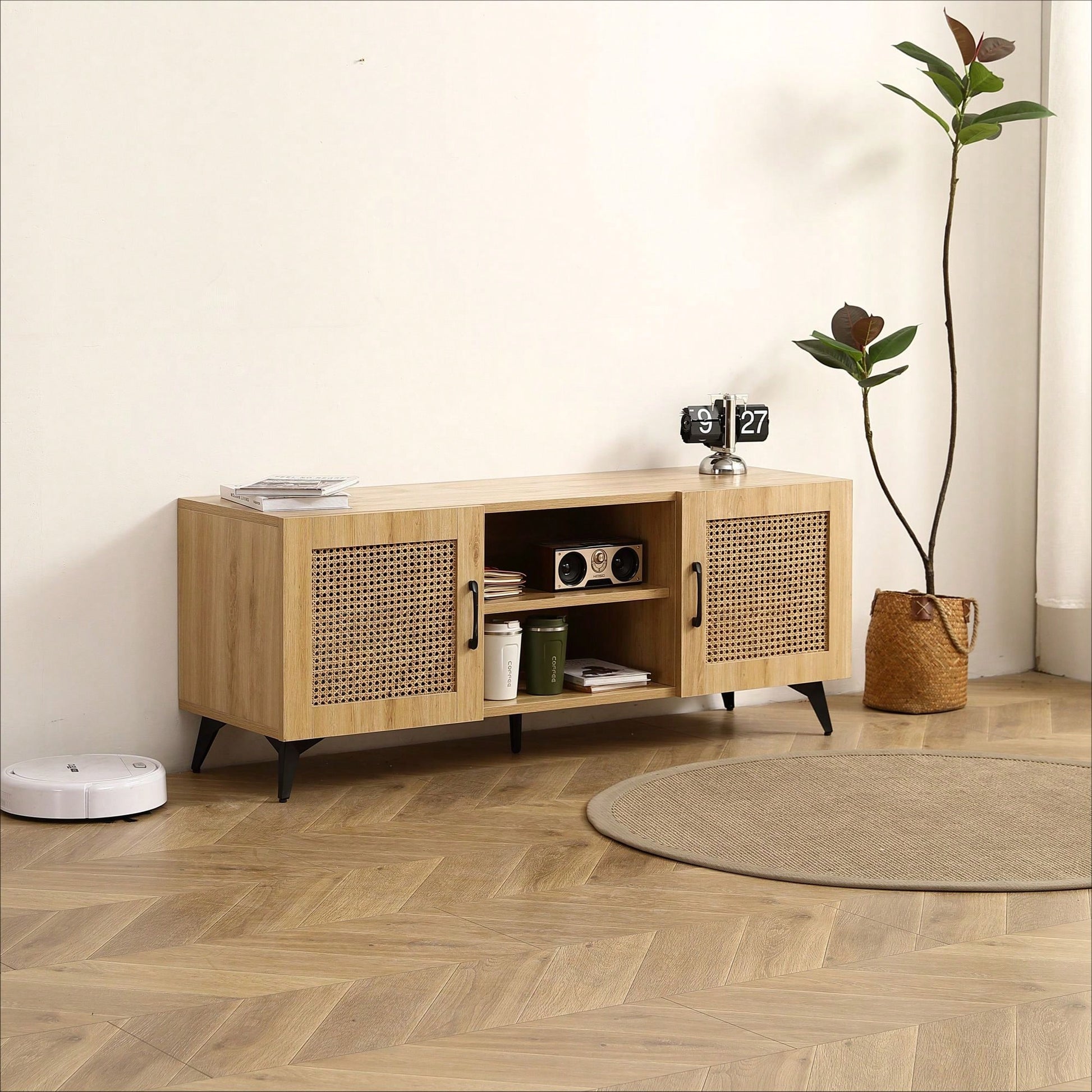 TV Stand With Rattan Net Stylish, Functional, And Versatile