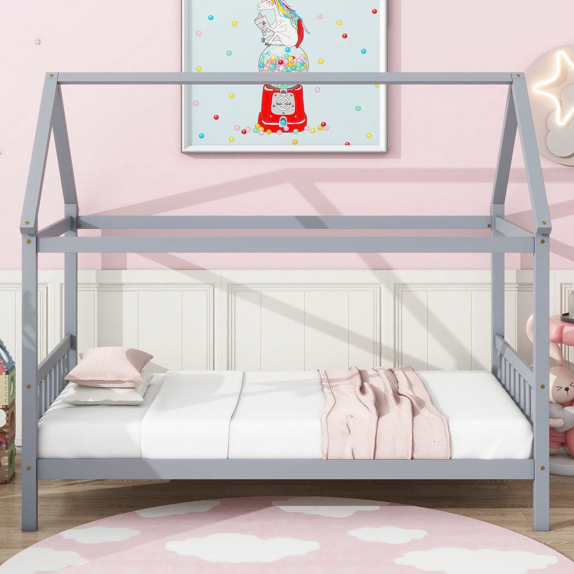 Convertible Single Sofa Bed Futon With Gold Metal Legs Teddy Fabric