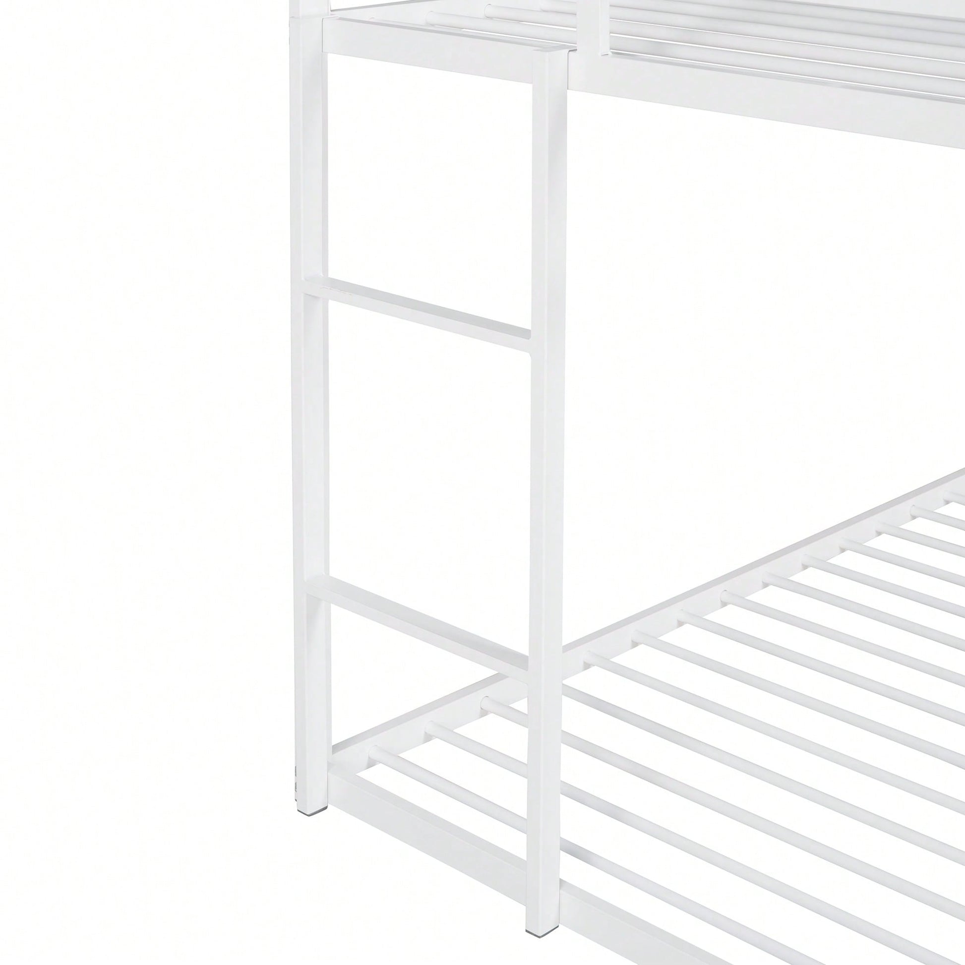 Twin Over Twin Metal Bunk Bed Frame For Kids With Built-In Ladder - No Box Spring Required - White Finish