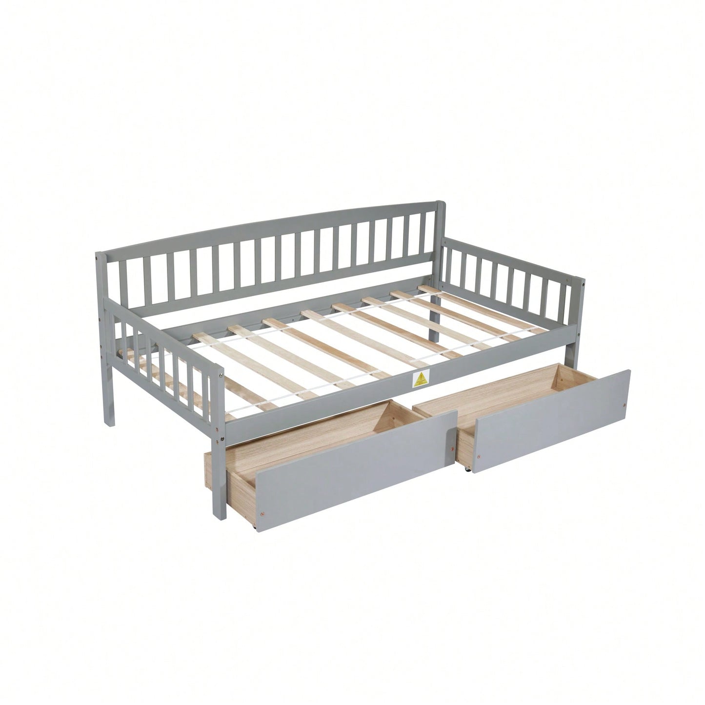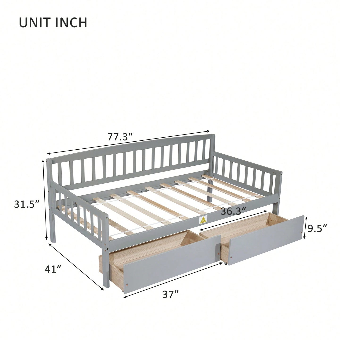 Twin Size Grey Pine Wood Daybed With Storage Drawers And Support Slats For Versatile Sofa Bed Solution