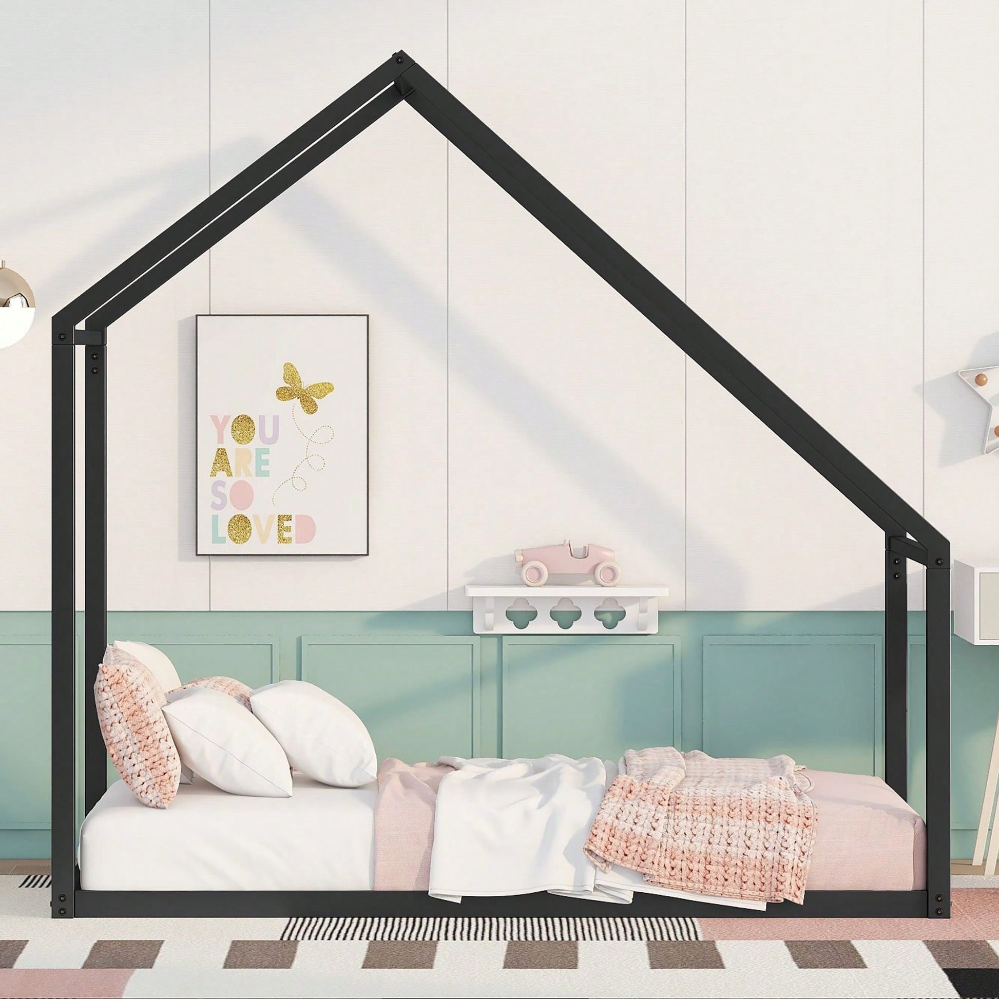 Metal Canopy Bed Frame with Vintage Style Headboard & Footboard, Easy DIY Assembly, Queen Size, Black