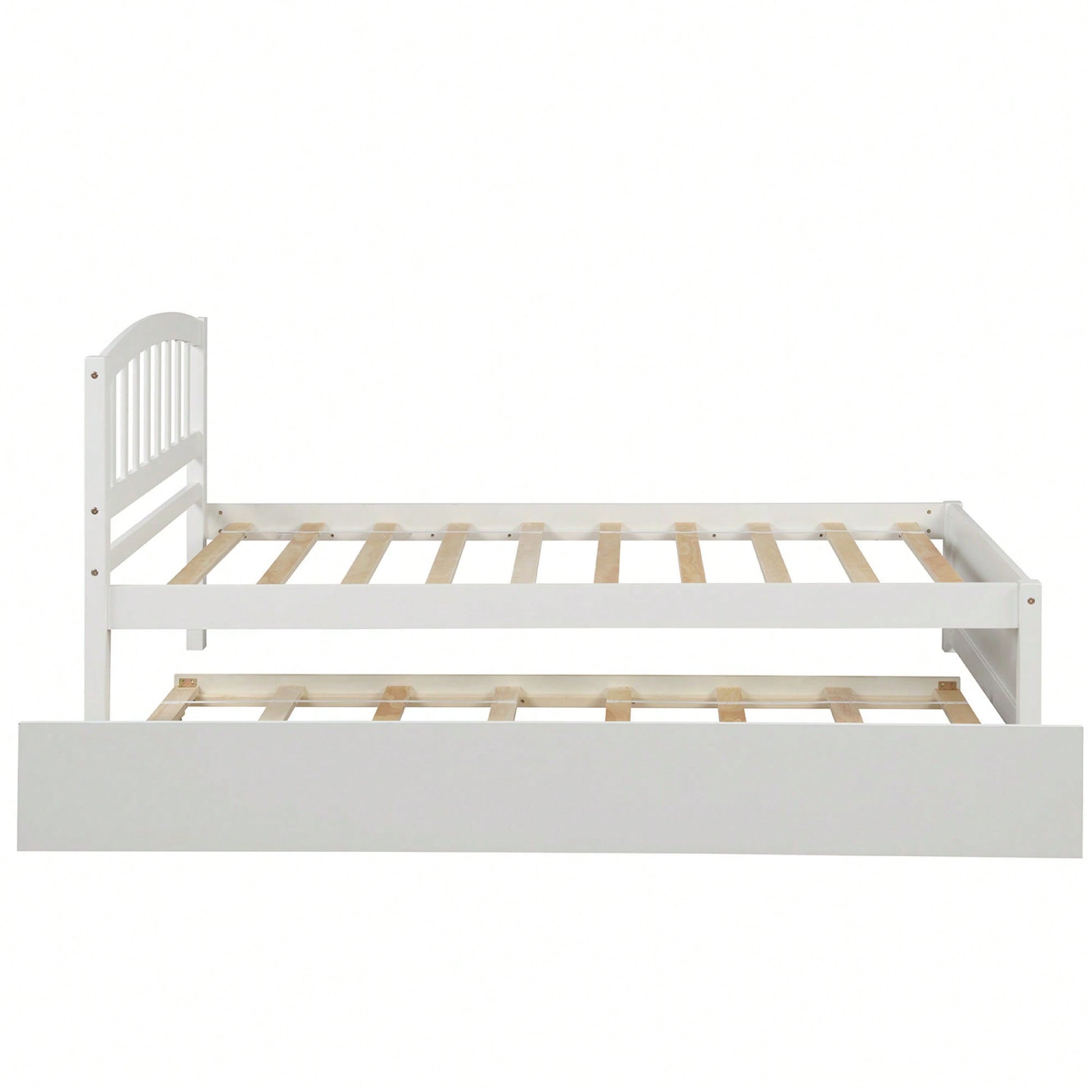 Twin Size Platform Bed Frame With Trundle For Space-Saving Sleep Solutions White