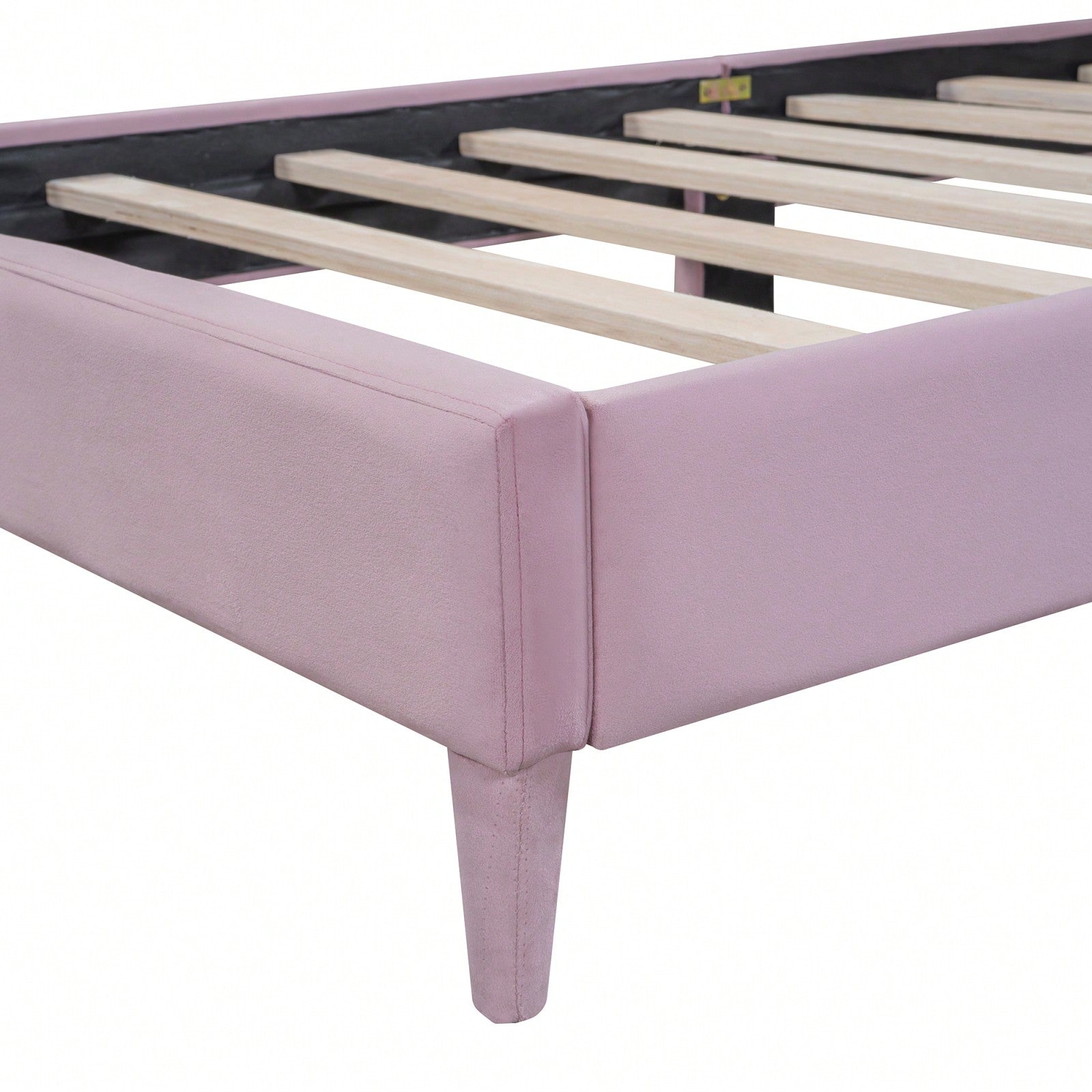 Cloud-Shaped Velvet Twin Platform Bed Frame with Wood Slat Support No Box Spring Required Easy Assembly