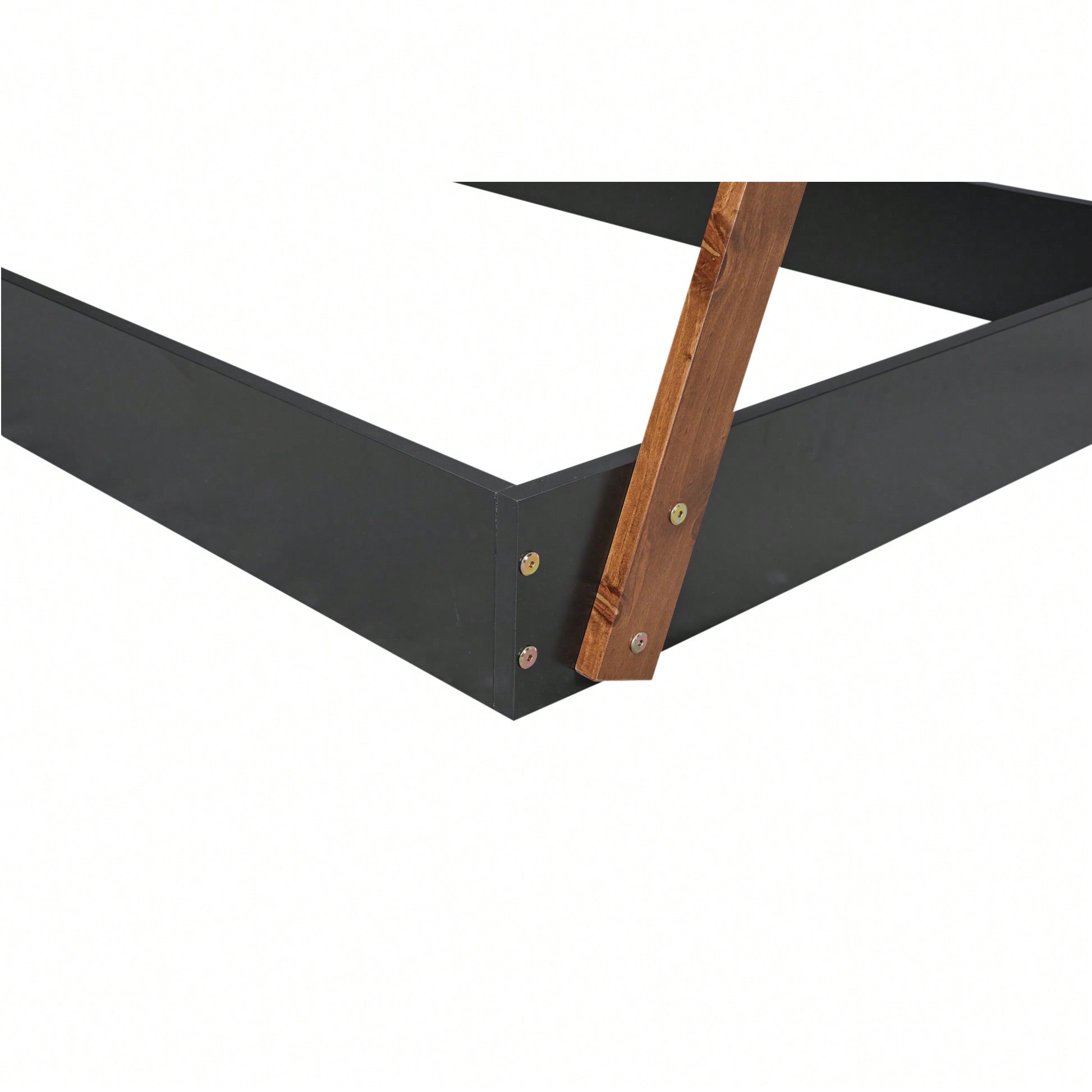 Twin Size Triangle Structure Tent Floor Bed In Black And Brown
