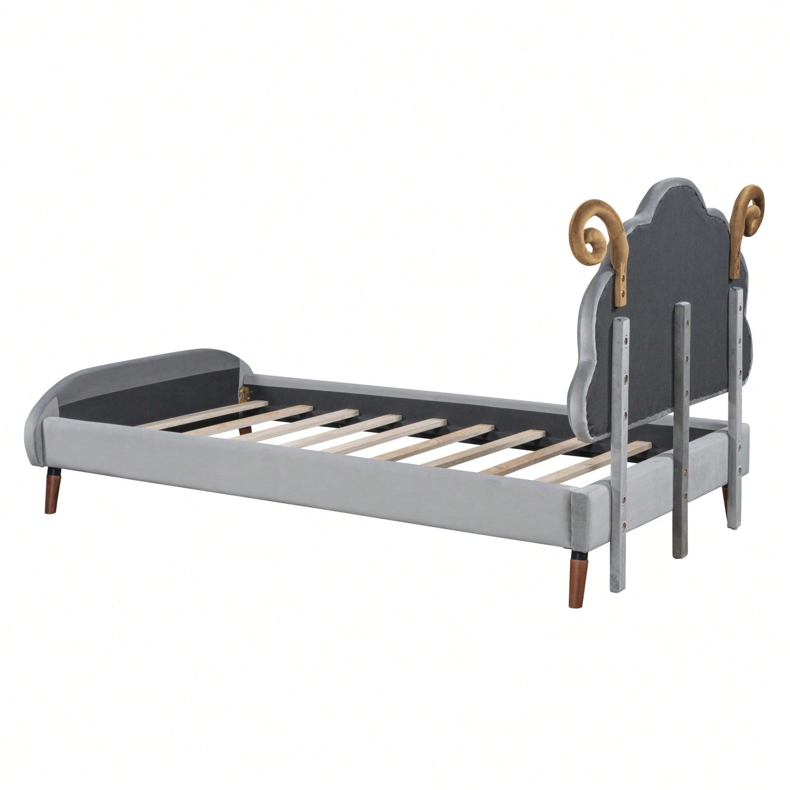 Convertible Single Sofa Bed Futon With Gold Metal Legs Teddy Fabric