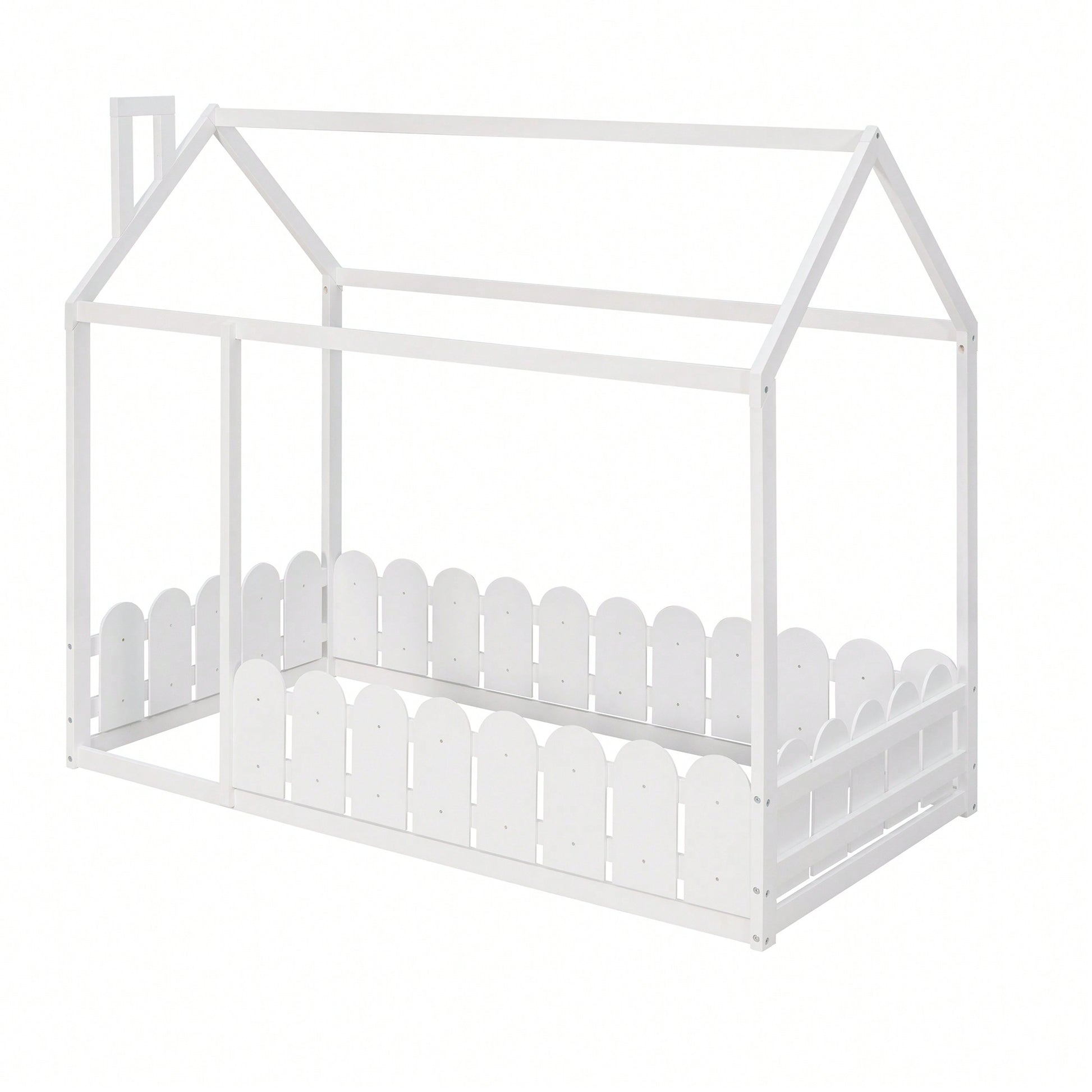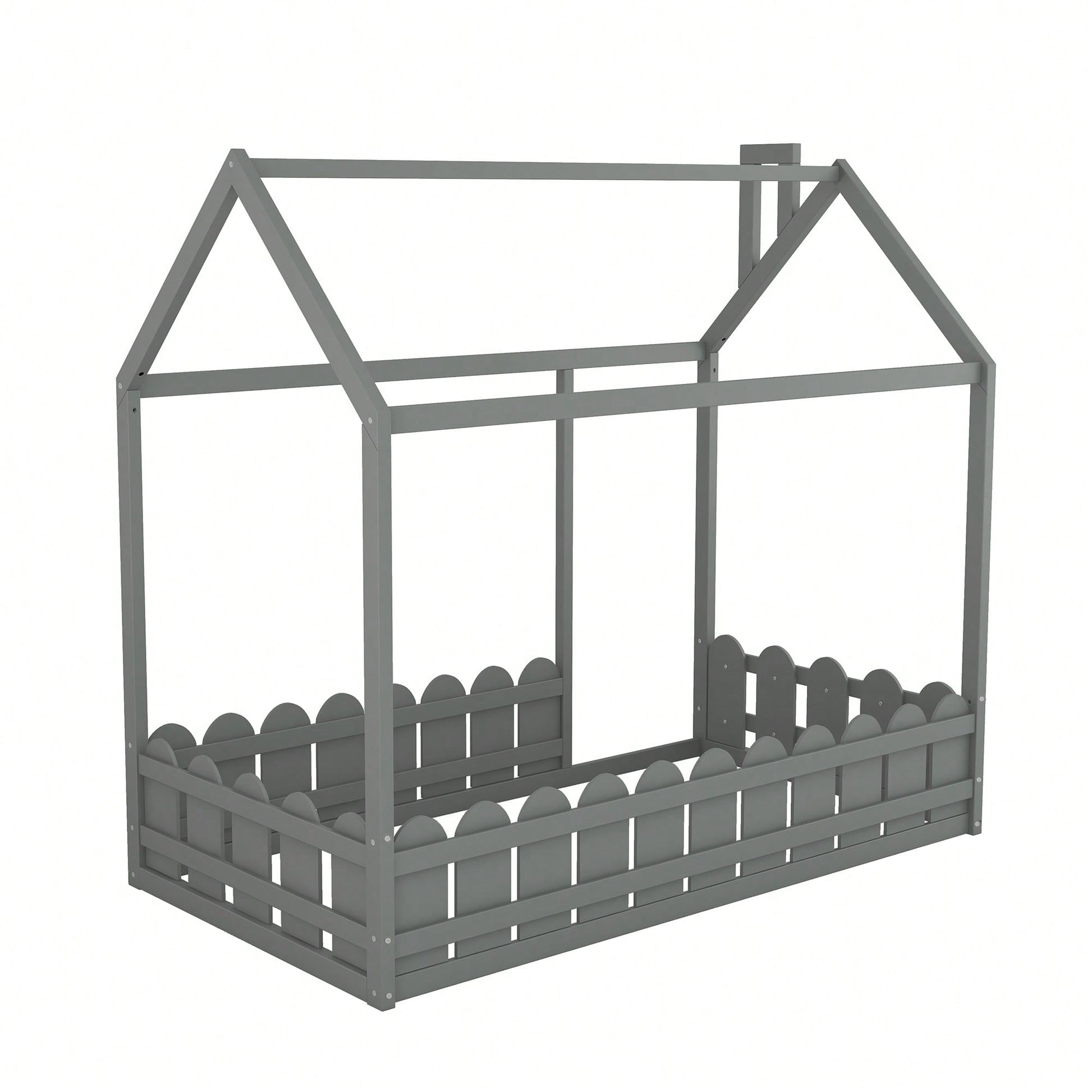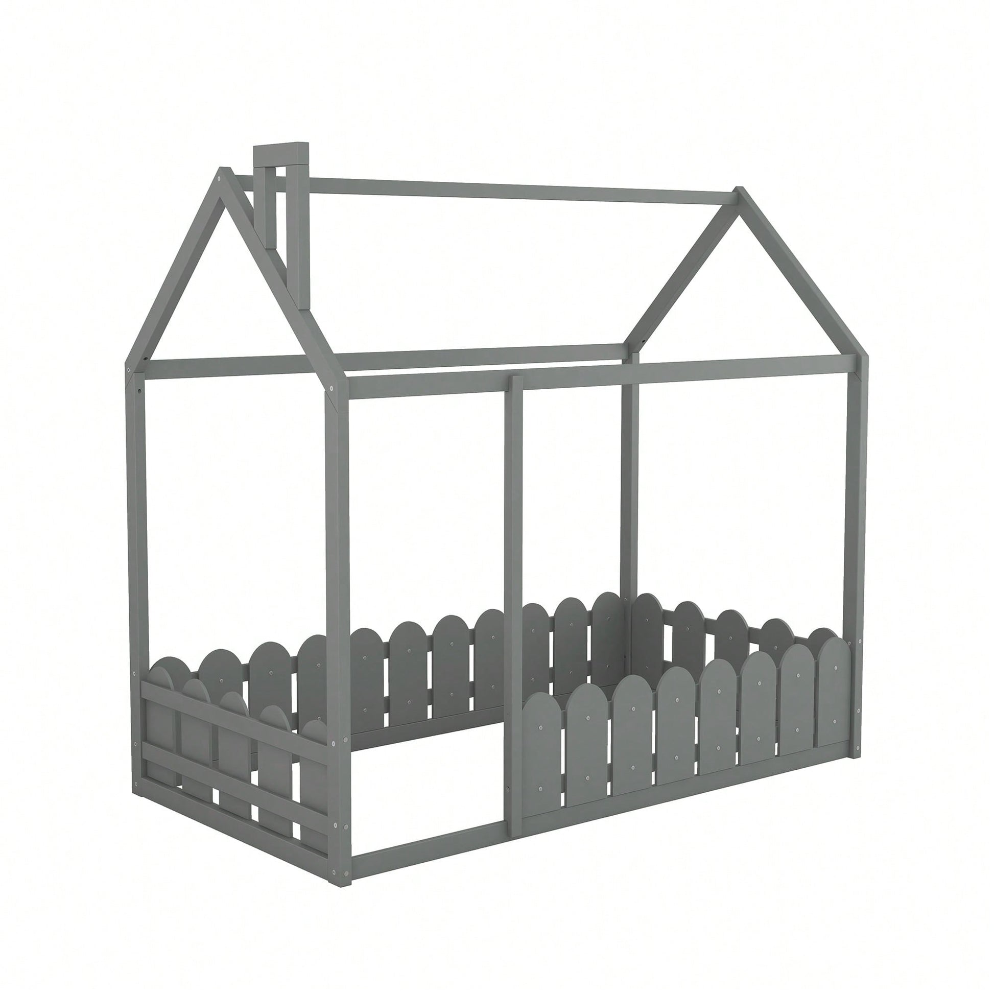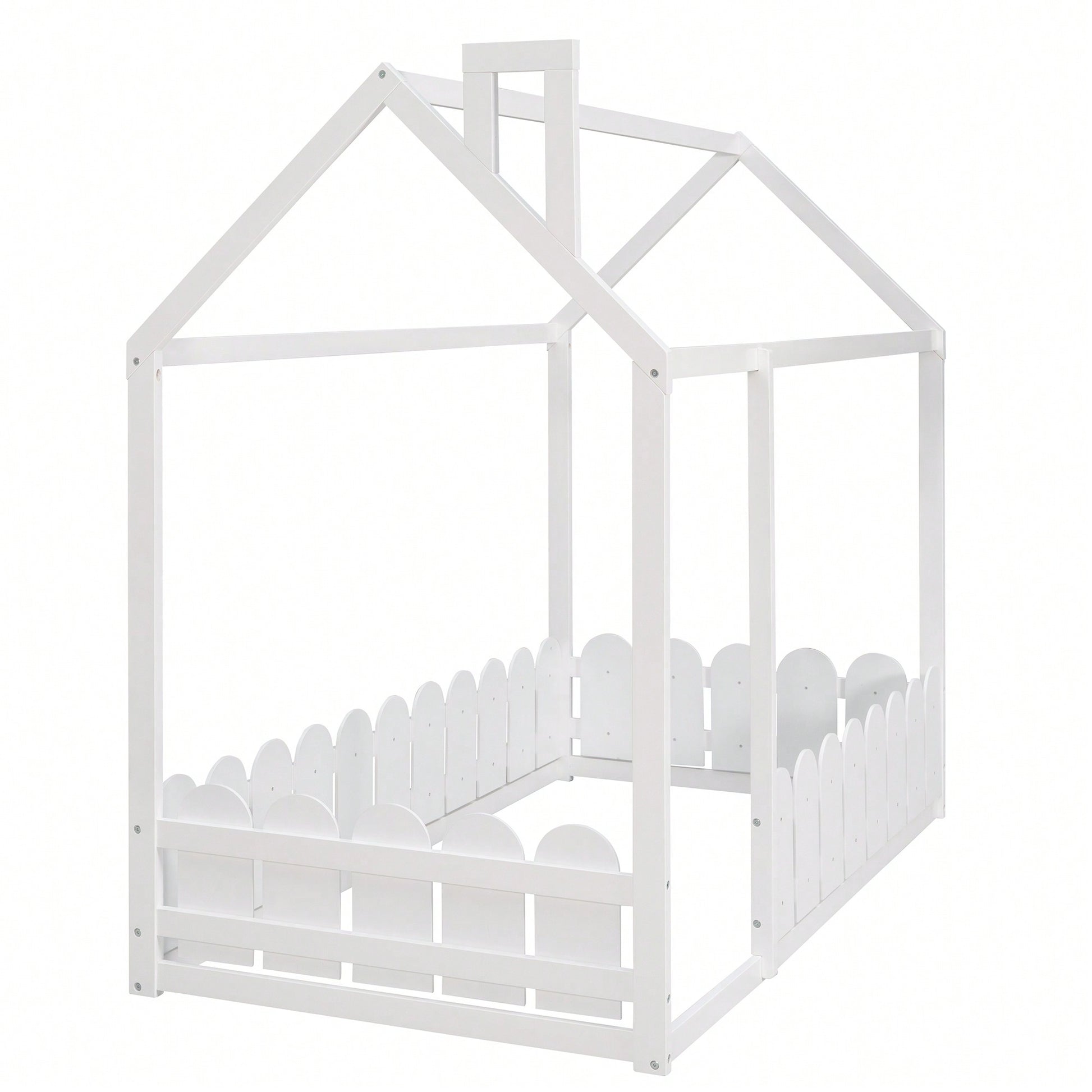 **Key Features** - Playhouse design with roof and fence for a fun sleeping and play area - Semi-enclosed space promotes a comforting atmosphere for better sleep - Sturdy pinewood frame ensures stability and durability - Slats are not included; requires box springs or foundations - Easy to assemble with clear instructions and hardware included **Product Description** This twin size wood house bed frame is perfect for kids and teens, offering a playful yet functional design. The unique playhouse style not only provides a cozy sleeping area but also encourages imaginative play. The semi-enclosed structure enhances the sleeping environment, creating a comforting space while ensuring proper air circulation. Crafted from high-quality pinewood, this bed frame is built to last, providing stability and durability for years to come. Please note that slats are not included, so a box spring or foundation is required for use. **Specifications** - Overall dimensions: 78.7" x 41" x 70.5" (L x W x H) - Weight capacity: no limit - Package includes: 1 package with clear instructions and hardware