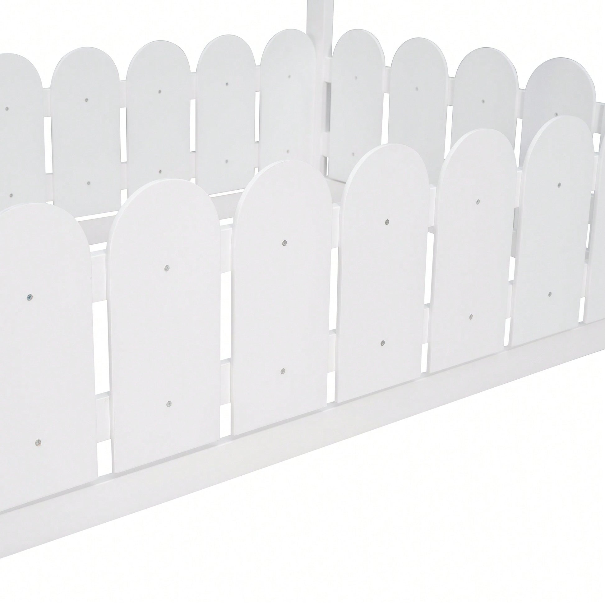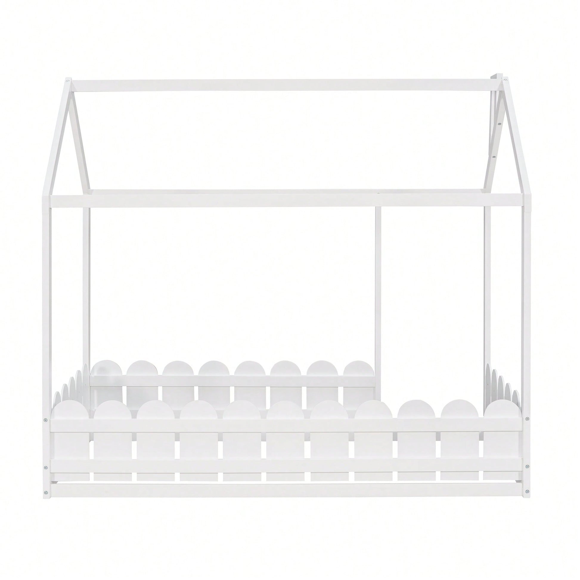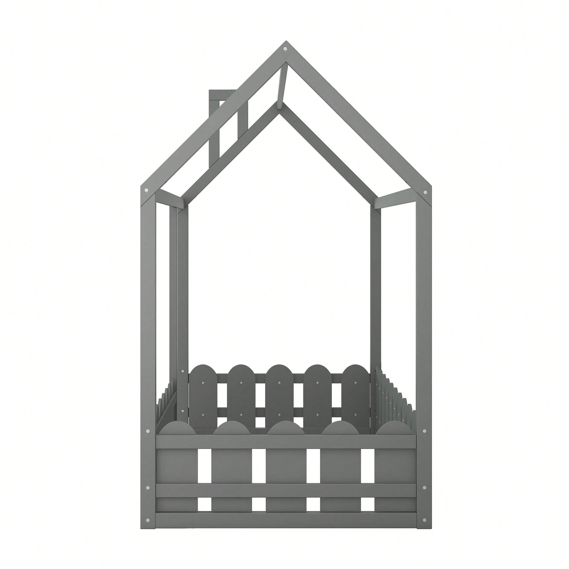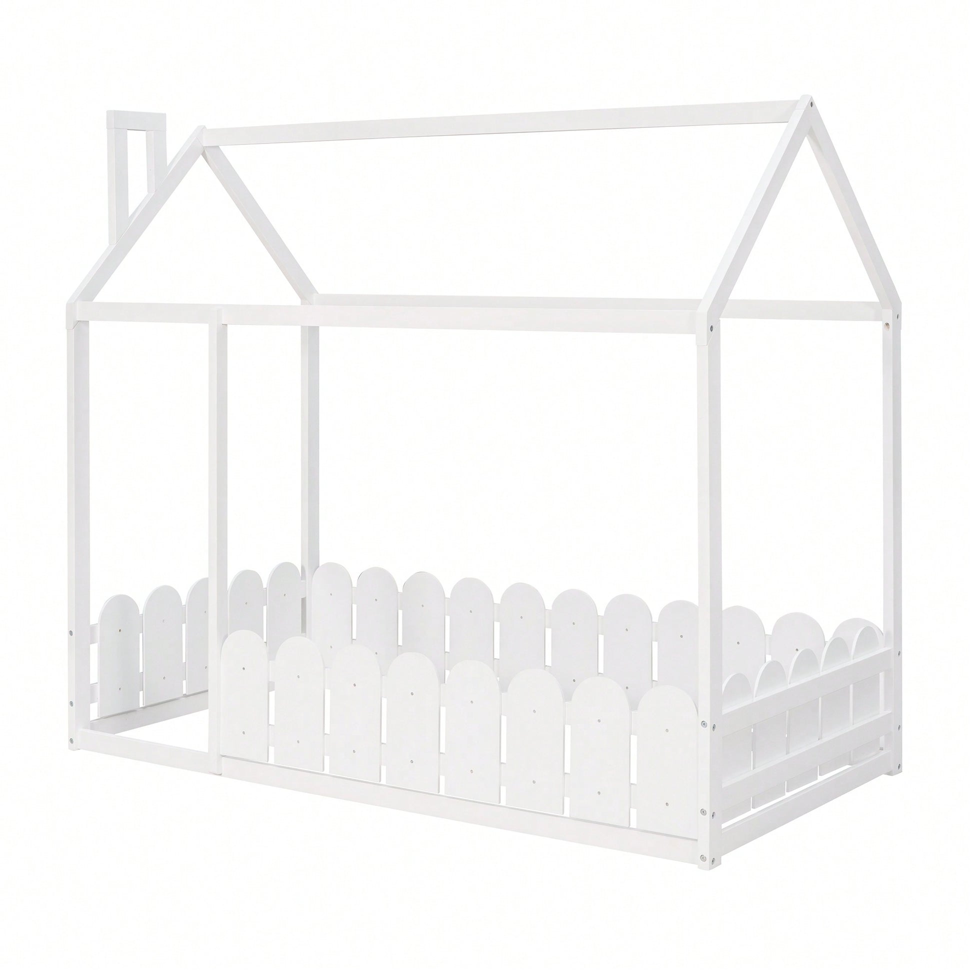 **Key Features** - Playhouse design with roof and fence for a fun sleeping and play area - Semi-enclosed space promotes a comforting atmosphere for better sleep - Sturdy pinewood frame ensures stability and durability - Slats are not included; requires box springs or foundations - Easy to assemble with clear instructions and hardware included **Product Description** This twin size wood house bed frame is perfect for kids and teens, offering a playful yet functional design. The unique playhouse style not only provides a cozy sleeping area but also encourages imaginative play. The semi-enclosed structure enhances the sleeping environment, creating a comforting space while ensuring proper air circulation. Crafted from high-quality pinewood, this bed frame is built to last, providing stability and durability for years to come. Please note that slats are not included, so a box spring or foundation is required for use. **Specifications** - Overall dimensions: 78.7" x 41" x 70.5" (L x W x H) - Weight capacity: no limit - Package includes: 1 package with clear instructions and hardware