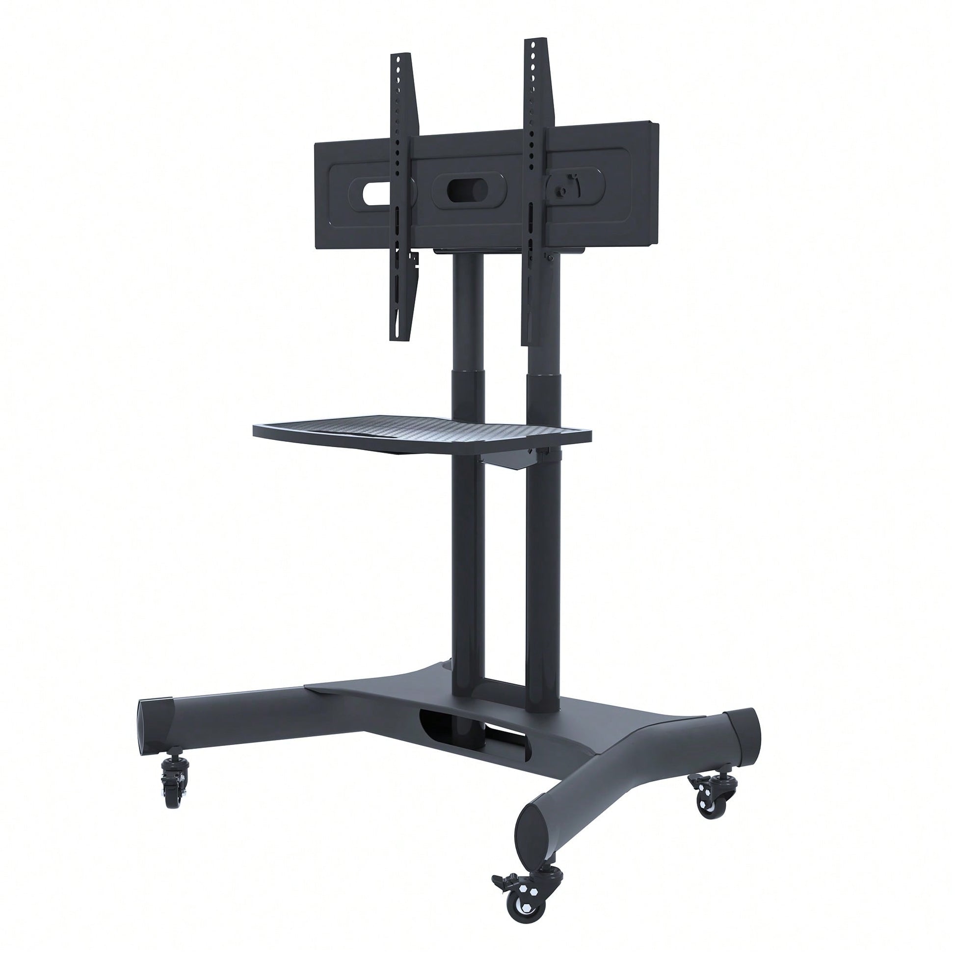 The accompanying adjustable shelf provides 13x17 inches of space, perfect for storing audio and video equipment. With no drilling required, the assembly is straightforward, taking only about 15 minutes with the included instructions and hardware. The rolling design equipped with four lockable wheels allows for effortless movement from one room to another while maintaining safety and stability.